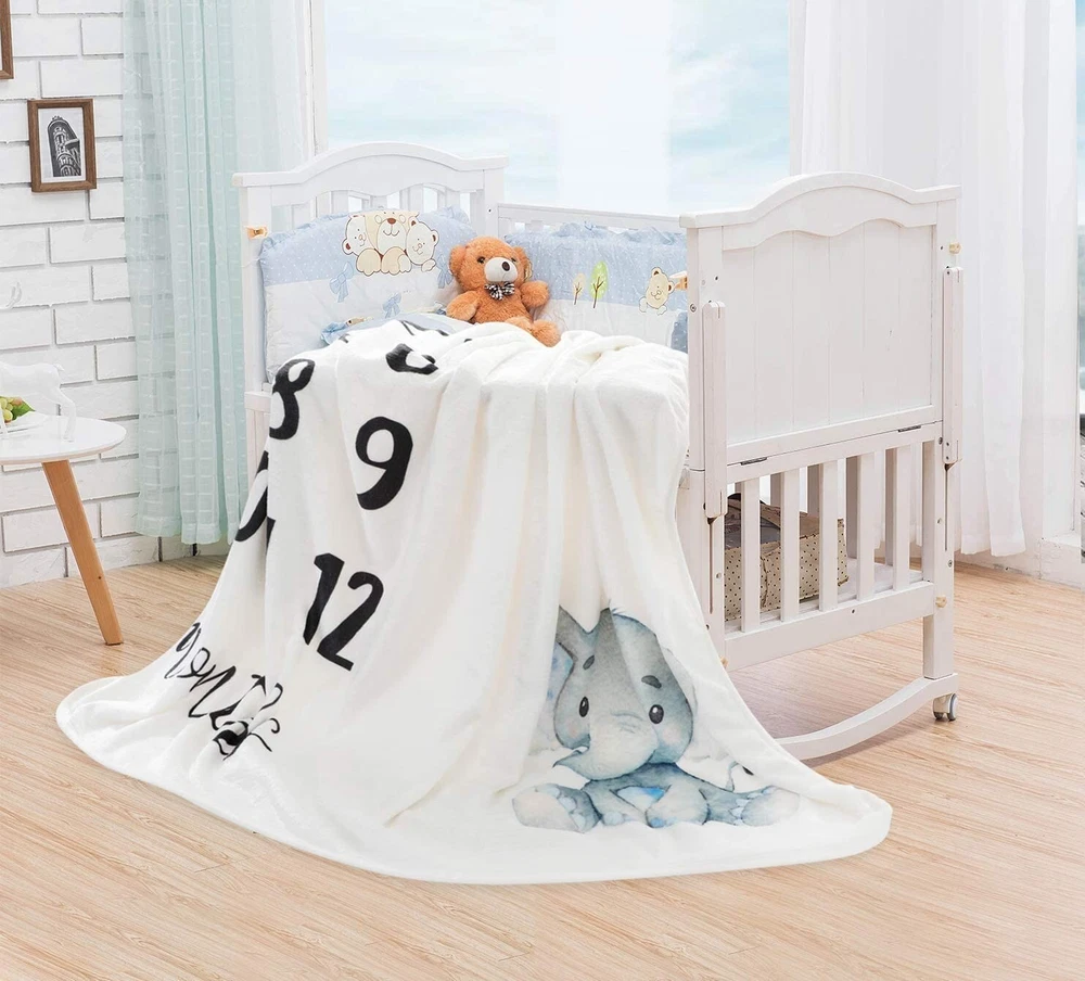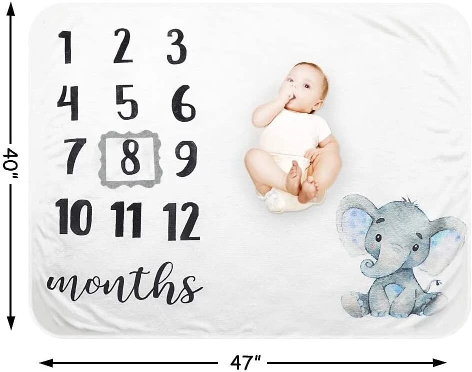 Material Fleece Color Blue Elephant Style Modern Blanket Form Swaddle About this item Flannel Fleece CAPTURE MEMORABLE MOMENTS - We know babies grow in a blink of an eye! That is why our Baby Milestone Blanket is the perfect way to capture your baby's first year. Document and track how chubby and tall they are getting! You will be able to cherish all of their monthly cuteness forever and share it with friends and family thru photos on social media. BEST BABY SHOWER GIFT - Ever feel like you are having a hard time trying to find a baby shower gift that will last. Especially since babies grow too fast! That is why our Month Blanket is the perfect gift! They will last a lifetime trough memory photos! PREMIUM PLUSH FLEECE, EASY TO CLEAN - Made of high-quality flannel, NO allergy, BPA free and safe for baby. Also, it’s big enough to be used as a swaddle, baby blanket, nursing cover/ stroller cover/ car seat, or baby daily playmat. Never get fade after washing (Support Machine wash, Handwash—recommended), Dry fast(Iron under low temperature). EASY TO USE - Simply spread your blanket, accommodate your baby and click away! It will be super easy to highlight your baby's monthly number with our super cute gray frame and better yet you can match with our beautiful baby bib and our original elephants design. You can add your own photo props, such as toys, festival decoration (Christmas ornaments), flowers and coordinated baby outfits. Then you own different pictures for 12 months. 100% CUSTOMER SERVICE - We put so much love in our product that we know there is no doubt you will love it too! If you ever have any issues, please don't hesitate to contact us. We are here to help! If you are not satisfied with your purchase, we will issue you a full refund, no questions asked! Thanks for your support!