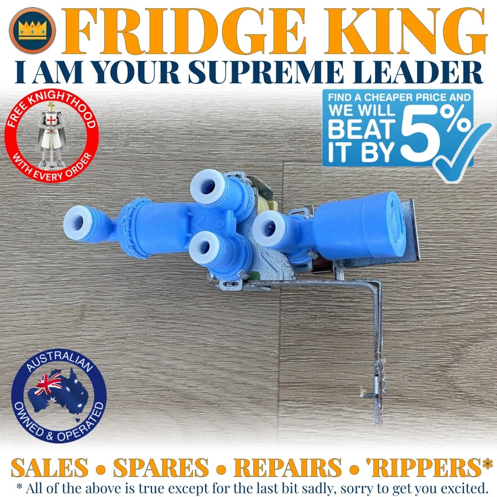 FRIDGE KING! FRIDGE KING! I am the Fridge King of Coolum Beach - bow down to your supreme leader and welcome to my eBay castle! For sale is this fully tested, near-new condition Westinghouse triple push fit water valve / solenoid, which fits side by side fridge models starting WSE6070 and WSE6970 - and is compatible with Electrolux, Simpson and Kelvinator - see full list below! Here's the details for this genuine OEM part: Description: The triple push ft water valve / solenoid at the back which connects the fridge to the water mains! Width: 6cm Depth: 8cm Height: 16cm Colour: Grey / blue / green / yellow Material: Plastic / metal MPN / Part numbers (confusingly / bloody annoyingly, some piles-inducing distributors use their own numbers which are also included): 1457080 (Westinghouse v1) 4055904272 (Westinghouse v2) 1682930 (Big Warehouse Spares - original) W0018534 (Wholesale Appliance Supplies) W0027903 (Wholesale Appliance Supplies - superseded) I implore you to message your sovereign for the following reasons: If you need express postage If you're not sure that this part fits your fridge If you need help fitting the part after purchase If you need a different part If you need help diagnosing your fridge's problem (I am happy to do a free video call) To consider marriage to your eldest daughter Anything else I will then use my god-appointed fridge superpowers to solve thy problem and send a wench to the dungeon to dispatch your item! As well as this item, I also stock parts for all Westinghouse side by side fridges with model numbers starting WSE6070, WSE6100, WSE6970 and WSE7000 - and can ship to any kingdom in the world! All the precious things are having a party in my parts palace here: https://www.ebay.com.au/usr/fridge_king If you're really bored, you can also follow me on "the instagram": https://www.instagram.com/the_fridge_king Or follow me on YouTube for tutorials: www.youtube.com/@TheFridgeKing I am a fair, merciful king and try my best to be the cheapest bulk seller on eBay. If you find the same part cheaper but desire to show your allegiance to the crown I will beat it by 5%. I can also give the following discounts: 10% when you buy 2 items 20% when you buy 3 items 30% when you buy 4+ items ALL HAIL THE THE FAIR MERCIFUL FRIDGE KING OF COOLUM BEACH - THERE CAN BE ONLY ONE! *** PLEASE PLEASE PLEASE do not buy a used part if you need it in brand new condition - I am a fridge king not a fridge wizard! *** All the pre-owned parts I sell are in used condition. Each is cleaned before despatch and I recommend dishwashing upon delivery. If you require brand new condition, there's a really simple way to do this - it's called "paying full price and buying brand new". These items are often a fraction of the new price and as eBay states: "The item may have some signs of cosmetic wear, but it is fully operational and functions as intended." In many cases, the item in the picture is an incredibly hard to find used part that has been discontinued by the manufacturer. As a result, it may not be the exact one sent out as I have thousands for sale and I cannot take pictures of every single one. And yes, some lunatics have seriously said that I need to do this. When someone who needs brand new condition buys a used part, they get upset by a small scuff, they lodge a return, I get sad and lose money paying for said return, they then leave me a bad review and in the ultimate sacrifice, a fridge fairy dies. And no one wants that on their conscience. MODEL LIST (deep breath): WSE6070PA WSE6070PA* WSE6070PA*1 WSE6070PA*2 WSE6070PA*3 WSE6070PA*4 WSE6070PA*5 WSE6070PA*6 WSE6070PA*7 WSE6070PA*8 WSE6070PA*9 WSE6070PB WSE6070PB* WSE6070PB*1 WSE6070PB*2 WSE6070PB*3 WSE6070PB*4 WSE6070PB*5 WSE6070PB*6 WSE6070PB*7 WSE6070PB*8 WSE6070PB*9 WSE6070PE WSE6070PF WSE6070SA WSE6070SA* WSE6070SA*1 WSE6070SA*2 WSE6070SA*3 WSE6070SA*4 WSE6070SA*5 WSE6070SA*6 WSE6070SA*7 WSE6070SA*8 WSE6070SA*9 WSE6070SB WSE6070SB* WSE6070SB*1 WSE6070SB*2 WSE6070SB*3 WSE6070SB*4 WSE6070SB*5 WSE6070SB*6 WSE6070SB*7 WSE6070SB*8 WSE6070SB*9 WSE6070SE WSE6070SF WSE6070WA WSE6070WA* WSE6070WA*1 WSE6070WA*2 WSE6070WA*3 WSE6070WA*4 WSE6070WA*5 WSE6070WA*6 WSE6070WA*7 WSE6070WA*8 WSE6070WA*9 WSE6070WB WSE6070WB* WSE6070WB*1 WSE6070WB*2 WSE6070WB*3 WSE6070WB*4 WSE6070WB*5 WSE6070WB*6 WSE6070WB*7 WSE6070WB*8 WSE6070WB*9 WSE6070WE WSE6070WF WSE6100PA WSE6100PA* WSE6100PA*1 WSE6100PA*2 WSE6100PA*3 WSE6100PA*4 WSE6100PA*5 WSE6100PA*6 WSE6100PA*7 WSE6100PA*8 WSE6100PA*9 WSE6100PB WSE6100PB* WSE6100PB*1 WSE6100PB*2 WSE6100PB*3 WSE6100PB*4 WSE6100PB*5 WSE6100PB*6 WSE6100PB*7 WSE6100PB*8 WSE6100PB*9 WSE6100PE WSE6100PF WSE6100SA WSE6100SA* WSE6100SA*1 WSE6100SA*2 WSE6100SA*3 WSE6100SA*4 WSE6100SA*5 WSE6100SA*6 WSE6100SA*7 WSE6100SA*8 WSE6100SA*9 WSE6100SB WSE6100SB* WSE6100SB*1 WSE6100SB*2 WSE6100SB*3 WSE6100SB*4 WSE6100SB*5 WSE6100SB*6 WSE6100SB*7 WSE6100SB*8 WSE6100SB*9 WSE6100SE WSE6100SF WSE6100WA WSE6100WA* WSE6100WA*1 WSE6100WA*2 WSE6100WA*3 WSE6100WA*4 WSE6100WA*5 WSE6100WA*6 WSE6100WA*7 WSE6100WA*8 WSE6100WA*9 WSE6100WB WSE6100WB* WSE6100WB*1 WSE6100WB*2 WSE6100WB*3 WSE6100WB*4 WSE6100WB*5 WSE6100WB*6 WSE6100WB*7 WSE6100WB*8 WSE6100WB*9 WSE6100WE WSE6100WF WSE6970PA WSE6970PA* WSE6970PA*1 WSE6970PA*2 WSE6970PA*3 WSE6970PA*4 WSE6970PA*5 WSE6970PA*6 WSE6970PA*7 WSE6970PA*8 WSE6970PA*9 WSE6970PB WSE6970PB* WSE6970PB*1 WSE6970PB*2 WSE6970PB*3 WSE6970PB*4 WSE6970PB*5 WSE6970PB*6 WSE6970PB*7 WSE6970PB*8 WSE6970PB*9 WSE6970PE WSE6970PF WSE6970SA WSE6970SA* WSE6970SA*1 WSE6970SA*2 WSE6970SA*3 WSE6970SA*4 WSE6970SA*5 WSE6970SA*6 WSE6970SA*7 WSE6970SA*8 WSE6970SA*9 WSE6970SB WSE6970SB* WSE6970SB*1 WSE6970SB*2 WSE6970SB*3 WSE6970SB*4 WSE6970SB*5 WSE6970SB*6 WSE6970SB*7 WSE6970SB*8 WSE6970SB*9 WSE6970SE WSE6970SF WSE6970WA WSE6970WA* WSE6970WA*1 WSE6970WA*2 WSE6970WA*3 WSE6970WA*4 WSE6970WA*5 WSE6970WA*6 WSE6970WA*7 WSE6970WA*8 WSE6970WA*9 WSE6970WB WSE6970WB* WSE6970WB*1 WSE6970WB*2 WSE6970WB*3 WSE6970WB*4 WSE6970WB*5 WSE6970WB*6 WSE6970WB*7 WSE6970WB*