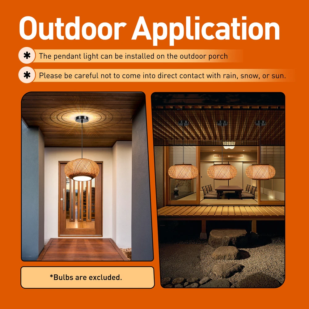 Product description: ★This is a healthy and natural artistic bamboo art lighting that we carefully create. It is easy to install, convenient and suitable for many places. ★Hand-woven bamboo, fresh materials, combined with exquisite weaving skills, perfectly reflect the toughness and natural texture of bamboo. ★Chinese style bamboo lamp, its ancient charm is natural and elegant, and the spiritual purity brought by natural bamboo lamp makes the corridor simple and pure without losing the elegance. ★With creative methods, rattan lamps and lanterns are simple and natural, but also full of modern flavor and fashionable charm. Feel the gifts of nature and experience a comfortable life. ★Suitable for corridors, living rooms, shopping malls, hotels, etc. Features: Category: Pendant Styl 40/60cm Rustic Bamboo Wicker Lampshade Rattan Pendant Light Hanging Lamp Fixture Product Description: ★This Is a Healthy and Natural Artistic Bamboo Art Lighting That We Carefully Create. It Is Easy to Install, Convenient and Suitable for Many Places. ★Hand-woven Bamboo, Fresh Materials, Combined with Exquisite Weaving Skills, Perfectly Reflect the Toughness and Natural Texture of Bamboo. ★Chinese Style Bamboo Lamp, Its Ancient Charm Is Natural and Elegant, and the Spiritual Purity Brought by Natural Bamboo Lamp Makes the Corridor Simple and Pure Without Losing the Elegance. ★with Creative Methods, Rattan Lamps and Lanterns Are Simple and Natural, but Also Full of Modern Flavor and Fashionable Charm. Feel the Gifts of Nature and Experience a Comfortable Life. ★Suitable for Corridors, Living Rooms, Shopping Malls, Hotels, Etc. Features: Category: Pendant Style: Country/Chalet Light Direction: Downlight Special Shape: Cage Type Lamp Base: E26 / E27 Whether to Include Bulbs: Not Including Bulbs Bulb Type: Led/Incandescent/Fluorescent Chain/Cord Adjustable or Not: Chain/Cord Adjustable (1m) Lamp Width: 16"(40cm), 23.5"(60cm) Number of Lights: 1 Light Power per Bulb: 40w The Package Includes: 1x Pendant Bamboo Lamp ( Not Including Bulb ) Payment Delivery details Terms of sales About us Contact us Payment We accept ebay payment 。 Fees such as import duties, taxes are not included in the item price or shipping costs. These charges are the buyer's responsibility. Delivery details Shipping: 2-9 working days to: USA Terms of sales We maintain high standards of excellence and strive for hundred percent customer satisfaction. Feedback is very important to us. We hope that you contact us immediately before you give neutral or negative feedback, so that we can address your concerns. It is impossible to address issues if we do not know about them! About us Your satis faction is our ultimate goal. We work hard to earn your trust and future business. Our certified technicians have tested each item before shipping. The unit comes with 1 year limited warranty on all manufacturing defects. a) If you receive a defective item, you may return it or ask for a discount. Please contact us within 14 days after you receive the package. b) What you returned must be intact and in its original packaging as re? u. Customer is responsible for shipping costs of the returned item. c) We will cover the cost of shipping back t with the shipping rate indicated in the registration page. We will send you a new unit or refund the full payment you paid. Thank you. Contact us Business Hour Business Hour: Monday To Friday: 8:30 AM to 5:00 PM (Beijing China time) Due to time zones, our reply to your questions may not be immediately. But within above working time, we will reply your email within 24 hours. If it's non-workdays, please kindly be patient and wait till Monday. Please contact us with ebay message. Please feel free to contact us if you have any questions. Monday To Friday: 8:30 AM to 5:00 PM (Beijing China time) Due to time zones, our reply to your questions may not be immediately. But within above working time, we will reply your email within 24 hours. If it's non-workdays, please kindly be patient and wait till Monday. Please contact us with ebay message. Please feel free to contact us if you have any questions. Item location CA /NJ /Austell Shipping Notice Cann't ship to Puerto Rico, Alaska/Hawaii Brand Unbranded Type as description Color as description Material Bamboo Room Bedroom, Dining Room, Kitchen, Living Room Number of Settings Ceiling Fixtures Light Color Ceiling Fixtures Power Source Ceiling Fixtures MPN Does not apply Installation Area Indoor Department Adult Control Style Ceiling Fixtures Sensor Type Ceiling Fixtures Cord Color Ceiling Fixtures Manufacturer Ceiling Fixtures Theme Ceiling Fixtures Style Modern LED String/Strip Type WS2812 Features Ceiling Fixtures Shade Shape Ceiling Fixtures Finish Ceiling Fixtures Lighting Technology Ceiling Fixtures Light direction downlight Special shape cage type Lamp base E26 / E27 Whether to include bulbs not including bulbs Bulb Type LED/Incandescent/Fluorescent Chain/cord adjustable or not chain/cord adjustable (1m) Lamp width 16"(40CM), 23.5"(60CM) Power per bulb 40W Energy Star A EC Range A - G