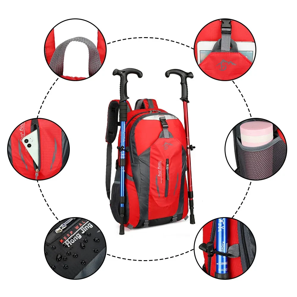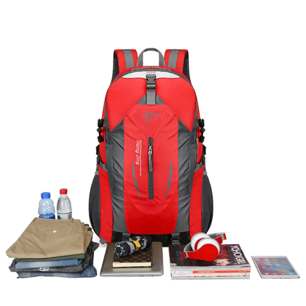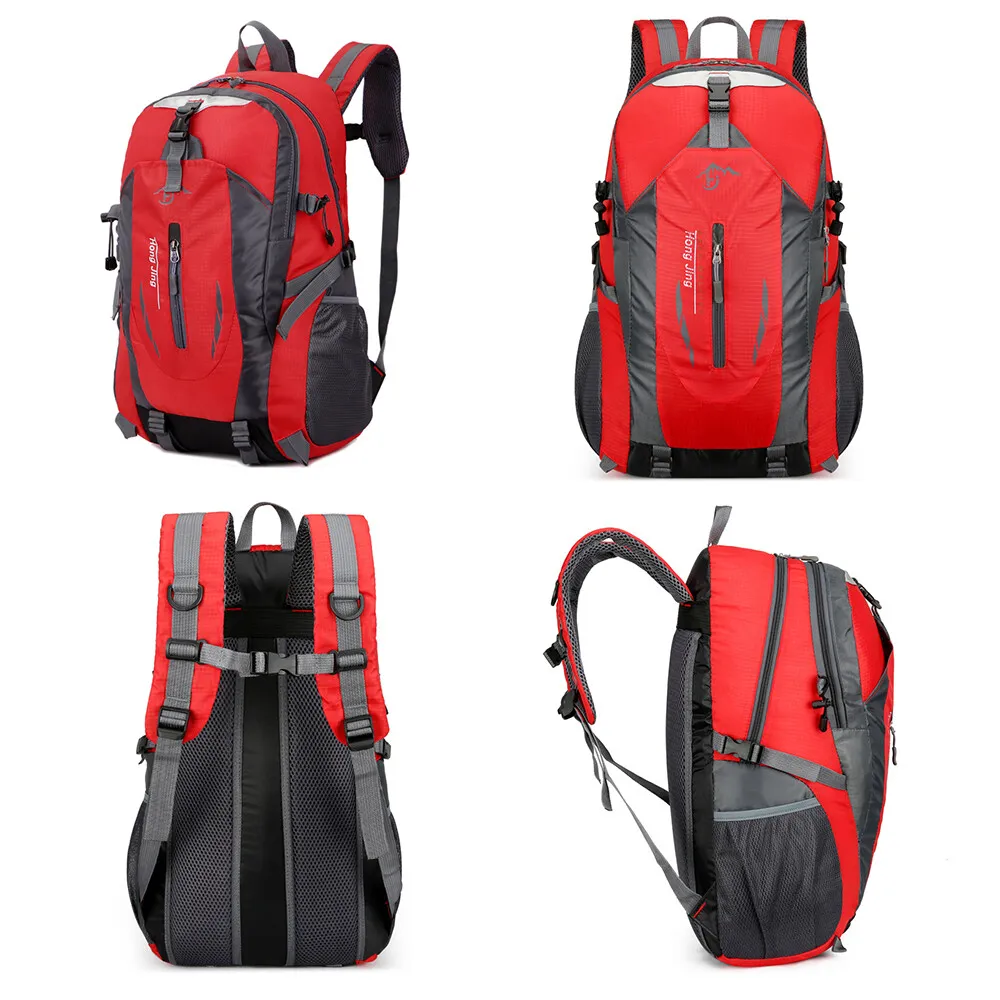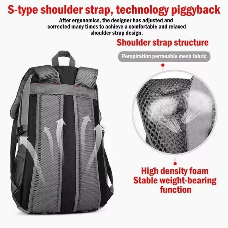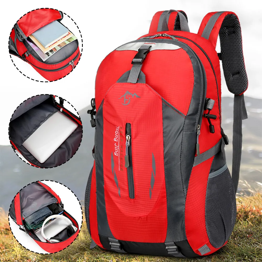 40L Men Women Travel Backpack Rucksack Camping Laptop Hiking School Book Bag USA πŸŽ’ Comfortable Daypack: This climbing backpack is specially designed for traveling enthusiasts, ergonomic padded shoulder straps and back support, gives you more comfortable feeling. Breathable mesh shoulder straps with plentiful sponge padding help relieve the stress from your shoulder. Widened and thickened shoulder straps and high elastic breathable back support for best ventilation and easing burden.And this pack doesn't have an internal or external frame. πŸŽ’ LARGE CAPACITY & MULTI COMPARTMENTS: Spacious main compartment and numerous pouches with large capacity.Special main pocket closing drawstring design, tight closure to prevent the items falling from the backpack.With one Interior Pouch for water bladder.Shoes separated storing pouch, preventing the items inside backpack to be dirty, convenient and practical.Two side pockets to carry more water bottles, And it meets size requirements for most airlines, enough room for 3 or 4 days trips. πŸŽ’ ADJUSTABLE STRAPS: For tying up your pack or hanging sleeping bag, mat, hammock, tripod, and other gears, convenient for the hiking, climbing, camping enthusiasts.Reflective stripes making it easier to identify at night, making it safe to travel.