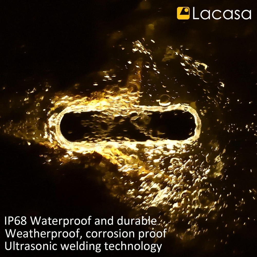 Solar Powered Deck Lights Pathway Walkway Solar Step Stair Dock Lights, Dusk to Dawn, 4 Pack Solar Lights for Outdoor Garden They Are High Efficiency Compared with the other solar deck lights in market, we used the largest solar panel and high capacity built-in 700mAh battery, to achieve it can light up to 16 hours. They Are Super Bright and Safety 360°glows support solar deck lights with strong output, its' a good outdoor garden landscape pathway light, you won't miss any steps and can see longer distance in dark night. They Are Necessary Lamps for Your Home These solar step lights are suitable for all kinds of environment around your home, own them will improve your garden yard more pleasing, shining and fashionable. They Are Durable and Easy to Install The solar dock lights made with high level quality sturdy PC material, resistance to pressure up to 10 tons, easily be installed in outdoor flat surface places with included waterproof adhesive tape. They Are Widely Application to Light Each Ground Solar powered deck light is ideal for outdoor deck, step, garden, patio, pathway, driveway, walkway, yard, pool, stairs, boat paths etc. Specification: - Solar Panel: 5.5V 0.88W - LED: 30pcs LED - IP Grade: IP68 waterproof - Battery: 700mAh 3.7V - Certificate: FCC UKCA CE RoHS Package Included: 4 x Solar Deck Lights 4 x Waterproof Adhesive Tape Kindly Tips: 1.Please make sure the solar deck lights charge at least 4-6 hours under sunshine before using. It’s best to install the solar step lights on the south where under sufficient sunlight. 2.In winter, the sunlight will be weaker than summer, also it's normal the solar walkway driveway pathway lights work time will be shorter. 【Large Solar Panel and Long Lighting Time】 The solar deck lights with super powerful and big solar charging panel guarantee for quick charge. And built-in 700mAh large capacity battery let 4-6 hours full charge by strong sunlight can light on up to 16 hours. 【Warm White and Work from Dusk to Dawn】 Outdoor solar deck lights use ultra bright warm white 2700K LEDs, 40LM and 360° glows provide even and shining light, it's a good option to install around your home as the landscape pathway lighting. Automatic turn ON when darkness falls and turn OFF when dawn breaks, really dusk to dawn long lighting time. No switch, simple and safe. 【IP68 Waterproof and Durable】 The completely sealed solar step lights with highest IP68 waterproof grade can withstand any types of terrible weather like a rainstorm, blizzard or daily heat in many years. And made with high level quality sturdy corrosion resistant housing PC material load weight up to 2 tons, the driveway walkway pathway stair deck dock light is strong enough for car weight and people stand on. 【Easy Installation and Widely Application】 No wiring and screws, no need to drill and break floor, come with strong waterproof adhesive pads suitable for most areas installation. The solar powered deck lights widely suitable for outdoor deck, step, garden, patio, pathway, driveway, walkway, yard, pool, stairs, boat paths etc. Own them will improve your garden yard more pleasing, shining and fashionable. 【Kindly Notes】 For first time using, make sure the solar dock lights charge at least 4-6 hours under directly sunlight. The solar deck lights will light up ONLY in dark, with a built-in light sensor AUTO switch. We provide 365 days warranty and 24H customer service to our solar pathway lights, just feel free to contact us if have any questions.