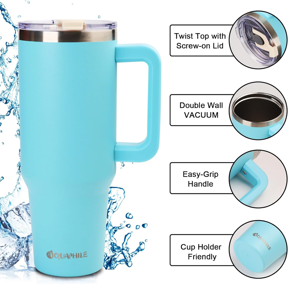 Store New Arrivals Add to Favorite View Feedback Contact 40Oz Insulated Tumbler with Handle, Stainless Steel Travel Mug with Lid and Straw, Double Wall Vacuum Leak Proof Portable Coffee Tumbler, Thermal Cup for Car, Camping, Outdoor(Light Blue) Description Item model number 40-Tumbler Style Casual Number of Items 1 Assembly required No Pattern Solid Country of Origin China Theme Holiday Unit Count 1.0 Count Batteries required No Product Dimensions 4.52"W x 11.4"H Material Stainless Steel Capacity 2.5 Pounds Age Range (Description) Adult Finish Type Powder Coated Specific Uses For Product Hot Drinks Included Components Lid, Straws Reusability Reusable Item Weight 1.52 pounds Material Feature Insulated Occasion Mother's Day, Father s Day (D) Special Feature Spill Proof, Leak Pro, Insulated Material Type Free BPA Free Color Light Blue-40oz Shape Tumblers Recommended Uses For Product Travel Finish types Powder Coated Product Care Instructions Hand Wash Only Size 40oz Gorgeous Temperature Retention: The AQUAPHILE 40oz tumbler with handle features double-wall vacuum technology and an airtight seal for maximum temperature retention, keeping your drink at your preferred temperature. This large 40oz water bottle with straw compare a wide, thick and comfort-grip handle, makes it easy to take with you wherever you go. Secure Lid to Prevent Spills: The tumbler cups were designed with a flip-top, screw-on closure lid to prevent unwanted spills, giving you a spill proof coffee tumbler. The flip top lid allows you to sip super hot coffee safely. We also provide two stainless steel straws and a straw brush in the package. Corners are rounded so there are no hard angles where dirt can hide. Easy to use, easy to clean. 100% BPA Free & Sweat Free Design: Our large insulated mugs are made from 18/8 kitchen and food-grade stainless steel, making them durable, corrosion-resistant, and rust-free. Double-layer insulation and high quality non-slip powder coating won't sweat on the outside, allowing you to conveniently keep a good grip on the tumbler while drinking on the go. Drink to Go & Cup Holder Friendly: Our insulated tumblers are designed for drinks on the go. This cute tumbler is straw friendly so you can stay hydrated even on the busiest days. The tapered shape base is sized to fit most cars, vehicles, bikes, gym cup holders and with a large 40 oz capacity. It is more convenient to use the handle, so you can easily hold it and take a sip with one hand. Presented in a Premium Gift Box: The stylish colors and high-tactile finish of this insulated coffee tumbler make it perfect for personal or corporate gifting. Delivered in an elegant gift packaging, the high quality coffee mug which can be used as Christmas, Thanksgiving, Father's Day, Mother's Day gift. Product Description AQUAPHILE 20/30/35/40 oz Vacuum Insulated Tumblers Add to Cart Customer Reviews 4.4 out of 5 stars 203 4.4 out of 5 stars 203 4.3 out of 5 stars 98 4.4 out of 5 stars 200 4.4 out of 5 stars 200 4.4 out of 5 stars 980 4.4 out of 5 stars 980 Price — — — $14.24 $ 14 . 24 — — — Stainless Steel 18/8 ✔ ✔ ✔ ✔ ✔ ✔ ✔ Capacity 20 oz 30/40 oz 35 oz 20/30 oz 35 oz 30 oz 40 oz Lid Type Screw on Screw on Screw on Screw on Screw on Press in Press in Leak Proof & No Sweat YES YES YES YES YES YES YES Fit In Most Cup Holder YES YES YES YES YES YES YES BPA Free ✔ ✔ ✔ ✔ ✔ ✔ ✔ ABOUT US We offer the best prices around on high quality products. Our E-store includes media such as books, movies, music and games while offering electronics, toys, sporting apparel, clothing, tools, general home, garden items and more. SHIPPING We are always working hard to ensure your package arrives as soon as possible. Please understand that some factors like weather, high postal traffic, and the performance of shipping companies are outside of our control. We offer free shipping to the lower 48 states and ship within 2 business days of payment, usually sooner. We do not accept P.O. Boxes. Please provide a physical address. For shipping outside of the continental USA, we only use eBay's Global Shipping Program.The item is shipped to KY and then sent to the rest of the world. International customers are responsible for all duties and taxes. Continue to check out in order to calculate costs for shipping the item to your country. Messages regarding eBay's Global Shipping Program MUST be directed at eBay EXCLUSIVELY. RETURNS We offer a 30-Day Return Policy on items which you are not completely satisfied with. You have the option for a full-refund or an exchange of the item. No returns are available on items shipped outside of the USA. PAYMENT We accept PayPal. CONTACT US This page content is yet to come Please ad us to your favorite seller and visit again later Thank You CUSTOMER SATISFACTION We try our very best to make sure every customer is completely satisfied. If there's a problem, message us! We're happy to help. WE ACCEPT Copyright © 2021 AutoDS. | All Rights Reserved