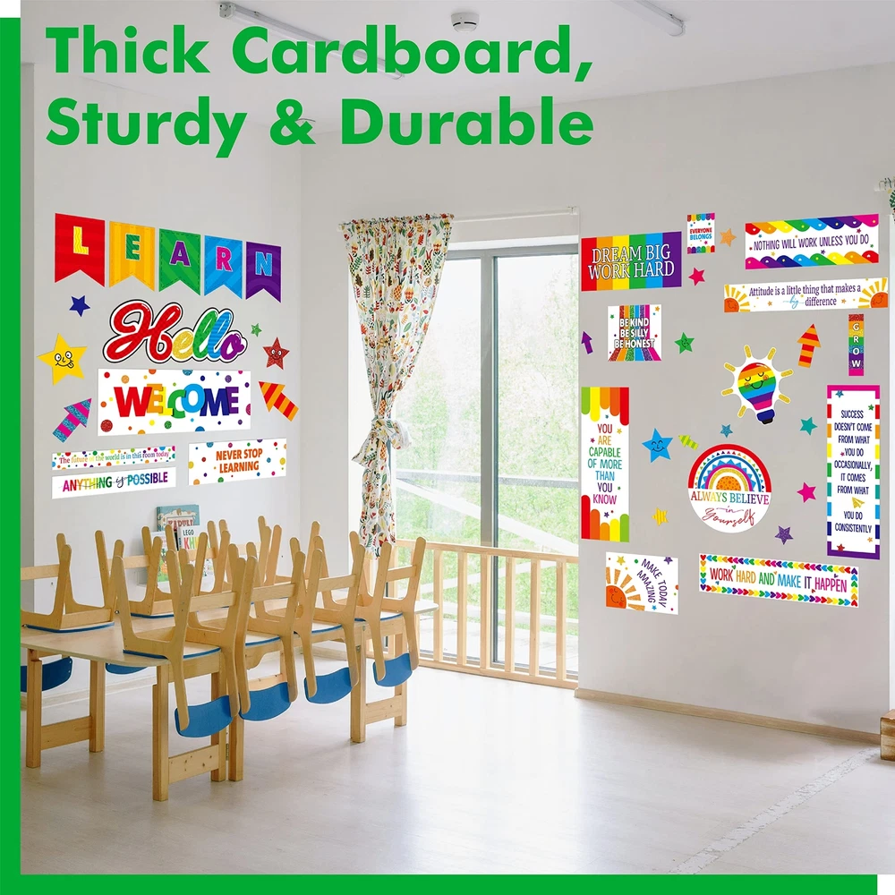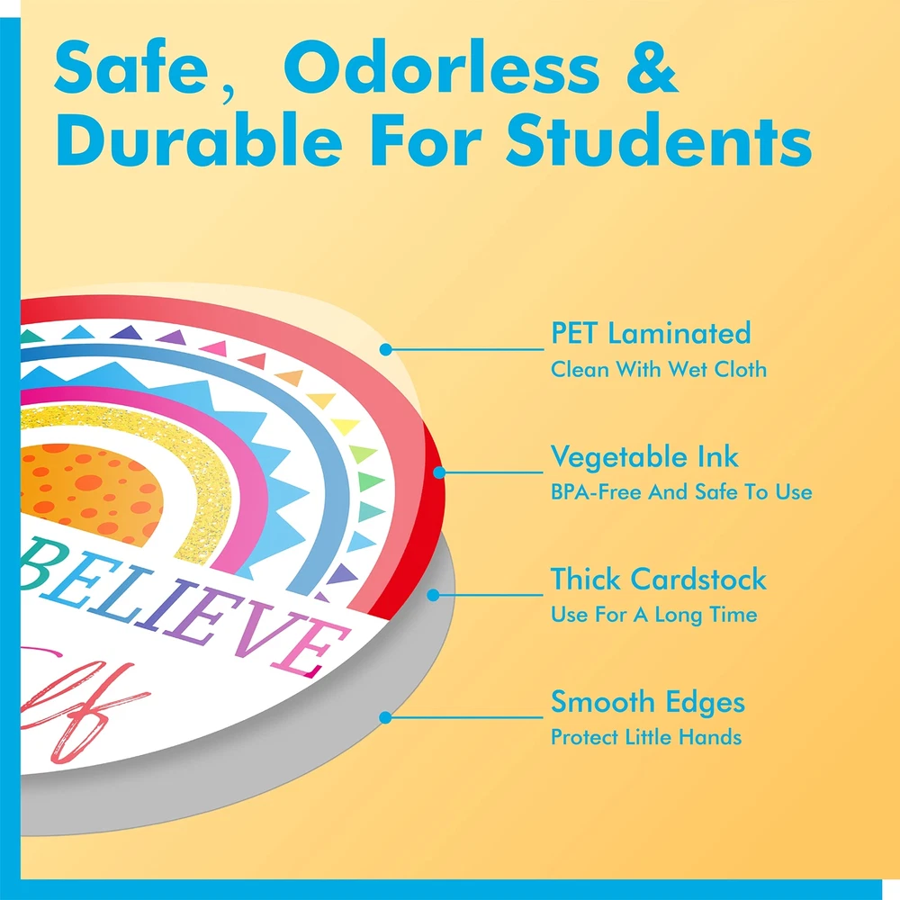 Value Pack: The decoration set comes with 40pcs color style cards, sufficient quantity is quite enough to meet your decorative needs. Motivational words with colorful and eye-catching patterns provide more energy and bring the classroom and bulletin board a new look. Premium Material: The posters are made of sturdy cardstock, durable and handy. Printed with premium vegetable ink, no odd smell and safe to use. Coated with PET film, waterproof, reusable and easy to clean with damp cloth. Unique Design: The bulletin board decor set is in colorful style design, bright-colored and eye-catching. The whole set features inspirational positive sayings in delicate artistic fonts plus various colorful elements, not only visually stunning but also engaging and motivational. Great Decoration: The different quotes are great daily reminders for students to make them try their best and keep a positive attitude. It is a great way for the school year to encourage kids’ responsibility, help them live up to their potential, remind them to think differently about learning. Wide Application: It can be applied as bulletin board decorations, walls, doors, windows, desks. Suitable for different activities, school parties, back to school parties, baby shower, any kids' room and other events. A delicate poster set is ideal for any decoration activity, bringing you more enjoyment.