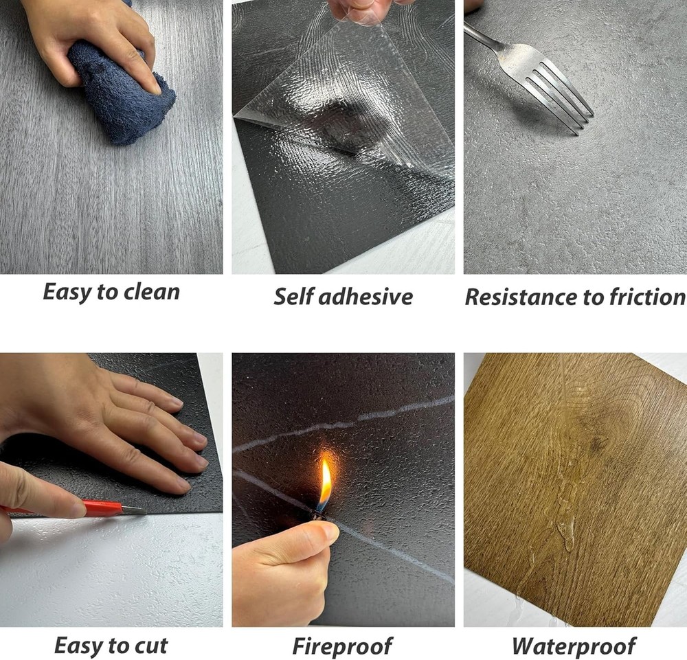 Introducing our luxury vinyl peel and stick floor tiles, the perfect solution for transforming any space with style and convenience. This pack contains 40 sheets of 12x12-inch tiles, Cover 40 Sq. Ftallowing you to cover a substantial area while enjoying the benefits of a hassle-free installation process. Crafted with the highest quality pvc material, our floor tiles are not only visually stunning but also highly durable. Each tile is designed to replicate the elegant look of Marble planks, bringing a touch of natural beauty to your floors without the maintenance and cost associated with traditional hardwood. Installing our self adhesive floor tiles couldn't be easier. Thanks to their self-adhesive backing, there's no need for messy glues or additional tools. Simply peel off the backing paper and firmly press the tile onto a clean, dry surface. The adhesive is strong enough to ensure a secure bond, yet flexible enough to allow for repositioning during installation. This makes it an ideal option for DIY enthusiasts who want a quick and hassle-free home improvement project. In addition to their practical benefits, our luxury vinyl floor tiles offer an incredible aesthetic appeal. The marple design adds warmth and character to any room, creating a timeless and inviting atmosphere. Whether you're looking to update your living room, bedroom, or office space, these tiles effortlessly elevate the ambiance of any interior. ♥Durable and High-quality: Peel and stick floor tile are crafted with the high quality vinyl, these vinyl flooring are not only visually stunning but also highly durable. They are designed to replicate the elegant look of marble tiles, bringing a touch of natural beauty to your floors without the maintenance and cost associated with traditional hardwood。 ♥Waterproof and fireproof : These vinyl floor tiles are 100% waterproof and fireproof, Boasting a rigid surface with a robust core, The wear, scratch, and abrasion-resistant properties ensure longevity,They are also easy to clean, allowing you to maintain a fresh and hygienic environment. ♥Easy DIY: These peel and stick floor tiles are designed for hassle-free installation. Simply remove the backing paper and firmly press the tile onto a clean, dry surface. No messy glues or additional tools required. ♥Dimensions: Each tile measures 12 inches x 12 inches and 1.2mm thick. 20 tiles cover 20 square feet,40 tiles cover 40 square feet. ♥Versatile use: These self-adhesive vinyl flooring planks are perfect for bathroom,kitchens, dining rooms, bedrooms ,these luxury vinyl floor tiles add warmth and character to any room.▲If you want to stick the floor tiles on the wall, ceiling or countertops, please use additionnal adhesive to braced.