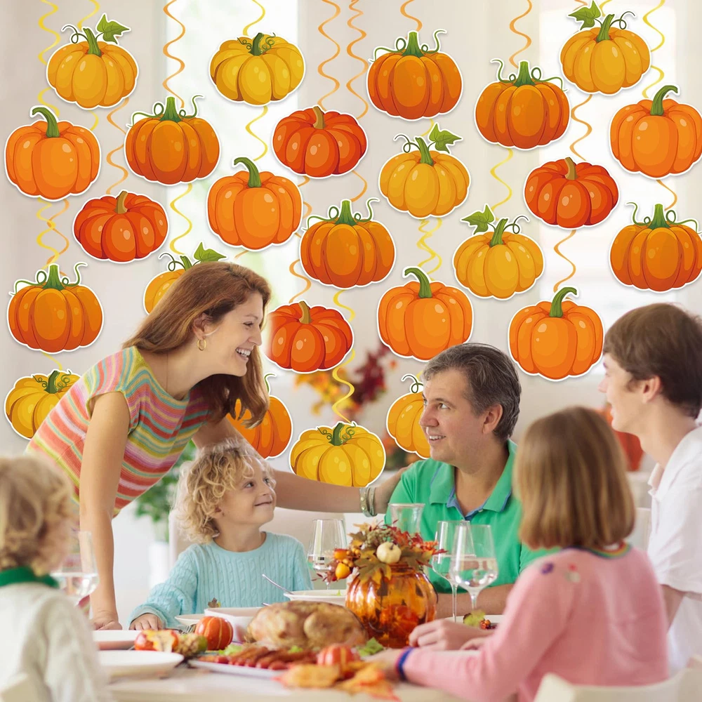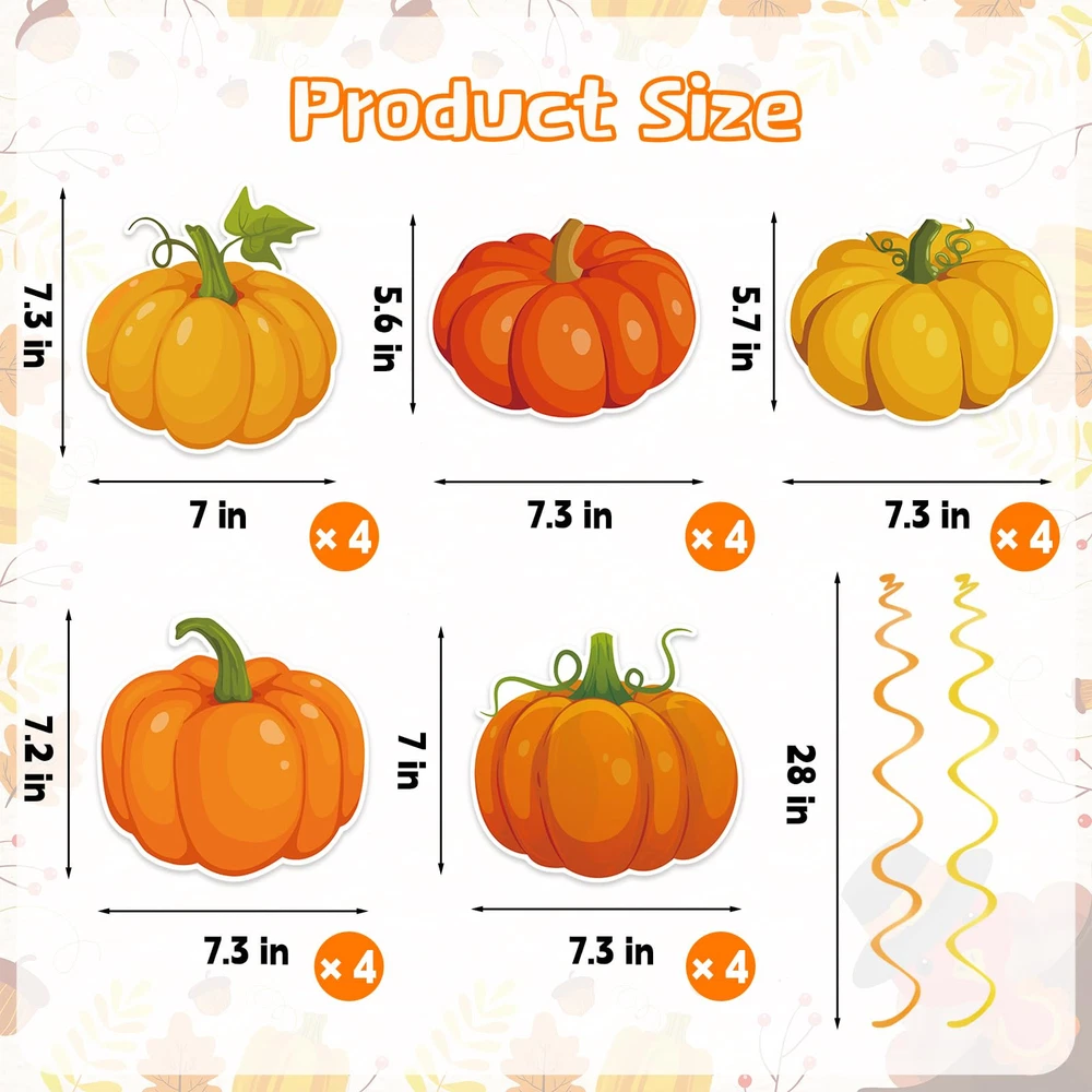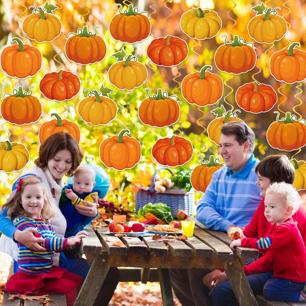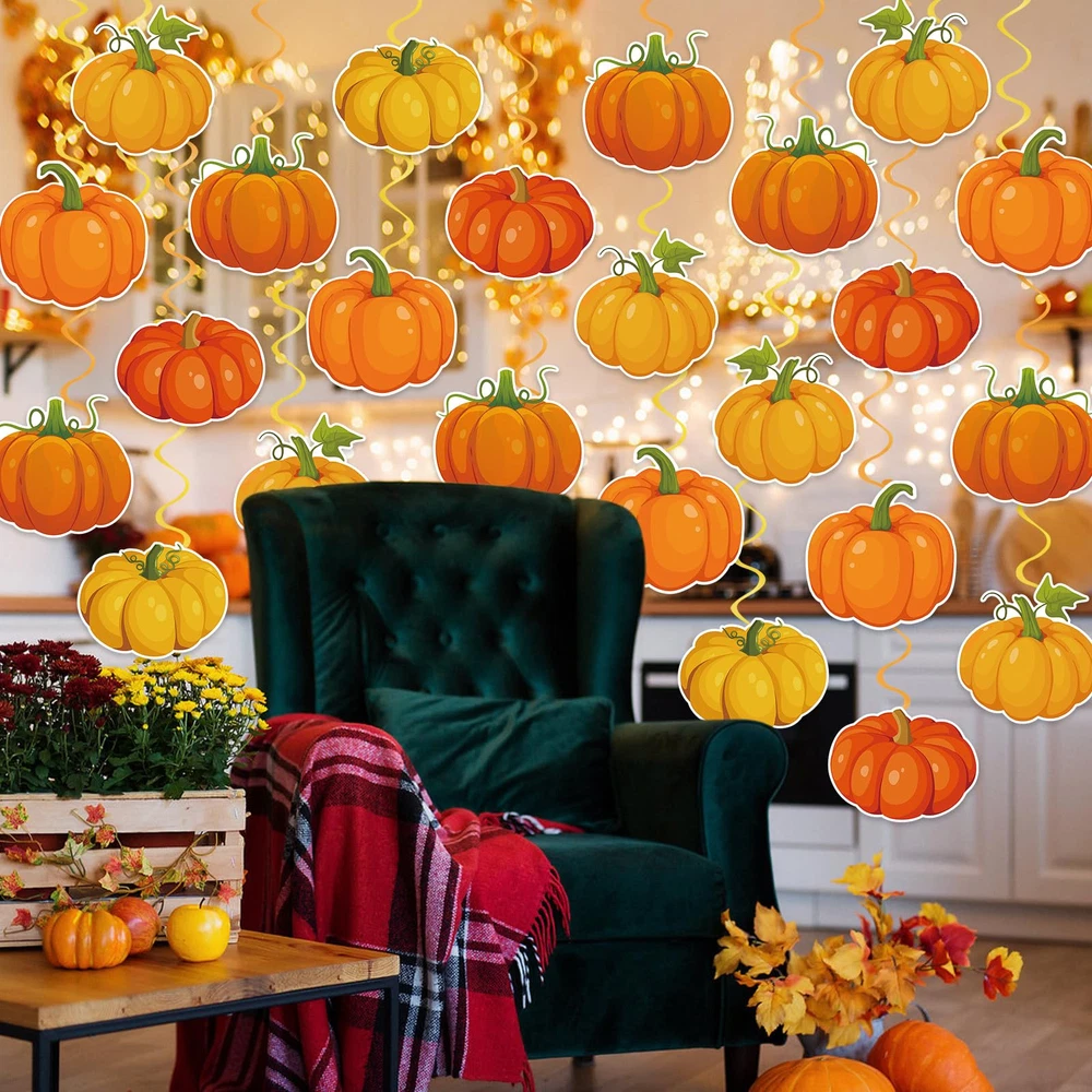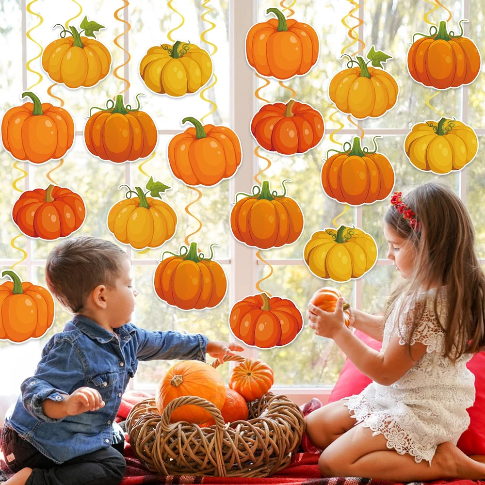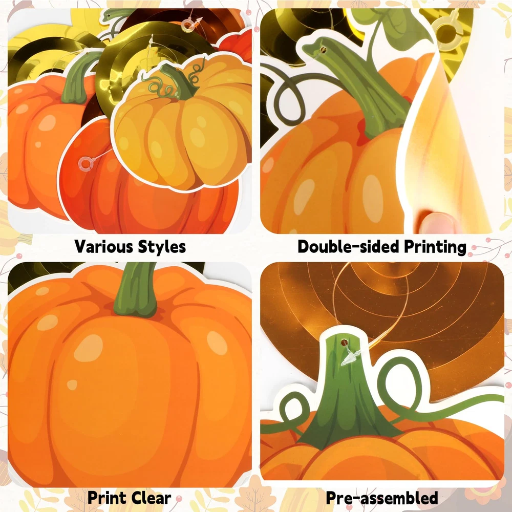 Are you looking for a fun, creative way to dress up your fall themed party, our fall Thanksgiving ceiling hanging decorations are just what you need. Sparkling fall Thanksgiving swirls hanging decorations are the finishing touch to your fall Thanksgiving party decorations. Fall Ceiling Decorations Features Exquisite Pumpkin Swirls Decorations The fall party hanging swirls decorations are designed with a classic fall pumpkin pattern that are very eye catching, and with this pumpkin hanging swirl decoration kit you can create a joyful harvest atmosphere that will get everyone in the party mood. Easy to Decorate Our pumpkin spiral hanging decorations require no DIY, you can hang the pumpkin cutouts hanging swirls ceiling decorations on the ceiling, wall, window, porch or anywhere you want. Wide Applications Thanksgiving classroom ceiling spiral decor can be used for fall themed party, fall harvest party, pumpkin themed party, Thanksgiving party, fall birthday party, fall classroom decorations, baby shower and more to add a cozy touch to your fall events. Package Includes: 40 x Pumpkin ceiling hanging decorations Fall Hanging Ceiling Decoration: You will get 40 fall hanging decorations including 20 fall pumpkin hanging swirls and 20 single hanging swirls,enough to easily meet your fall decorating needs, and the fall swirls are also great photography props for wonderful photos with family and friends Pumpkin Theme Design: The pumpkin hanging swirls decorations are designed with classic fall patterns, featuring a variety of pumpkins with sparkling swirls for a beautiful shimmering effect, creating a cheerful harvest atmosphere for your fall themed party and impressing your guests Premium Material: These fall hanging swirl decorations made of quality cardboard and foil, printed on both sides, not easy to fade, not easy to break, and can be reused for multiple occasions. Beautifully patterned and eye-catching fall hanging foil streamers can bring you more fun Easy to Decorate: Our Thanksgiving hanging swirls decorations are pre-assembled, no DIY required. Fall ceiling hanging decorations can be hung directly from ceilings, windows, trees, fireplaces, walls, and anywhere else you want to decorate, perfect for indoor and outdoor use Fall Party Decorations:These pumpkin hanging swirls are the finishing touch to fall themed parties, fall harvest parties, fall classroom decorations, fall birthday parties, office Thanksgiving parties decorations, baby showers, family gatherings and more, and will get everyone in the holiday spirit