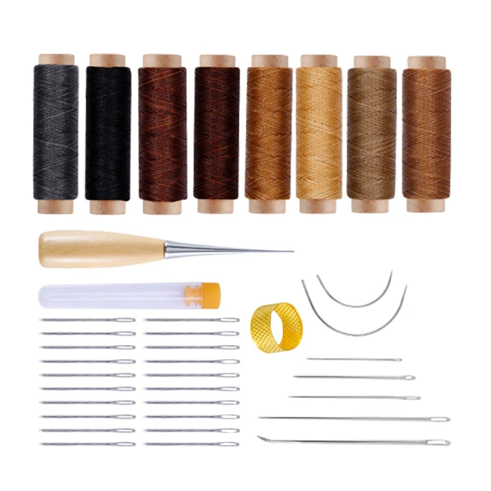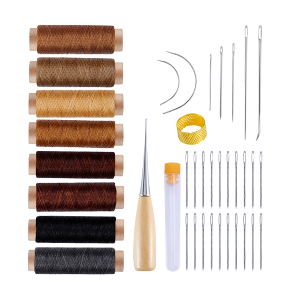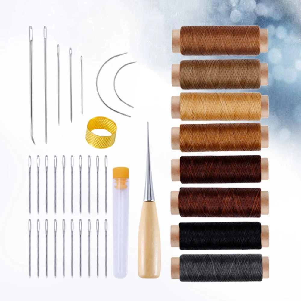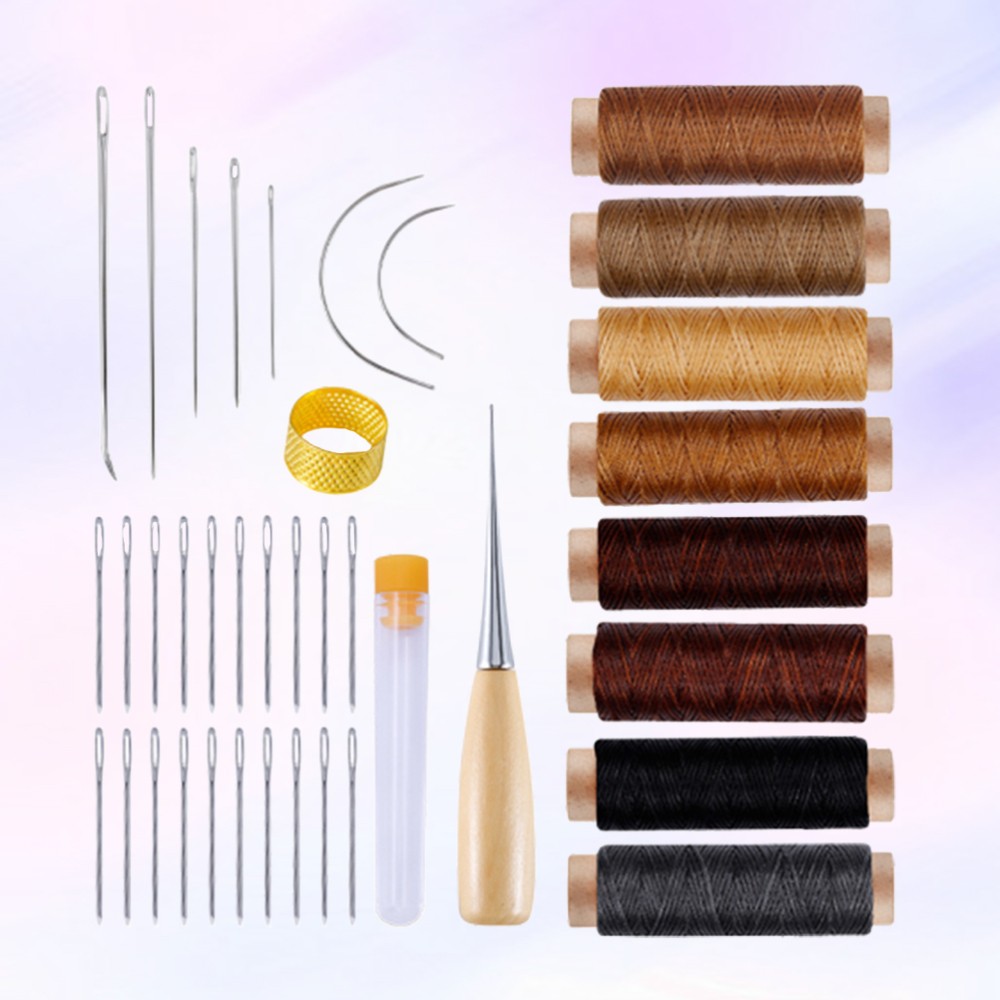 Leather Sewing Kit with Upholstery Repair Thread Stitching Needles and Awl Hand Tools