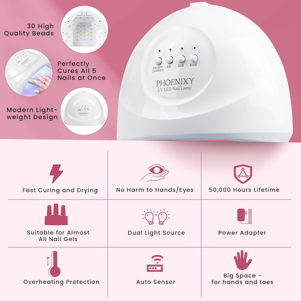 Store New Arrivals Add to Favorite View Feedback Contact Fast deliveries to the customer's home Quality customer service John Make the customers happy! Gel Nail Polish Kit with U V Light, 40 Pcs Pink Red Black Gel Nail Polish Set with 48W Nail Lamp Gel Nail Kit Gifts for Women Description 【What's in Gel Nail Polish Set】The Phoenixy gel nail polish kit with U V light includes 16*8ml nail gel polish, 4*8ml glossy matte glitter top and base coats, 48W U V nail light, and other basic manicure tools. The Gel Nail Polish Set with U V light has all nail tools you need to do a manicure without having to buy anything else extra. 【Safe and Healthy】The gel nail kit colors is made with a premium formula and all-natural materials, free from any toxic or harmful substances. It is smooth to use, has a minimal odor, and is responsible for the health of your nails and skin. it is good gel nail polish kit for beginings and starter. 【Quality: High Shine and Long-Lasting】 the gel manicure kit with uv light has the advantages of high gloss and high durability. Multiple tests have shown that, when applied correctly, gel polish can last for about 28 days while maintaining an excellent gloss without any issues like yellowing, cracking, or other problems. 【48W U V/LED Nail Lamp】The U V LED 48W nail lamp comes with 30 lamp beads, 3 curing modes: 5s/30s/60s, which can quickly cure all kinds of gel and save most of the time for nail art. Intelligent U V nail lamp: hand in, light on; hand out light off. 【Perfect Gift for Her】The gel nail kit can be paired with various outfits and is suitable for all occasions. The gel nail polish kit is the perfect gift for holidays or special occasions such as Valentine’s Day, Mother’s Day, Halloween, Thanksgiving, Christmas, birthdays, anniversaries, or New Year. Product Description Comparison of Similar Items Add to Cart Add to Cart Add to Cart Add to Cart Add to Cart Add to Cart Add to Cart Customer Reviews 4.3 out of 5 stars 638 4.3 out of 5 stars 638 4.3 out of 5 stars 638 4.3 out of 5 stars 638 4.3 out of 5 stars 638 4.0 out of 5 stars 107 4.0 out of 5 stars 107 Price $9.99 $ 9 . 99 $14.99 $ 14 . 99 $14.99 $ 14 . 99 $14.99 $ 14 . 99 $14.99 $ 14 . 99 $16.99 $ 16 . 99 $21.99 $ 21 . 99 Color Gel 16Pcs 16Pcs 16Pcs 16Pcs 16Pcs 27Pcs 36Pcs Nail Lamp 48W U V LED 48W U V LED 48W U V LED 48W U V LED 48W U V LED 48W U V LED 48W U V LED Nail Art Decorations 11Pcs 11Pcs 11Pcs 11Pcs 11Pcs 11Pcs 11Pcs Matte Top Coat ✔ ✔ ✔ ✔ ✔ ✔ ✔ Glitter Top Coat ✔ ✘ ✘ ✔ ✔ ✔ ✔ Perfect Gifts for Women ✔ ✔ ✔ ✔ ✔ ✔ ✔ Is it possible to use this U V nail lamp for curing gel nail polishes from all brands? Yes, it’s possible. Not only can it cure gel polishes from all brands, but it can also cure gels with various functional types. How do you remove the gel nail polish? 1.Buff and file nails, 2.Wrap with nail polish remover for 10 mins, remove and use cuticle pusher for residue. 3.Wash hands and apply cuticle oil for moisture and strength. *Nail drill can be used by experienced individuals for gentler removal. Is the U V nail light connected to power using USB? No, the manicure lamp is equipped with an adapter for easier and more convenient use. Color SET-49 Material plastic Country of Origin China Finish Type Glossy Package Dimensions 8.15 x 7.13 x 4.76 inches; 1.65 Pounds Included Components function(f) {var _np=(window.P._namespace("DetailPageProductOverviewTemplatesJava"));if(_np.guardFatal){_np.guardFatal(f)(_np);}else{f(_np);}}(function(P) { P.when('A').execute(function(A){ A.on('a:truncate:po-attribute-truncate-3:updated', function(data) { var isTruncated = !data.truncateInstance.getIfTextFits(); var seeMoreElement = document.getElementById('po-attribute-see-more-id-3'); if(seeMoreElement) { seeMoreElement.style.display = isTruncated ? '' : 'none'; } }) }); })); 16*8ml gel polish, 1*8ml base coat, 1*8ml top coat, 1*8ml matte top coat, 1*8ml glitter top coat, 1*48W nail lamp, 1*nail file, 1*nail buffer, 1*nail brush, 1*nail dotting pen, 1*cuticle pusher, 2*nail separators, 3*nail sticker, 2*nail french tip, 2*nail metal stickers, 4*nail glitter. See more ABOUT US We offer the best prices around on high quality products. Our E-store includes media such as books, movies, music and games while offering electronics, toys, sporting apparel, clothing, tools, general home, garden items and more. SHIPPING We are always working hard to ensure your package arrives as soon as possible. Please understand that some factors like weather, high postal traffic, and the performance of shipping companies are outside of our control. We offer free shipping to the lower 48 states and ship within 2 business days of payment, usually sooner. We do not accept P.O. Boxes. Please provide a physical address. For shipping outside of the continental USA, we only use eBay's Global Shipping Program. The item is shipped to KY and then sent to the rest of the world. International customers are responsible for all duties and taxes. Continue to 'check out' to calculate costs for shipping the item to your country. Messages regarding eBay's Global Shipping Program MUST be directed at eBay EXCLUSIVELY. RETURNS We offer a 30-Day Return Policy on items in which you are not completely satisfied with. You have the option of a full-refund or an exchange of the item. No returns are available on items shipped outside of the USA PAYMENT We accept PayPal. CONTACT US This page content is yet to come Please ad us to your favorite seller and visit again later Thank You CUSTOMER SATISFACTION We try our very best to make sure every customer is completely satisfied. If there's a problem, message us! We're happy to help. WE ACCEPT