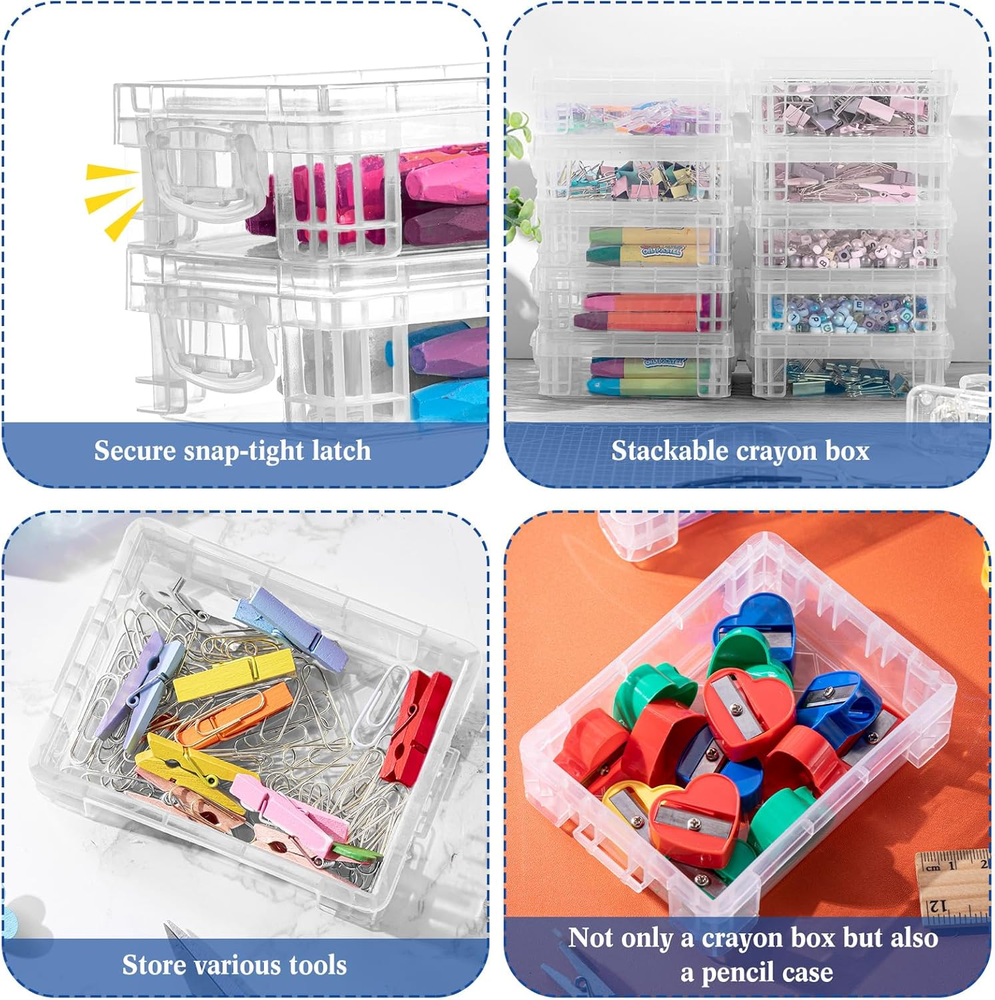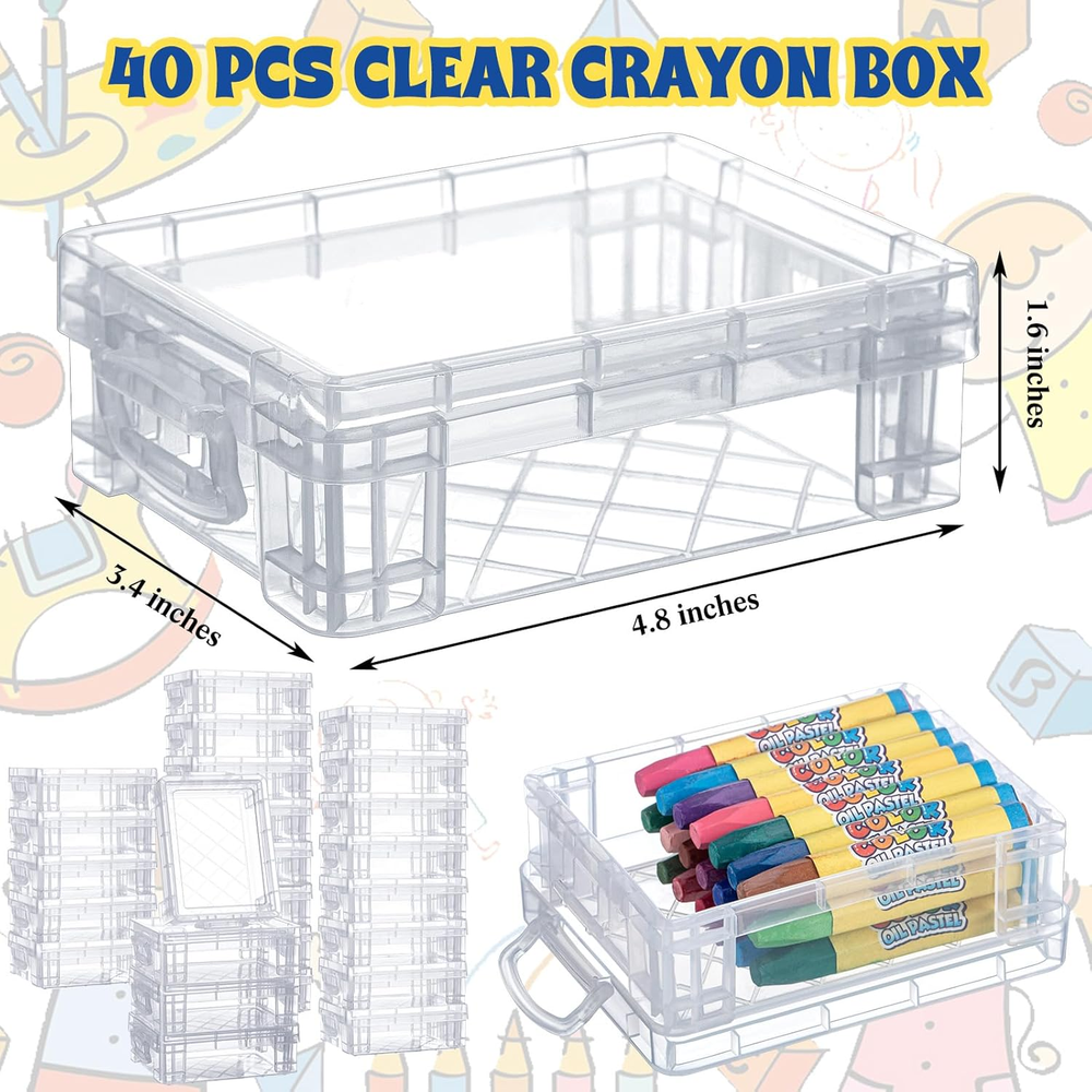 40-Piece Stackable Plastic Crayon Storage Boxes with Secure Snap Lids - Bulk Classroom Art Supply Organizer