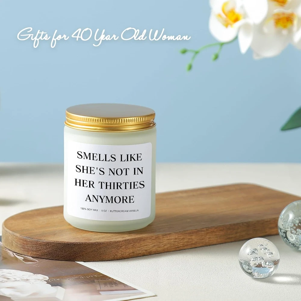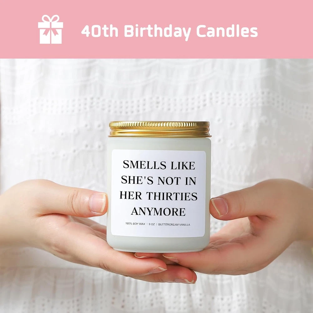 40 Year Old Birthday Gifts for Women ♥ Surprise her with this thoughtful and heartfelt candle when she is turning 40 years old. It is not just a 40th birthday gift, but a way to create a warm and happy birthday atmosphere. Unique 40th Birthday Gifts for Her ♥ Ideal 40th birthday gift choice for women, wife, daughter, sister, girlfriend, friends. It will make her feel loved all the time and know she is special for you. Natural Soy Wax ♥ This 9oz scented candle features high-quality soy wax infused with the sweet scent of vanilla, buttercream. Each candle is thoughtfully hand-poured, ensuring a long-lasting burn time for 45-55 hours. Experience Natural Aromatherapy ♥ Our 40th birthday candle perfect for reduce anxiety, promote tranquility, and enhance relaxation. Let the soothing fragrance of vanilla, buttercream create a peaceful and soothing atmosphere! Occasion of Use ♥ The aromatherapy candle make for a stunning addition to any room decor, providing a touch of elegance and comfortable. Ideal choice for placed in the bedroom, living room, yoga, meditation, or even during a relaxing bath. Product Description More From NURELL Candle Add to Cart Add to Cart Add to Cart Add to Cart Add to Cart Add to Cart Add to Cart Customer Reviews 5.0 out of 5 stars 4 5.0 out of 5 stars 2 5.0 out of 5 stars 2 5.0 out of 5 stars 2 5.0 out of 5 stars 1 4.7 out of 5 stars 4 5.0 out of 5 stars 4 Price $15.99 $ 15 . 99 $12.99 $ 12 . 99 $9.99 $ 9 . 99 $16.59 $ 16 . 59 $16.99 $ 16 . 99 $9.99 $ 9 . 99 $9.99 $ 9 . 99 Giftable ✔ ✔ ✔ ✔ ✔ ✔ ✔ Soy Wax ✔ ✔ ✔ ✔ ✔ ✔ ✔ Size 9oz 9oz 9oz 9oz 9oz 9oz 9oz Fragrance Vanilla, Cream Lavender Lavender Vanilla, Cream Vanilla, Cream Vanilla, Cream Vanilla, Cream Burning Time 45-55 Hours 45-55 Hours 45-55 Hours 45-55 Hours 45-55 Hours 45-55 Hours 45-55 Hours Occasion Birthday Anniversary Anniversary Birthday Birthday Birthday Birthday
