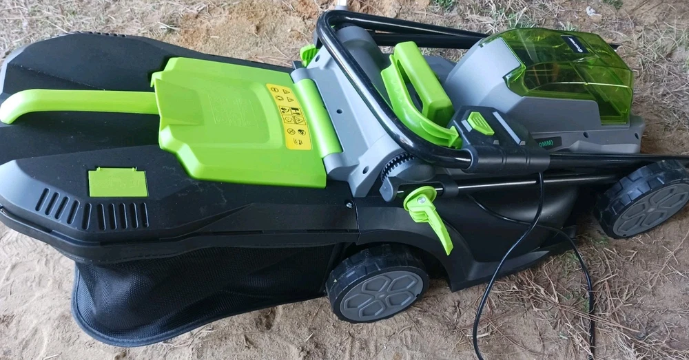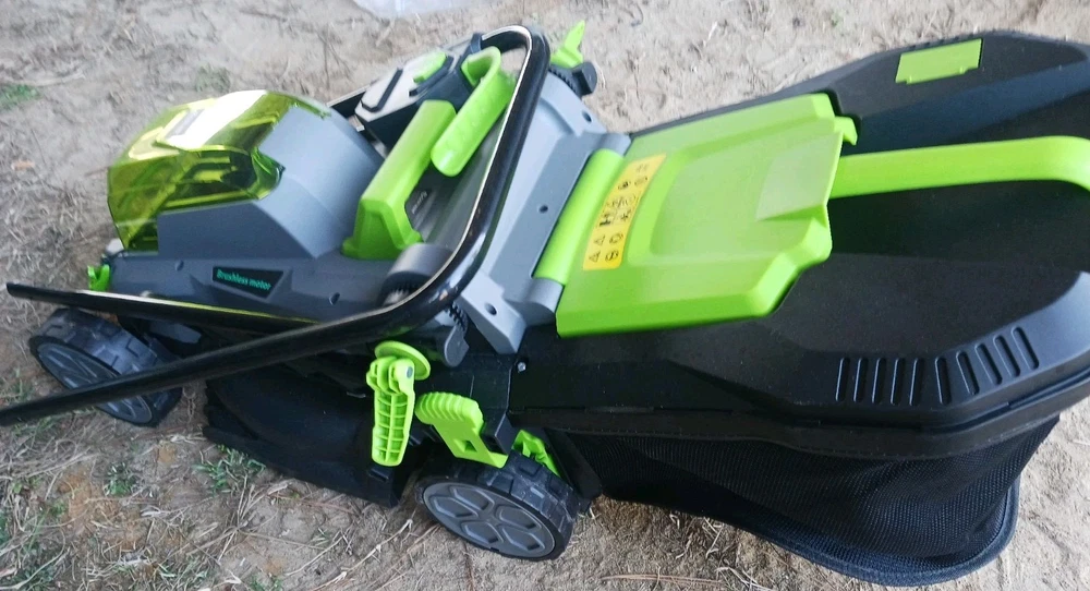 All pieces are there. Everything works. New no box. This 40V cordless push lawn mower is perfect for keeping your lawn looking neat and tidy. With a cutting width of 16 inches, it is ideal for medium to large sized lawns. This mower features a mulching option, allowing you to leave clippings on the lawn to add nutrients back into the soil. It also comes with a bagging option, so you can easily dispose of clippings if needed. In addition, this mower comes with two 4.0Ah batteries and a charger, ensuring you have enough power to get the job done. The battery power source eliminates the need for cords, allowing for more freedom of movement around the lawn. This walk-behind lawn mower is a great addition to any home and garden.