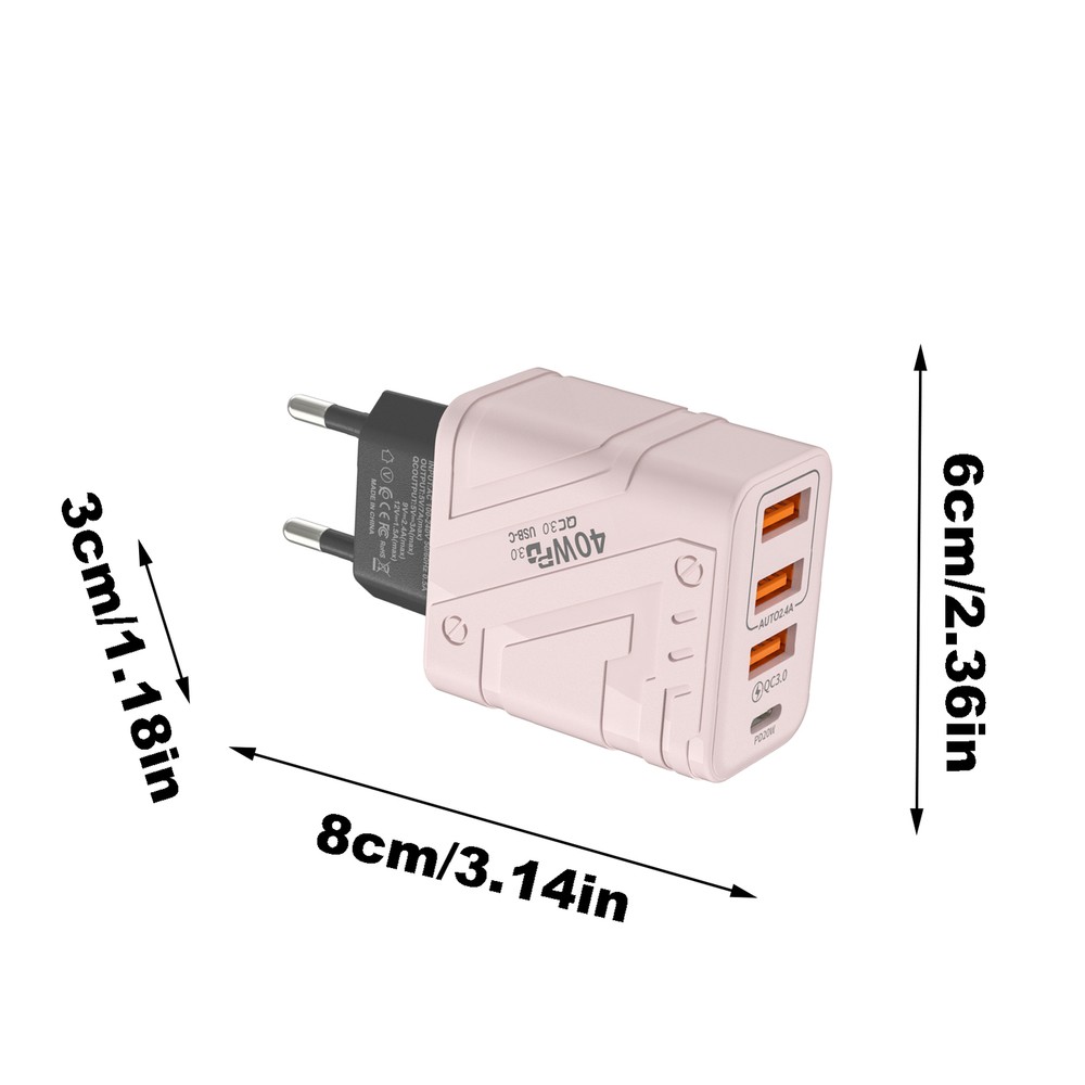 3-Port USB+Type C Wall Charger 40W USB Fast Quick Charge Power Adapter Plug Bullet Points: Quick Charge: Experience fast charging for smartphones, tablets, or other electronic devices that work with the PD protocol, providing up to 40W output with advanced PD technology. Convenient Charging Solution: Cater to all your charging needs with our 3USB+1PD multi-port charger. Fast and efficient, it can charge up to four mobile devices simultaneously, making it a perfect mobile phone charger with multiple ports. Wide Compatibility: Featuring a plug design that complies with British/US/European standards, our USB wall plug is an ideal option for frequent travelers. Its compact size makes it easy to pack, and multiple specifications ensure suitability for all your devices. Small and Lightweight: Our USB wall plug adapter is a travel-friendly design, perfect for families or teams on the move. Small and lightweight, easily pack it in your back or suitcase for an easy charging experience anytime, anywhere. Enhanced Security: A built-in smart chip ensures a safe charging process by providing multiple protection against overvoltage, overcurrent, short circuit, and overtemperature. Meet all your charging requirements with our USB Wall Plug Fast Charging. With its efficient charging capabilities and 3 USB + 1 PD multi-port charger, it's the perfect travel companion for your whole family or team. Its plug design and built-in smart chip make sure all your devices charge quickly and safely. Specifications: Product name: USB Wall Charger Block Product material: PC fireproof material Plug: triangular British standard/rounded European standard/flat US Standard Product size: about 8x6x3cm / 3.14x2.36x1.18inch Product features: intelligent digital display, 40W fast charging, intelligent chip to prevent overheating and short circuit Packing List: 1* Fast USB Charger Block Note: Due to different lighting and screen settings, the item color may be slightly different from the picture. Due to different manual measurements, please allow a 1-2cm difference in size. 1.You can make a Credit payment via Paypal.Paypal will let you use MasterCard,Visa to pay. 2.Payment should be completed within 5 days after auction closed, or unpaid dispute will be filed for an closing auction.An unpaid case will be filled after 4 days. ● We strive for 100% customer satisfaction ! ● Positive Feedback is very important to us. ● We hope that you contact us immediately BEFORE you give us neutral or negative feedback, so that we can satisfactorily address your concerns. ● We promise to offer the lowest price and high quality produce. Dear buyers : ● Welcome to my store ! ● Your satisfaction is our top goal,we appreciate your patronizing. ● If you have any questions, please contact us before leave negative or neutral feedback, we will try our best to solve the issue to your satisfaction, thanks ! ● If you are satisfied with our service, please rate the details of the transaction (Detailed Seller Ratings) on eBay. ● Please always talk to us via ebay Message. ● We appreciate your business and look forward to growing our e-Bay sales with satisfied customers.