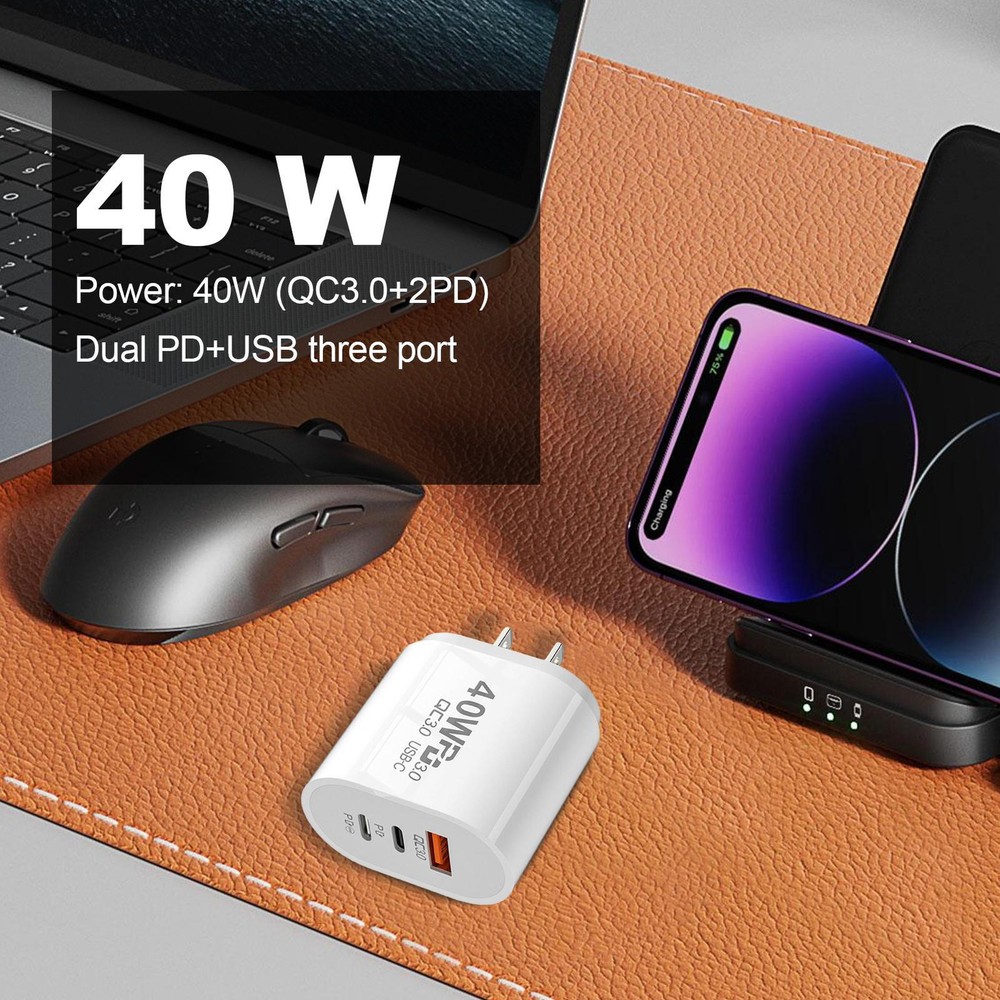 40W USB PD Charging Station Charger Laptop Charging Block Fast Charging Station Bullet Points: Abundant Functions: With this 40W charger, you can quickly charge your mobile phones, tablets, earphones and other devices at the same time without waiting. This multi-functional design helps you improve your efficiency and save your time. Reusable Material: This 40W charger is made of fireproof material and includes an overcurrent and overheating protection system to effectively prevent safety hazards. You can charge your devices with confidence, without fear of short circuits or damage. Repeated Use: The charger's outer casing is made with a special technology that enhances its resistance to scratches, deformation and breakage. This allows for a sturdy and reusable use of the charger for a long time. Easily Carry: This 40W charger is small and light, so you can bring it with you for any occasion. It does not take up much space and meets your needs, whether you use it for business, travel or daily use. Diverse Applications: Your ideal traveling companion is this 40W charger. You can use it in any country without a converter because it can handle voltages ranging from 100 to 240V. In order to keep your devices charged, it also provides fast charging. This 40W USB PD charging station is multi-functional and can charge up to devices simultaneously. It has overcurrent protection to prevent damage and ensure that it can be used repeatedly. Its small size makes it portable, allowing you to enjoy fast charging at any time. This 40W USB PD charging station has a multi-functional design that can charge up to devices at once. It has overcurrent protection to prevent damage and ensure repeated use. Its small size makes it easy to carry, allowing you to enjoy fast charging service anytime. Specification: Type: 40W USB PD Charging Station Power: 40W (QC3.0+2PD) Charger plug: EU plug, US plug Size: about 6.3*4*2.2cm/2.5*1.6*0.9in Packing List: 1 x 40W USB PD Charging Station Payment should be completed within 2 days after auction closed, or unpaid dispute will be filed for an closing auction. An unpaid case will be filled after 4 days ● We strive for 100% customer satisfaction ! ● Positive Feedback is very important to us. ● We hope that you contact us immediately BEFORE you give us neutral or negative feedback, so that we can satisfactorily address your concerns. ● We promise to offer the lowest price and high quality produce. Our working time: Monday to Friday (9:00 am to 18:00pm)(Beijing Time) Saturday (9:00 am to 12:00am),except International Holiday. Dear buyers : ● Welcome to my store ! ● Your satisfaction is our top goal,we appreciate your patronizing. ● If you have any questions, please contact us before leave negative or neutral feedback, we will try our best to solve the issue to your satisfaction, thanks ! ● If you are satisfied with our service, please rate the details of the transaction (Detailed Seller Ratings) on eBay. ● Please always talk to us via ebay Message . ● We appreciate your business and look forward to growing our e-Bay sales with satisfied customers.