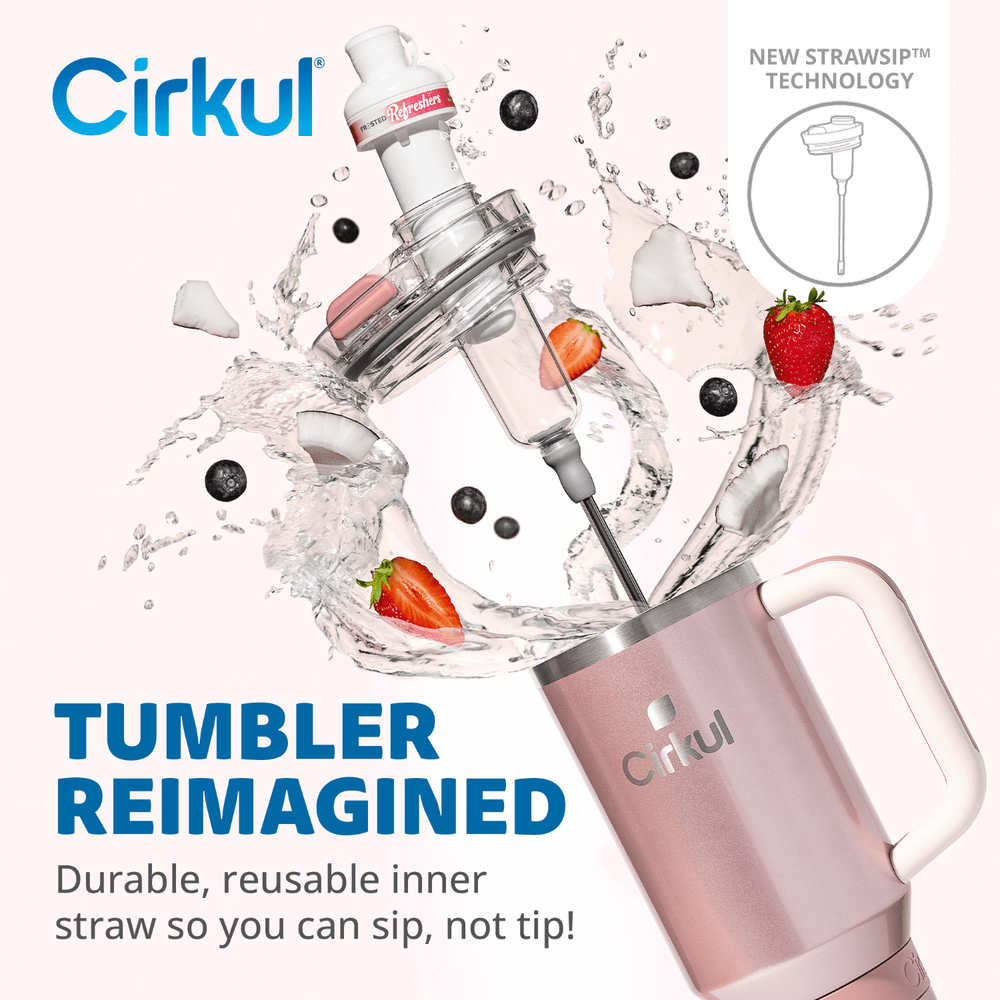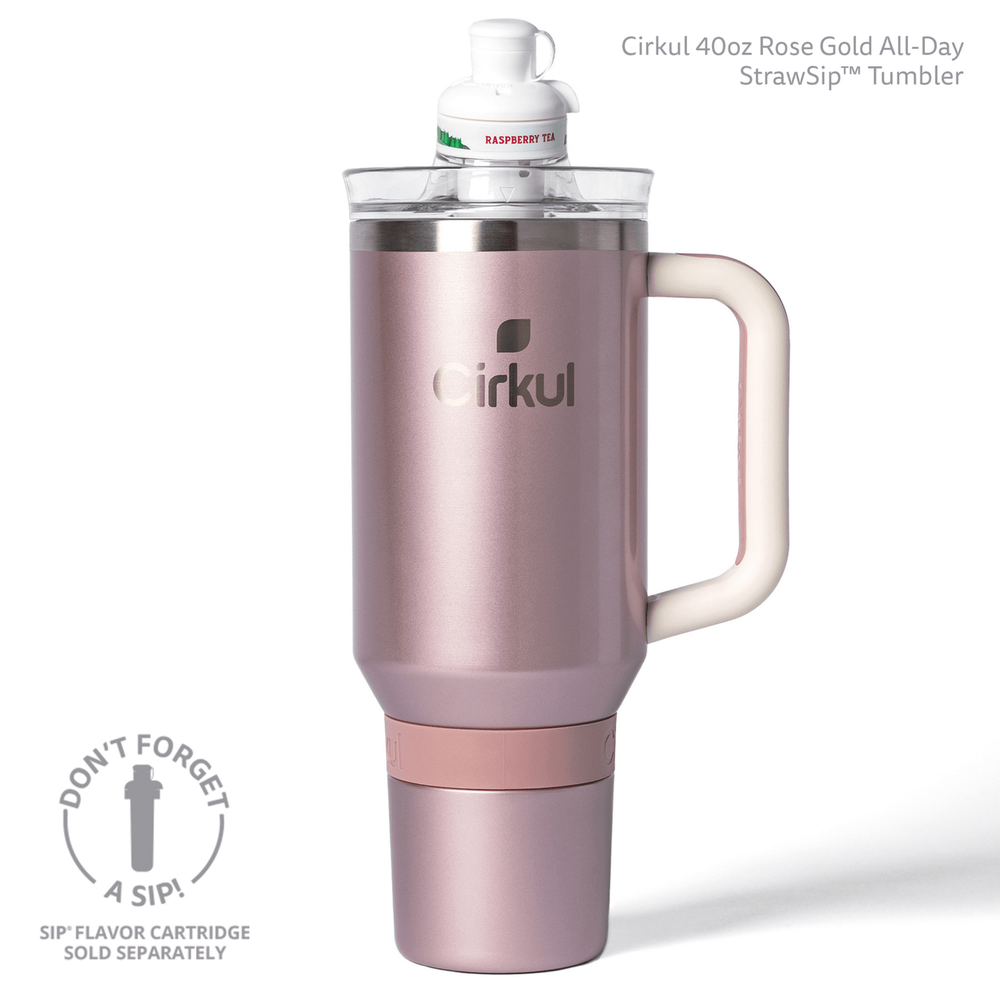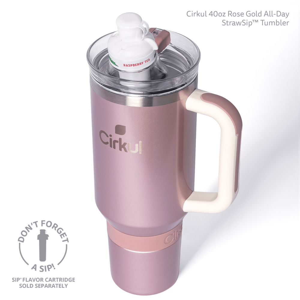 Elevate your beverage experience with the Cirkul 40oz All-Day StrawSip Insulated Tumbler, designed to keep your drinks hot or cold for hours. Crafted from durable stainless steel with a rose gold (pink brown) hue, this tumbler is as stylish as it is functional. Its double wall insulation ensures that your beverage maintains its temperature while the reusable sip straw lid allows for easy sipping on the go. The tumbler's solid color pattern and sports-themed design make it a perfect companion for beach days, the gym, or simply for everyday use. Measuring at 11 inches in height and 4 inches in width, it's spacious enough to hold your favorite beverages. Additionally, the integrated handle ensures comfortable carrying, making it a practical choice for teens and adults alike.