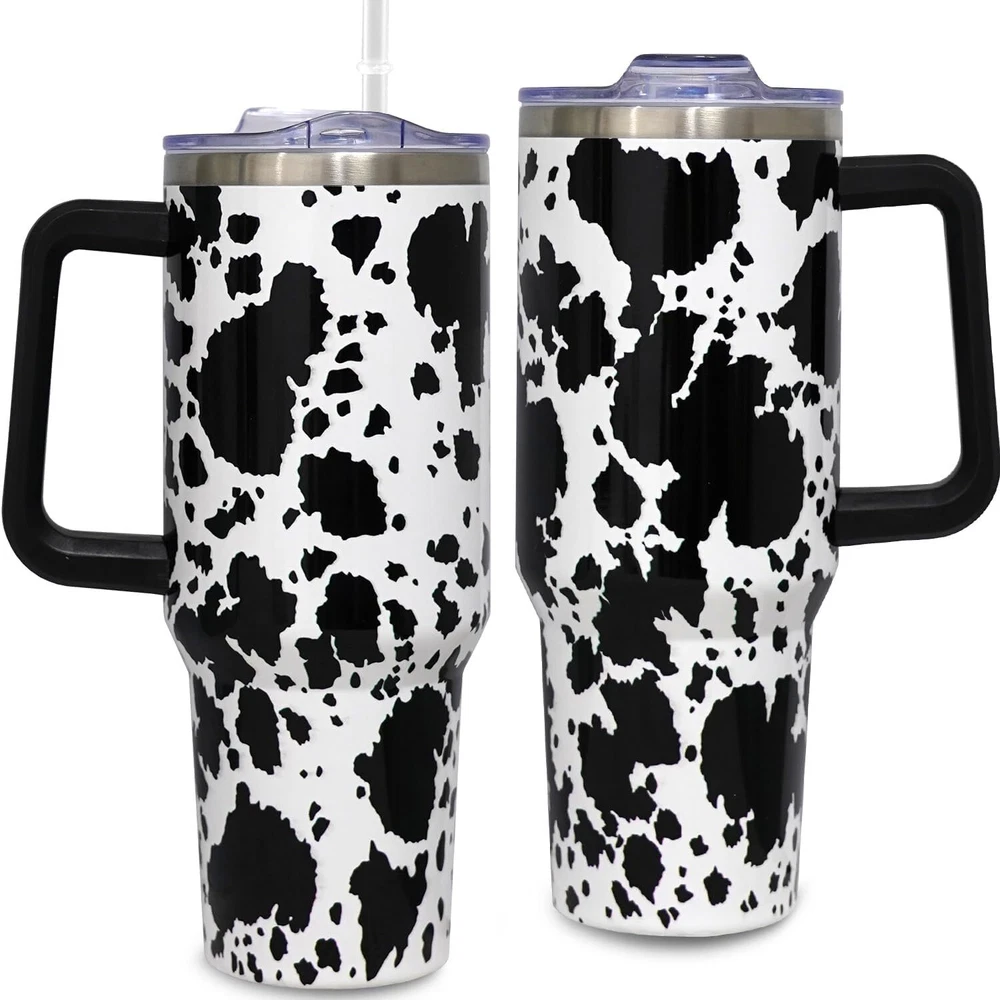 ???Cow Gifts For Cow Lover???-Cow Print Gifts-Cow Lover Gifts,Cow Gifts For Cow Lovers. It''s Cow Gifts For Women, Teen Girls, Kids, Friends, Child, Brother, Sisters, Mom, Aunt,Female, Boyfriend, Coworkers, Nurse, Teacher, Daughter,Coworker, Employees, Boss, Halloween, Birthday Gifts, Mothers Day, Fathers Day, Easter, Valentines Day, Thanksgiving, Christmas Gifts. ???Double-Layer Vacuum Insulation Design???- 40oz Tumbler With Handle Is Made Of High-Quality 18/8 Food-Grade Stainless Steel, The 40 Oz Cup Adopts A Vacuum Double-Wall Design To Ensure A Good Constant Temperature Effect. No Matter What Season You''Re In, You''Ll Be Able To Enjoy Your Favorite Hot And Cold Beverages For A Long Time, Keeping Cold Drinks Cold For Up To 12 Hours And Hot Drinks Hot For Up To 6 Hours. ???Humanized Handle, Cupholder-Friendly???- The Wide And Thick Handle Helps To Reduce The Pressure On The Finger Joints, Which Is Easy To Grasp And Easy To Carry. The Cup''S Shape Fits In Almost Any Car Cup Holder For Easy Portability. ???Multifunctional Lids & Durable Carry Handle??? - The Features Of Our 2-In-1 Unique Lid Make These Travel Mugs Incredibly Versatile: Drink With A Straw Or Sip With A Spout. The Package Includes You Will Get A 40 Oz Cup, A Leak-Proof Lid, And A Straw. ???Perfect Gift Tumbler Set???- Designed For On-the-go Lifestyle, This Travel Tumbler Fits Most Car Cup Holders And Is Perfect For Use Anywhere.Whether You''re Looking For a Gift For A Birthday, Christmas, Graduation, Wedding, Father''s Day, Mother''s Day, Thanksgiving, Or Any Other Special Occasion, This Tumbler Is Sure To Impress.