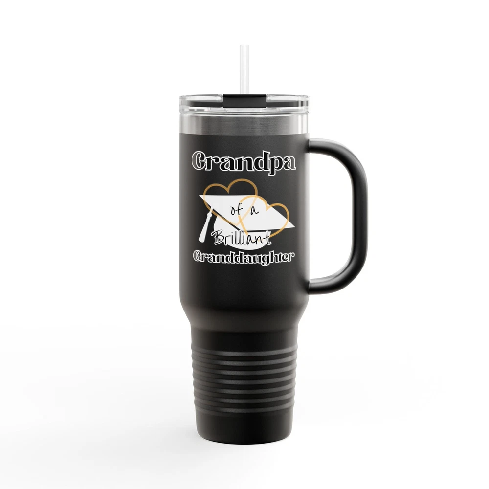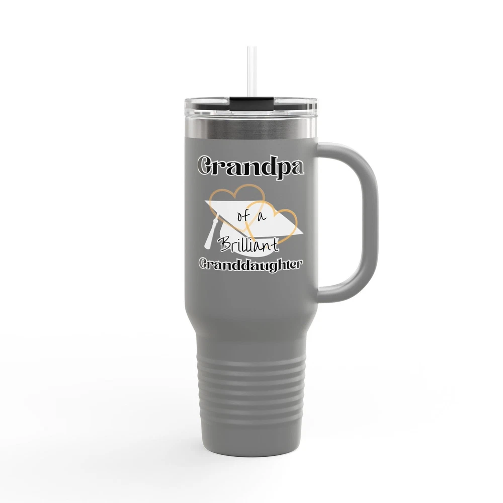 "Grandpa of a Brilliant Granddaughter" Experience hydration on the go with this versatile insulated travel mug. Designed for adventure and daily use, it keeps your drinks hot or cold for hours. Whether you’re hiking, commuting, or enjoying outdoor events, this travel mug fits seamlessly into your active lifestyle. Perfect for Graduations, family outings, picnics, or as a thoughtful gift for friends and loved ones, it adds a personal touch to any occasion. Celebrate family bonds on holidays and special events, making it a cherished addition to your drinkware collection. Product features - Crafted from durable stainless steel for long-lasting use - Double-wall insulation ensures drinks remain hot or cold for hours - Generous 40oz capacity ideal for long trips and outdoor adventures - Ergonomic handle offers comfort and ease of use - Leak-proof lid keeps your beverages secure during travel Care instructions - Clean in dishwasher (put the product on top rack), or wash by hand with warm water and dish soap