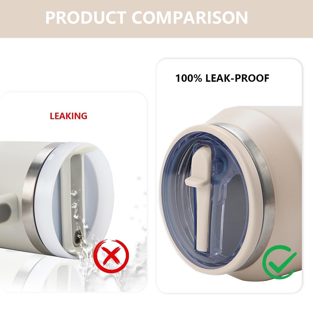Replacement 40oz Leak Proof Tumbler Lid With Straw - Fit For Stanley 40oz 64oz Adventure Quencher and Quencher 2.0 Tumbler (Cream, 40oz) Product Details Size: 40oz and 64oz Color: Cream Brand: Acuewuja MPN: TUMBLER LID UPC: Does not apply EAN: Does not apply Brand: Acuewuja Color: Cream Special Feature: Leak Proof Style: LIDS 40OZ Theme: Adventure Brand: Acuewuja Color: Cream Special Feature: Leak Proof Style: LIDS 40OZ Theme: Adventure Recommended Uses For Product: Travel, Home Occasion: Daily Included Components: Lid Specific Uses For Product: Hot Drinks, Cold Drinks, Travel, Outdoor Activities, Sports, Commuting Shape: Round Pattern: Solid Product Care Instructions: Machine Wash Age Range (Description): Adult Material Feature: BPA-free Reusability: Reusable Unit Count: 1.0 Count Product Dimensions: 2.1"W x 3.9"H Material Type Free: BPA Free Number of Items: 1 Package Type: FFP Finish Type: Glossy Manufacturer: Acuewuja Size: 40oz and 64oz Item Weight: 5 ounces Country of Origin: China Item model number: TUMBLER LID Date First Available: June 27, 2024 Made from high-quality materials, the Tumbler Lid is built to last and withstand even the toughest conditions. Leak-Proof: Featuring a tight seal and advanced flow control technology, this lid ensures that your drink stays in the tumbler and off your clothes. Easy to Use: Simply twist the lid onto your 40oz tumbler and enjoy your drink without worrying about spills or leaks. Versatile: Whether you're hiking in the mountains or working at your desk, this lid is the perfect accessory for your tumbler. Stylish: With its sleek design, this lid adds a touch of style to your tumbler and helps you stand out from the crowd.