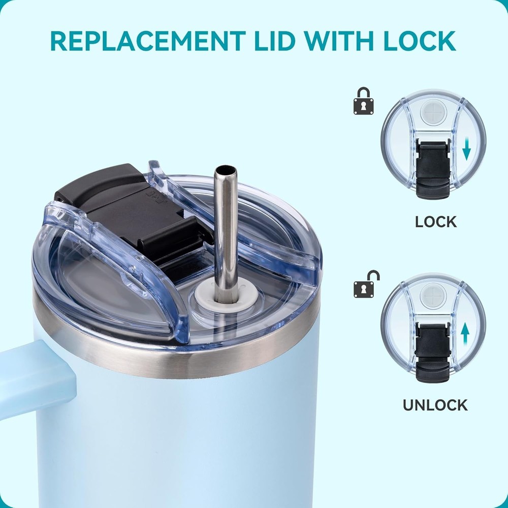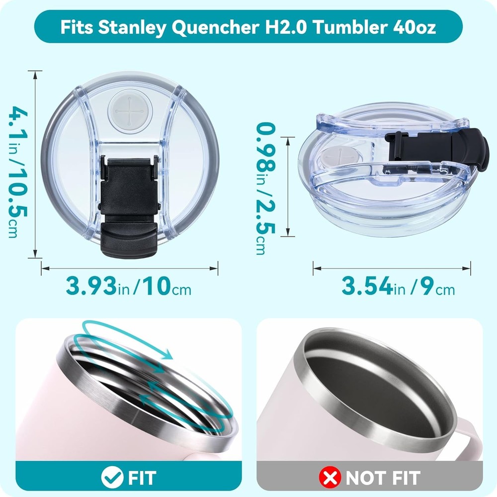 Free eBay listing template designed by dewiso.com 40 OZ Tumbler Lid Replacement Fit for Stanley Cup, 2 Pack Spill Proof Tumbler Covers with Lock for Stanley Cup Accessories FREE AND FAST SHIPPING! About this item PERFECT FIT - This replacement lid is perfectly compatible with the Stanley Adventure 40 OZ Cup. Please check the size BEFORE purchasing STRAW FRIENDLY DESIGN- Accommodates 6-10 mm straws, straw opening ''+'' design to prevent splash, so drinks or water won't spill easily from the mug. LID WITH LOCK- The lid can be locked to prevent leakage, no more worry about leakage while driving. And you can use it with straw or not. SAFE MATERIALS- Our lids are made of AS plastic and are BPA free, safe for hot drinking BETTER SERVICE- Any questions, please contact us, we will reply within 10 minutes during working time › Product We offer a 30-Day Return Policy on items which you are not completely satisfied with. You have the option for a full-refund or an exchange of the item. No returns are available on items shipped outside of the US . Shipping We offer Free Shipping to the US and ship within 2 business days of payment, usually sooner. We use UPS express shipping. That's why your products are usually delivered within 3 days . Contact We try our very best to make sure every customer is completely satisfied. If there's a problem , message us! We're happy to help. 24/7 live chat available.
