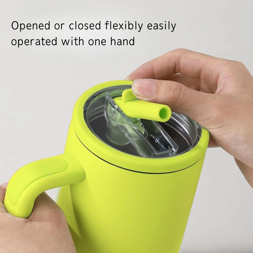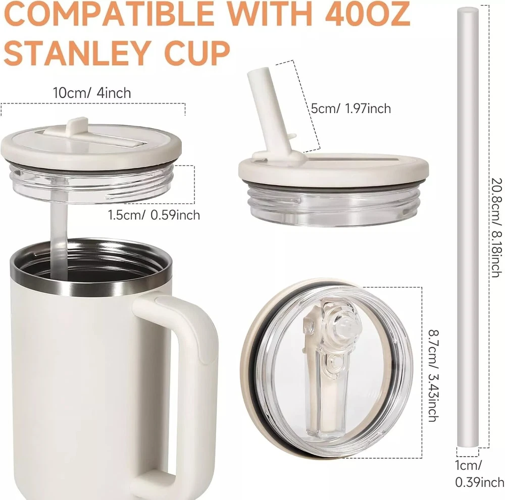 Introductions 【 Size Information 】 Replacement lid: 3.9*3.46*1.02 inches, straw: 8.46 inches 【 Perfect Configuration 】 Includes 1 replacement lid and 1 sturdy straw, simple and fashionable shape, suitable for many occasions 【 Fit for 40oz Cups 】 This tumbler flip straw lid is tailored specifically for 40oz cups, including Adventure Quencher Travel, Quencher H2.0 FlowState tumblers 【 High Quality Material 】 Made of high quality plastic, sturdy and durable, food-grade and odorless, safe for daily use, and designed to withstand repeated use 【 Leak Proof Confidence 】 With perfect airtightness, the lid helps prevent beverage leakage, prevent dust from entering the cup, and allows hot and cold beverages to be stored for longer, maintaining the purity and freshness of your drinks. It ensures that your beverages stay secure, whether you're on the travel or simply storing your tumble 【 Premium Design 】 The lid can be opened or closed flexibly, easily operated with one hand. The detachable straw is easy to wash and keep clean, and dishwasher-safe 【 Versatile and Functional 】 Suitable for a wide range of beverages, including water, juice, milk, and tea 【 Enhanced Drinking Experience 】 The extra-long reusable straws provide a comfortable and enjoyable drinking experience with your 40 oz cups Package Including: 1*replacement tumbler flip lid +1* straw( Excluding cup )