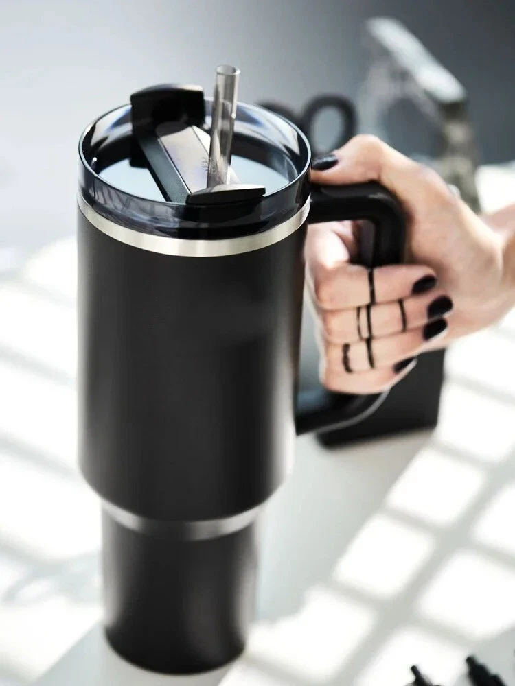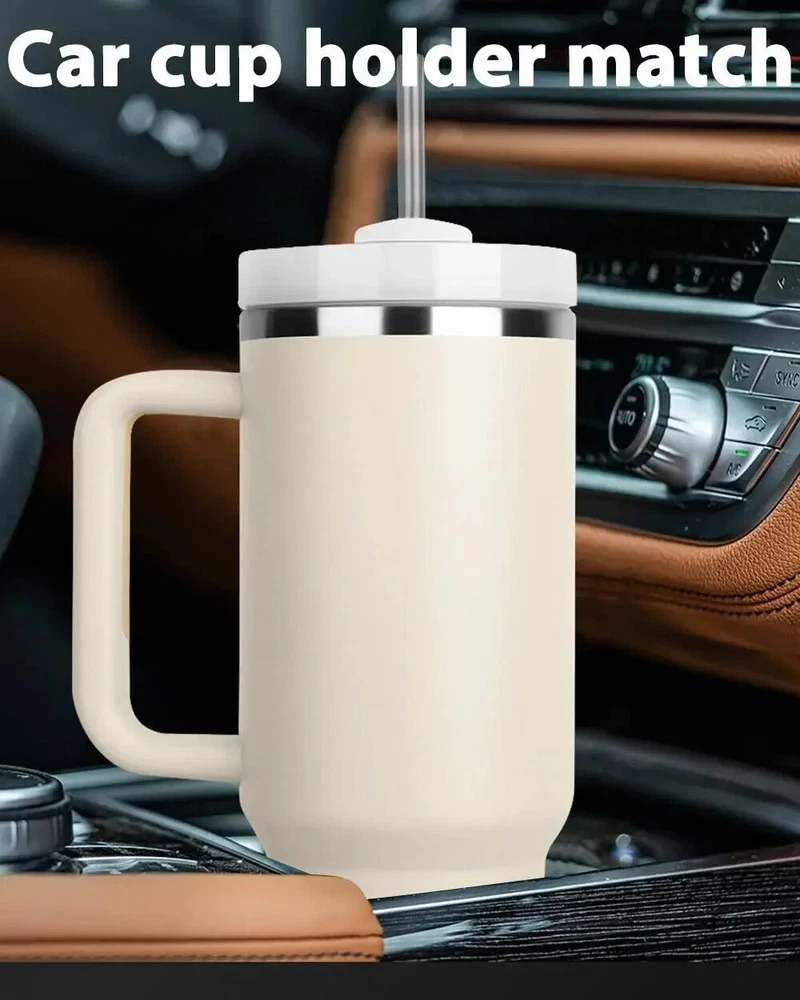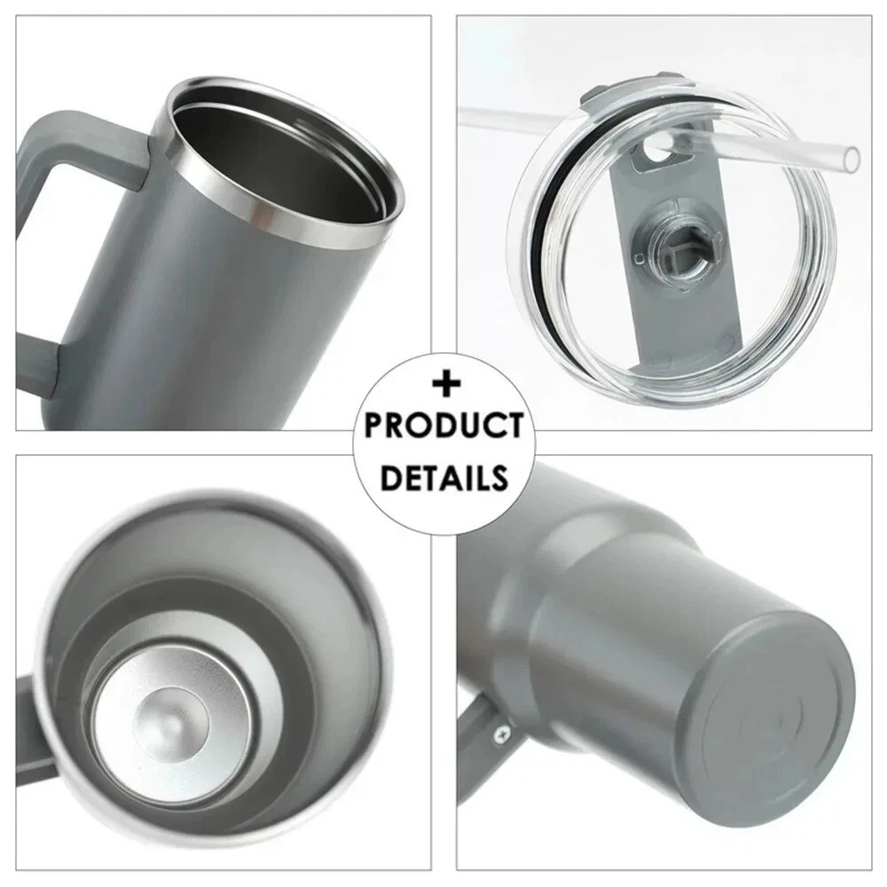40oz Stainless Steel Vacuum Insulated Tumbler With Handle Straw Lid Mug Flask This vacuum insulated water bottle is dishwasher safe! ● Slip-free powder coating won't sweat! ● This stainless steel water bottles keep the coldest drinks icy cold and hot drinks piping hot for hours! ● Reusable water bottle is BPA-free and made of stainless steel! ● Fits car cup holders! Constructed with 18/8 pro stainless steel ● Odor- and bacteria-resistant ● 100% recyclable ● Double wall vacuum insulation keeps hot beverages hot up to 12 hours and cold drinks cold and refreshing for 24 hours