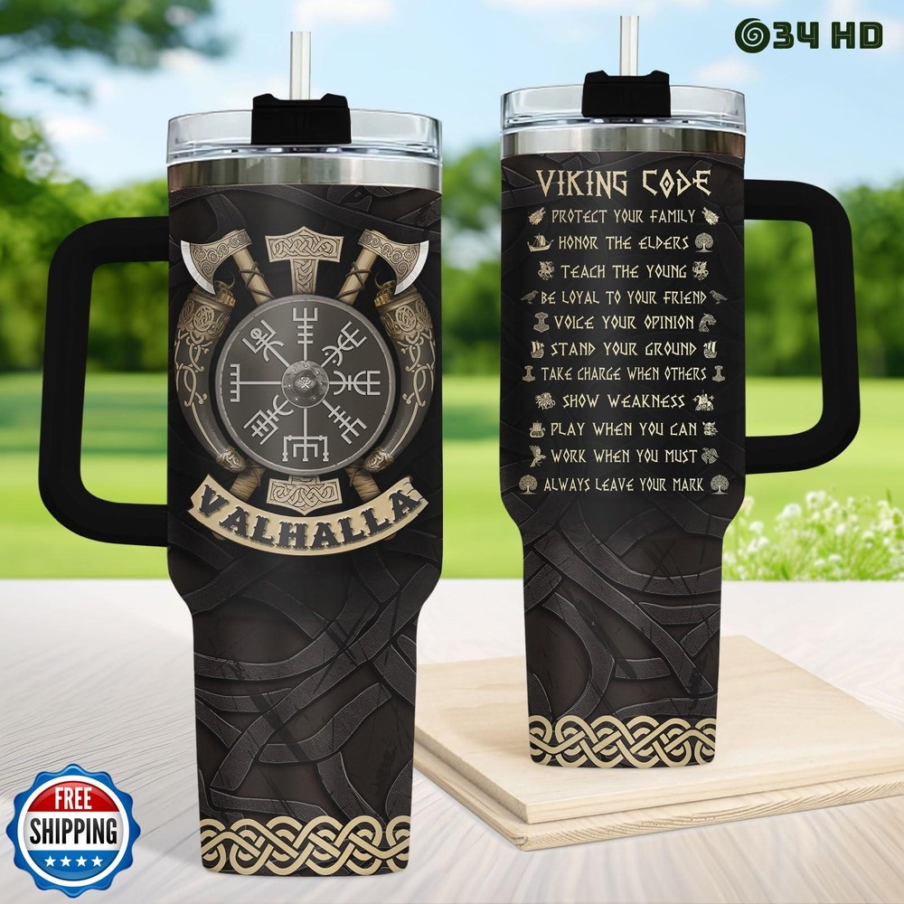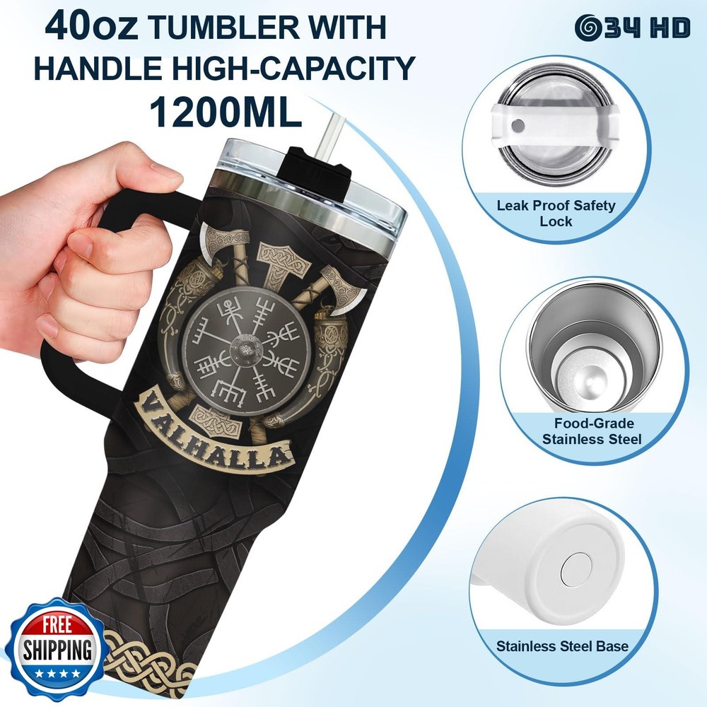 Viking Gifts for Men, Viking Code Tumbler with Handle and Straw, 40oz Valhalla Mug for Men, Norse Mythology Gifts for Scandinavian Friend Dad Grandpa Uncle Features INSULATED COFFEE TUMBLER - Elevate your loved one's special days with this coffee tumbler featuring a design that’s both funny and meaningful. A unique themed coffee mug is a heartfelt way to show your love and appreciation for them. It’s a practical and thoughtful gift, perfect as a dad mug, dad drinking cup, dad travel mug, funny dad tumbler with handle, or dad tumbler cup. GIFT FOR MEN - Make his birthday even more special by showing him you care with our men travel cup. It’s the perfect choice for dad birthday gifts from daughter or son, unique gifts for men, cool gifts for male friend, Father’s Day gifts, and thoughtful presents for him who seem to have it all. TUMBLER WITH LID - Features a BPA-free flip lid and a leak-proof design, ensuring your hot or cold drinks stay secure. Our various designed tumblers are thoughtful boyfriend gifts, father daughter gifts, gifts for dad who wants nothing, present for grandpa, gifts for uncle, new dad gifts for men. HIGH-QUALITY MATERIAL - Carefully designed using 18/8 food-grade stainless steel, ensuring durability and longevity, these men tumblers are unbreakable, sweat-proof, and rust-resistant, making them perfect for everyday use. EXCELLENT TEMPERATURE RETENTION - With double-wall insulation, our tumblers keep hot and cold drinks at their desired temperatures, ensuring your beverage stays just right, no matter how much use it gets. Shipping Free & Fast Shipping: We offer free shipping to most of the USA with a normal delivery time of 3-7 days. However, due to the current situation, additional delivery time (up to 3 weeks) may be required for some items. Alternative Carriers: We may use alternative carriers (e.g., USPS, FedEx, UPS) to ensure your package arrives safely and on time. Due to the use of multiple carriers, we are unable to provide a tracking number automatically. Handling Time: Orders are processed and shipped within 1-2 business days of receiving cleared payment. Shipping Restrictions: Shipping to Alaska, Hawaii, Puerto Rico, Guam, and other US territories may incur shipping charges or delivery restrictions. Please contact us before ordering, or your order can be refunded/cancelled. State Restrictions: Certain items may not be shipped to California due to state regulations. Contact for Tracking Updates: If you require tracking updates or have any concerns about the delivery of your order, please feel free to contact us, and we will be happy to assist you. Return Policy 30-Day Hassle-Free Returns: If you are not completely satisfied with your purchase, you can return the item for free within 30 days of receiving it for a full refund or exchange. Easy Return Process: Contact us, and we will provide you with a prepaid return shipping label and detailed instructions. No Restocking Fee: There are no restocking fees for returns. However, the buyer is responsible for return shipping costs if the return is not due to a seller"s error. Refund Processing: Refunds will be processed within 1 business day of receiving the returned item in its original condition. Feedback Your feedback is extremely important to us. We strive to provide the best products and customer service possible. If you are satisfied with your purchase, please take a moment to leave us a positive review. If you have any concerns or issues with your order, please contact us before leaving negative feedback. We are committed to resolving any problems and ensuring your satisfaction. Contact Us If you have any questions or concerns, please feel free to reach out to our customer support team. You can contact us through the eBay messaging system. We are available Monday to Friday, 9:00 am to 5:00 pm EST, and we will do our best to respond to your inquiry within 24 hours. Thank you for supporting our small family business!