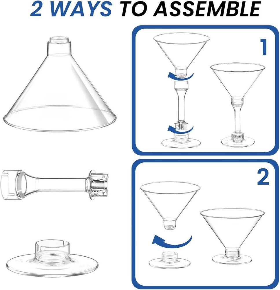 DISPOSABLE & REUSABLE & RECYCLABLE:Come with 40 packs clear plastic martini glasses are Food Grade. Plastic martini glasses sturdy enough for many kinds of occasions that can be washed and reused again. And these clear plastic cocktail glasses unavailable in the Dishwasher or Microwave. ENTERAIN IN STYLE: Impress your guests with this set of 40 disposable martini glasses perfect for wine. Suitable for any occasion, these cups are a practical and stylish way to serve your favorite treats.The cocktail glass consists of three parts, the base, the stem and the body, which are easy to install and tightly linked so that you don't have to worry about it during the party. SAFE & STURDY: Wine glasses Made from PS hard plastic, these plastic cups are safe for food and resistant to breakage. The transparent and crystal clear material makes it easy to see what's inside, while the stackable and detachable design allows for easy storage and space-saving. APPLICABLE OCCASIONS: the parfait glasses plastic are ideal for birthday parties, barbecues, proms, baby showers, weddings, buffet, carnivals and more, and for many outdoor or indoor celebrations, providing you with a convenient and stylish display of desserts at the same time AFTER-SALES SERVICE: We use rugged packaging to ensure your disposable plastic martini glasses arrive at their best. If you have any questions after receiving the package, you can contact us by email, we will give you the most satisfactory solution within 24 hours.