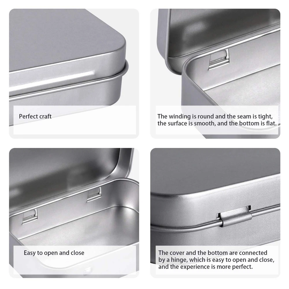 40pcs Metal Rectangular Empty Hinged Tin Box Container Mini Portable Small