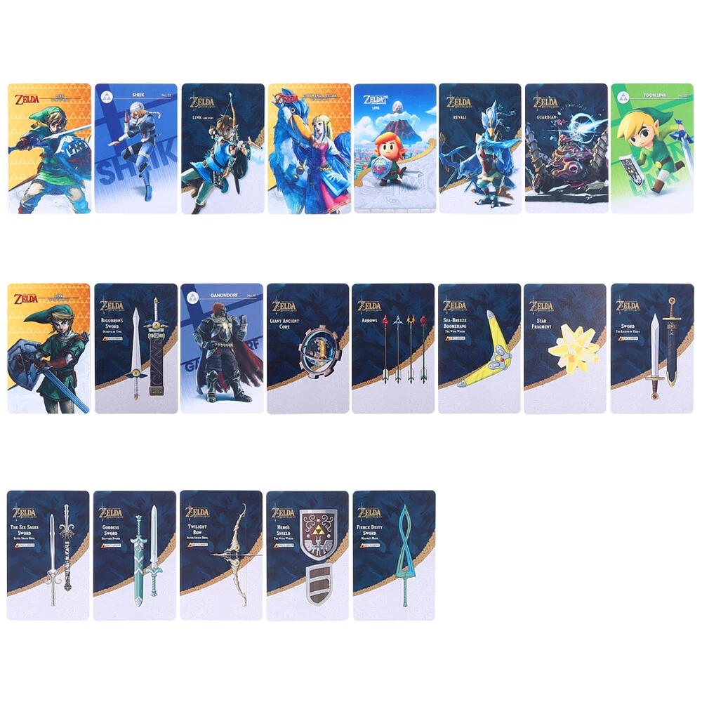 NOTE:Standard shipping service can't ship the item to the PO BOX address, so if you want it to your PO Box, please choose the Express shipping service (postage add $0.99 without tax) Introductions: This is a set of 38 Amiibo Compatible NFC Cards for use with Switch Breath of The Wild Tears of the Kingdom. They are NOT made by Amiibo but work just like them for a fraction of the price. They are firm cards that are about the size of card and have beautiful picture on them. They are very easy to carry in the case which is about the size of a small wallet. You have to activate Amiibo on Switch setting and you can you each card once a day. Each card will give you a Chest with a random treasure inside and plenty of food and supplies. It will make you adventure so much more fun since you won't have to waste so much time finding supplies like food, weapons and armor so you can focus on your exploration of the land. Cards Size:86mmx54mm For:Switch/Switch Oled/Switch Lite Package Includes: 38 pcs/set: No.1 Wolf Connection - 20 Hearts No.2 The Legend of - Connection Majora's Mask No.3 The Legend of - Connection Skyward Sword No.4 Super Crush Brothers - Sheik No.5 Super Crush Brothers - Ganondorf No.6 Super Crush Brothers - Link No.7 Breath of the Wild - Connection (Rider) No.8 The Legend of - Toon Connection The Breeze Waker No.9 Breath of the Wild - No.10 Breath of the Wild - Guardian No.11 Super Crush Brothers - Toon Link No.12 Super Crush Brothers - No.13 The Legend of - 8 Piece Link No.14 Breath of the Wild - Connection (Archer) No.15 Breath of the Wild - Bokoblin No.16 The Legend of - The Breeze Waker No.17 The Legend of - Connection Ocarina of Time No.18 The Legend of - Connection Nightfall Princess No.19 Breath of the Wild - Mipha No.20 Breath of the Wild - Revali No.21 Breath of the Wild - Daruk No.22 Breath of the Wild - Urbosa No.23 Super Crush Brothers - Youthful Link No.24 The Legend of - Connection's Awakening No.25 The Legend of - and Loftwing No.26 Ancient Weapons No.27 Falcon Bow No.28 Fierce Deity Sword No.29 Twilight Bow No.30 Star Fragments No.31 Gooddess Sword No.32 Biggoron's Sword No.33 Six Sage Sword No.34 Wang Clan Shield No.35 Bomb Arrow No.36 S ea-Breeze boomerang No.37 Bow No.38 Link No.39 Ganondorf No.40 Princess Zelda