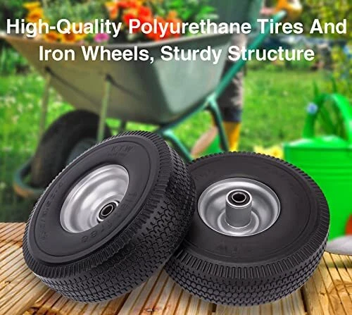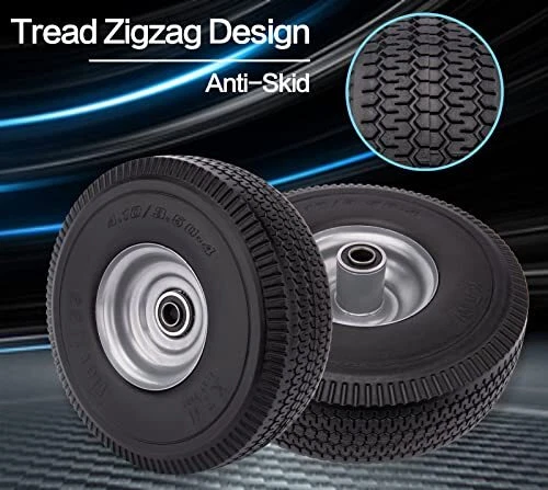 Return Policy Fast Delivery Trusted seller 4.10/3.50-4 Flat Free Tire for Hand Truck/Garden Utility Wagon Cart/Lawn Mower/Generator, 2 Pcs 10" Solid Rubber Tire and Wheel with 5/8" Axle Bore Hole, Offset Hub, and Double-Sealed Ball Bearings Product Description Specifications of 4.10/3.50-4 Flat Free Tire: The outer diameter of the solid PU tire is about 10 inches, the rim diameter is 4 inches, the solid PU run-flat free tubeless tire width is 3.5 inches, and the bearing is 5/8 inches. You will get two 4.10/3.50-4 flat free tire with your order! Please pay attention to check whether your old tire model matches before buying! 10 Inch Flat Free Tubeless Tires Wide Application: Our 4.10/3.50.4 solid tire is used to replace all flat tubeless tires and wheels with 5/8 inch bearing. 10" Solid Rubber Tire Highly compatible with yard tractors, wheelbarrows, wagons, hand trucks, lawn mowers, dollies, portable generators, trolleys,and more! Take The Hassle Out Of Tire Inflation: 10 inch flat free solid tire is the perfect replacement for pneumatic tires. Our 4.10/3.50-4 Solid rubber tires can never go flat. 4.10/3.50-4 tire and wheel can prevent from getting punctured or deflated. Keep you away from the trouble of inflating tires frequently. Solid Rubber Tire Wheels Airless tire wheels save you time and money. T’s no risk of flats, explosive punctures, and pinched inner tubes! Tread Zigzag Design - 10 Inch Hand Truck Wheels: A deep zigzag tread provides better grip, a perfect balance of traction and maneuverability, and a good anti-slip effect. High-quality Materials, Solid Construction: 4.10 3.50-4 hand truck tires are made of high quality polyurethane tires and iron hubs. Rugged construction ensures tires are abrasion, puncture, corrosion, and tear resistant. 4.10/3.50-4 Flat Free Tire Resists impact cracks for all-terrain use. Heavy duty ball bearing and 5/8” axle bore, Scientific structural design and high-quality metal materials greatly increase its bearing capacity. Shipping Returns Payment Shipping Shipping is FREE to all addresses other than APO/PO boxes in the lower 48 states. All our stock ships from US-based warehouses. Shipped via USPS or UPS (depending on location and package weight) Unless stated otherwise, all orders will ship within 24-72 hours of your payment being processed. Check our feedback to see the great reviews of FAST shipping we offer. Returns Seller does not accept returns Payment We currently accept payment via eBay managed payments only. Once payment is cleared, we will dispatch your shipment within 1-3 business days. Please refer to the "Shipping" tab for more information regarding shipping speed to your destination.