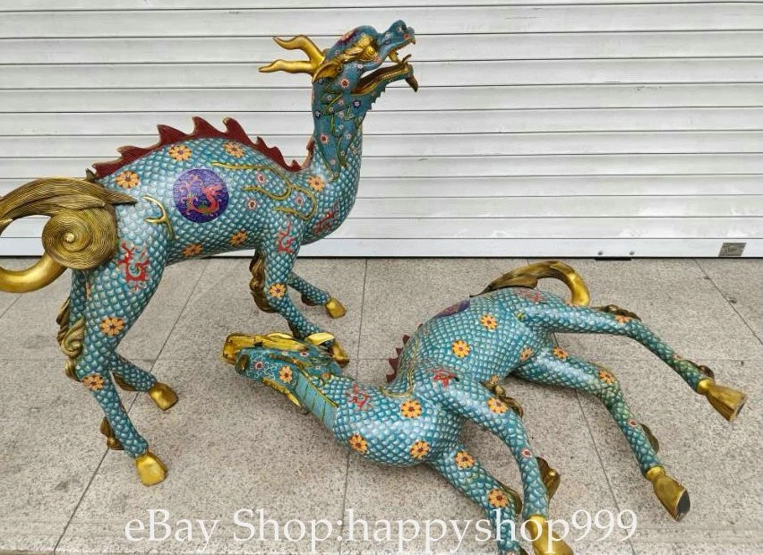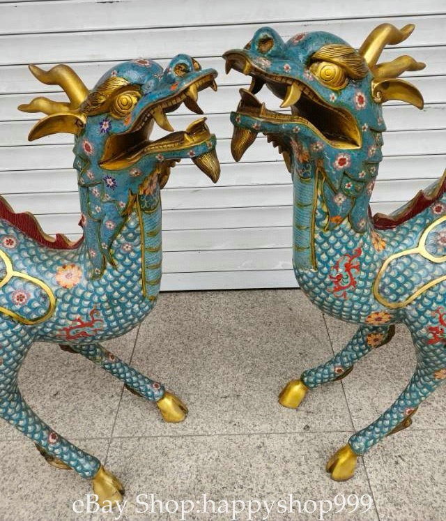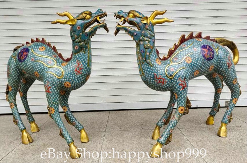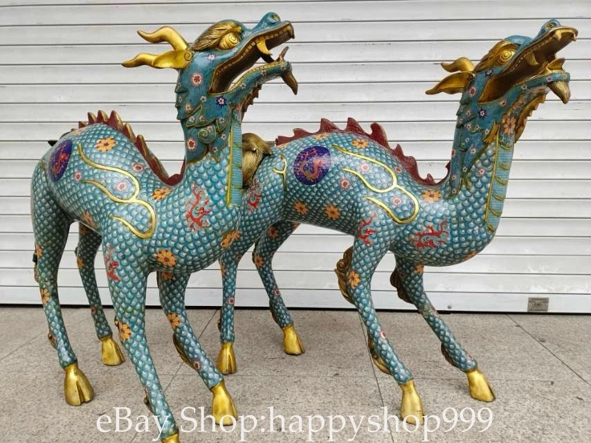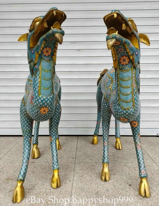 41.2" China Pure Copper Cloisonne Gilt Kylin Beast Wealth Statue Sculpture Pair You are bidding for a 41.2" China Pure Copper Cloisonne Gilt Kylin Beast Wealth Statue Sculpture Pair. It is in good condition without broken or fixing as photos showing and rare style from antique market. This is a great piece of valuable collection, a valuable personal alter or a very good present. the handwork is very fine with incredible detailling. Don't miss out this chance to get it . All the items we are showing is only one available and You will get the same one as photos. Condition Material : Pure Copper Cloisonne Gilt Origin : Chinese Style : Same as photos showing Size : High 41.2 Long 38.4 Breadth 15.6 (inch) Weight : 120.0 KG----included the weight of packing materials Shipping cost by EMS or SF express (5-12 days) : Free Shipping. Terms of Sale We recommend the combine shipping and wholesale order , If you won more items once that we will give you a 5-10% discount off the price. Also We encourage you to make an offer if you're interested. Each piece is a testament to traditional craftsmanship and will make a stunning addition to any collection or home decor. Our priority is to ensure your satisfaction. Feel free to reach out with any questions or for additional information. Thank you for considering our items. About us We are business in Asian Antique and old collectable items over 12 years. My father is running them from China, korea, Singapore,Japan and Nepal every year and hold many rare items in stock. They are inculding the diference style porcelian , Cloisonne , Bronze。 Pottery . Silver also jade carving from difference time period. We are looking towards to have the friends online for working each other and learning. Thank you. Contact Me If you're in any way dissatisfied with your purchase or any problem of your order condition , Please let me know through "MY MESSAGES" or "Ask Seller Questions" though eBay. We will quickly to answer and try best to resolve it well for your happy . We are committed to ensuring that you are completely satisfied with every transaction. 100% Satisfaction guaranteed ! We will reply your mail with in 24 hours normally. Thanks for looking! We believe you will enjoy with our other items too !