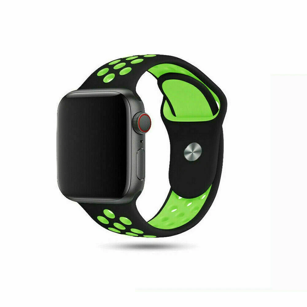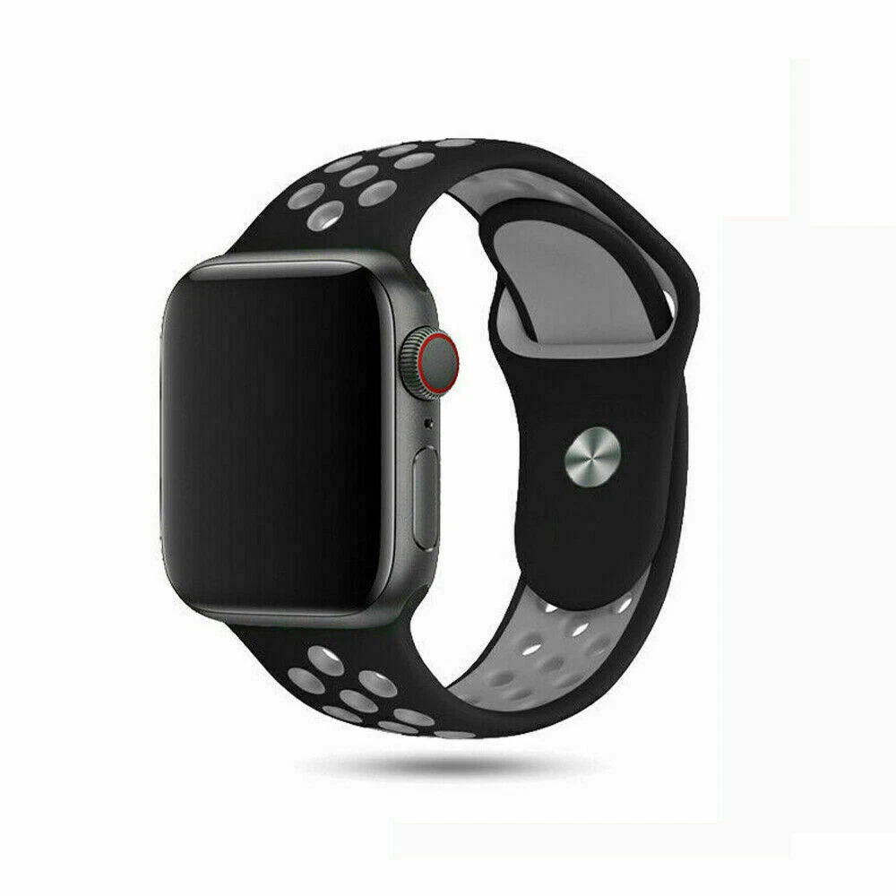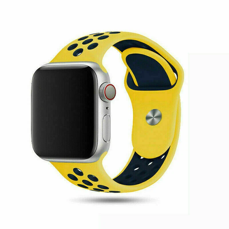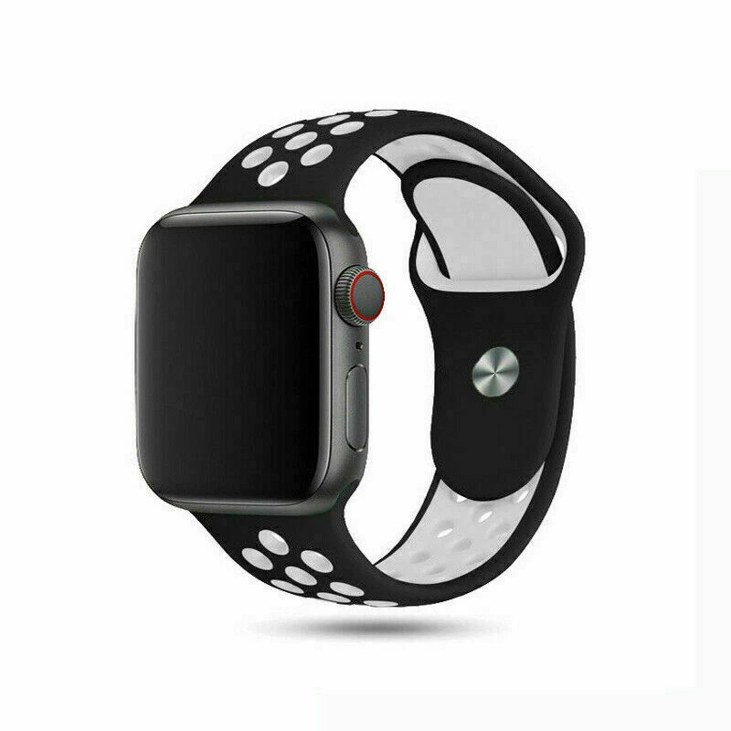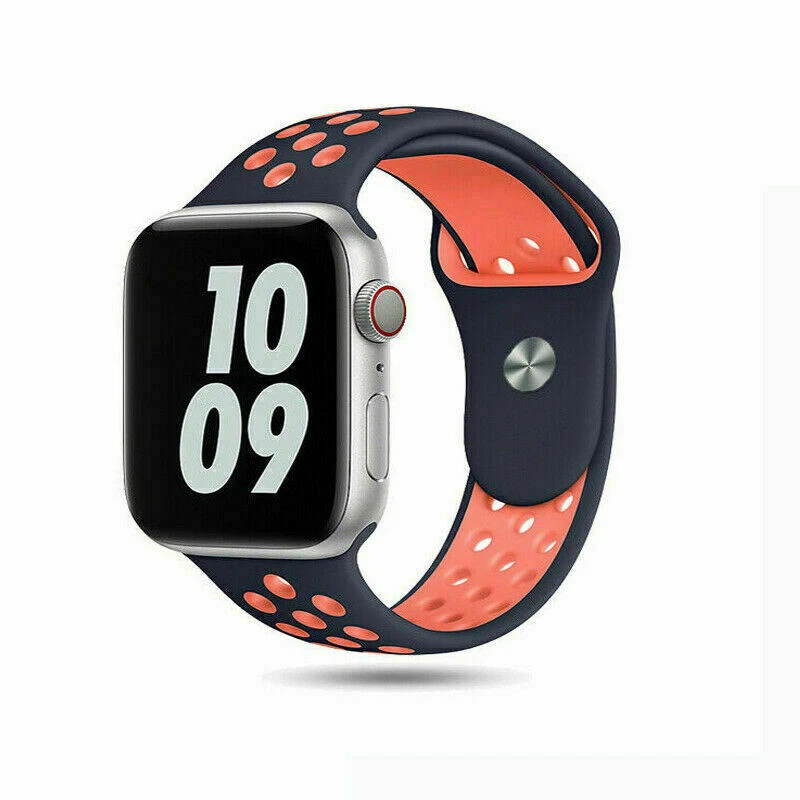 40/44/41/45mm iWatch Silicone Sport Band Strap for Apple Watch Ultra 9 8 7 6 5 SE Features: 100% Brand New & High Quality: Made with hypoallergenic, nickel-free stainless steel metal parts, ensuring comfort and safety. Durable Silicone Material: Crafted from pure silicone, the band is flexible, durable, and soft, providing a comfortable fit for everyday wear. Easy to Wear & Install: The band comes with watch lugs on both ends, securely locking onto your Apple Watch without the need for tools, making it easy to install and remove. Breathable Design: Air-permeable construction promotes airflow, keeping your wrist cool. The two-toned band with a smooth finish adds a sporty and stylish look to your Apple Watch. Fit for Various Wrist Sizes: 38mm/40mm/41mm S/M size: Fits 130-180mm wrists. 38mm/40mm/41mm M/L size: Fits 150-200mm wrists. 42mm/44mm/45mm/49mm S/M size: Fits 140-190mm wrists. 42mm/44mm/45mm/49mm M/L size: Fits 160-210mm wrists. Compatible With: Apple Watch Nike+ / Ultra / Series 9 / Series 8 / Series 7 / Series 6 / Series 5 / Series 4 / Series 3 / Series 2 / Series 1 / SE Package Includes: 1x Silicone Sport Band (Note: Apple Watch is not included.) Note: All bands come with a single buckle. Colors in the photos may vary slightly due to lighting.