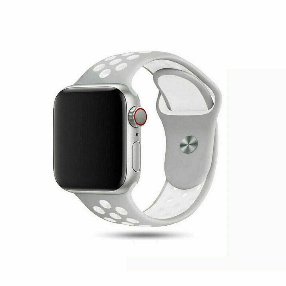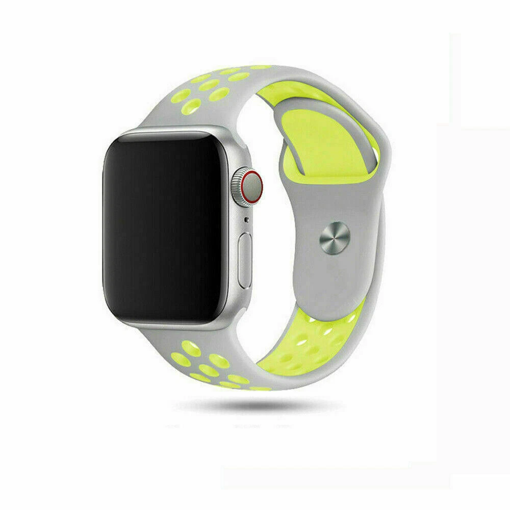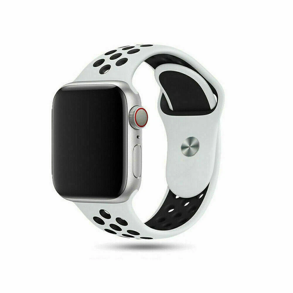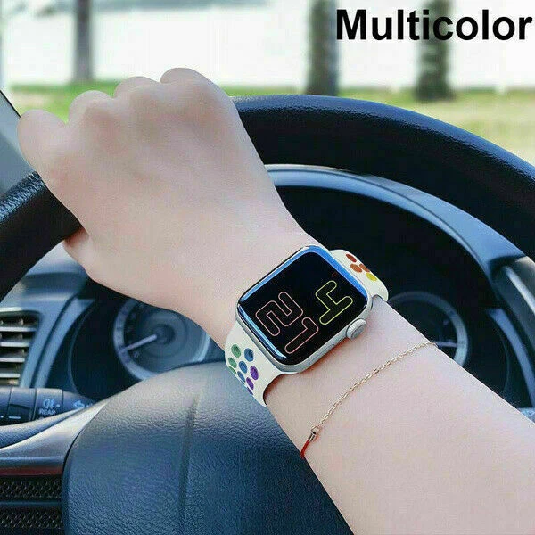 40/44/41/45mm iWatch Silicone Sport Band Strap for Apple Watch Ultra 9 8 7 6 5 SE Features: 100% Brand New & High Quality: Made with hypoallergenic, nickel-free stainless steel metal parts, ensuring comfort and safety. Durable Silicone Material: Crafted from pure silicone, the band is flexible, durable, and soft, providing a comfortable fit for everyday wear. Easy to Wear & Install: The band comes with watch lugs on both ends, securely locking onto your Apple Watch without the need for tools, making it easy to install and remove. Breathable Design: Air-permeable construction promotes airflow, keeping your wrist cool. The two-toned band with a smooth finish adds a sporty and stylish look to your Apple Watch. Fit for Various Wrist Sizes: 38mm/40mm/41mm S/M size: Fits 130-180mm wrists. 38mm/40mm/41mm M/L size: Fits 150-200mm wrists. 42mm/44mm/45mm/49mm S/M size: Fits 140-190mm wrists. 42mm/44mm/45mm/49mm M/L size: Fits 160-210mm wrists. Compatible With: Apple Watch Nike+ / Ultra / Series 9 / Series 8 / Series 7 / Series 6 / Series 5 / Series 4 / Series 3 / Series 2 / Series 1 / SE Package Includes: 1x Silicone Sport Band (Note: Apple Watch is not included.) Note: All bands come with a single buckle. Colors in the photos may vary slightly due to lighting.