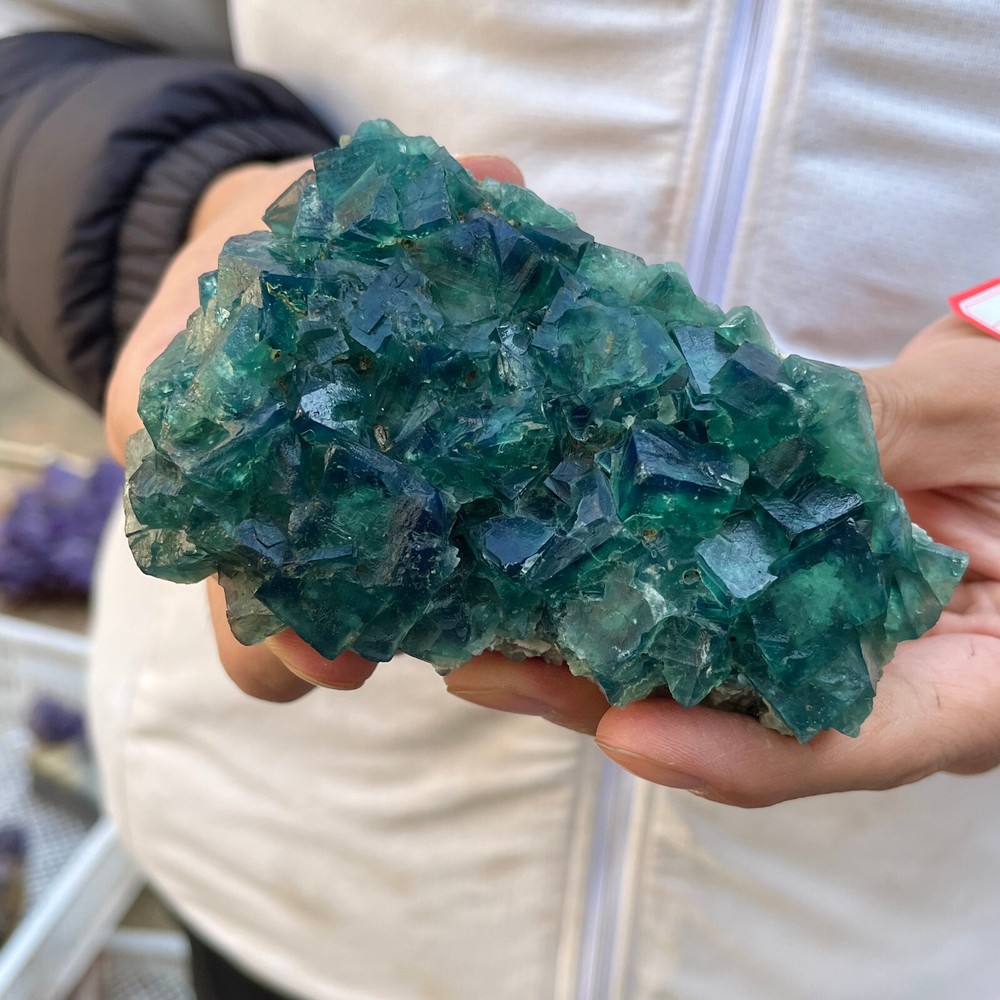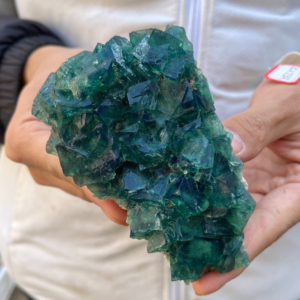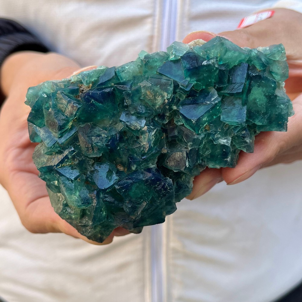 Amazing blue green hues in the fluorite. Item got here super quickly and it was wrapped completely in bubble wrap and tape. It looks exactly like the picture. It’s a solid chonk of a rock with interesting white flecks of crystal on the bottom. A+ transaction!!!