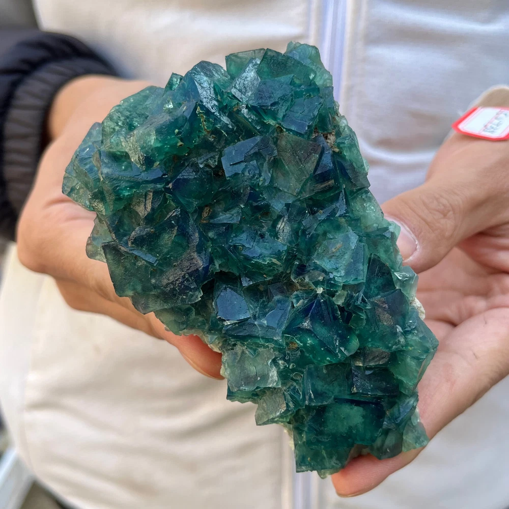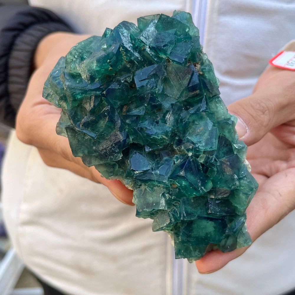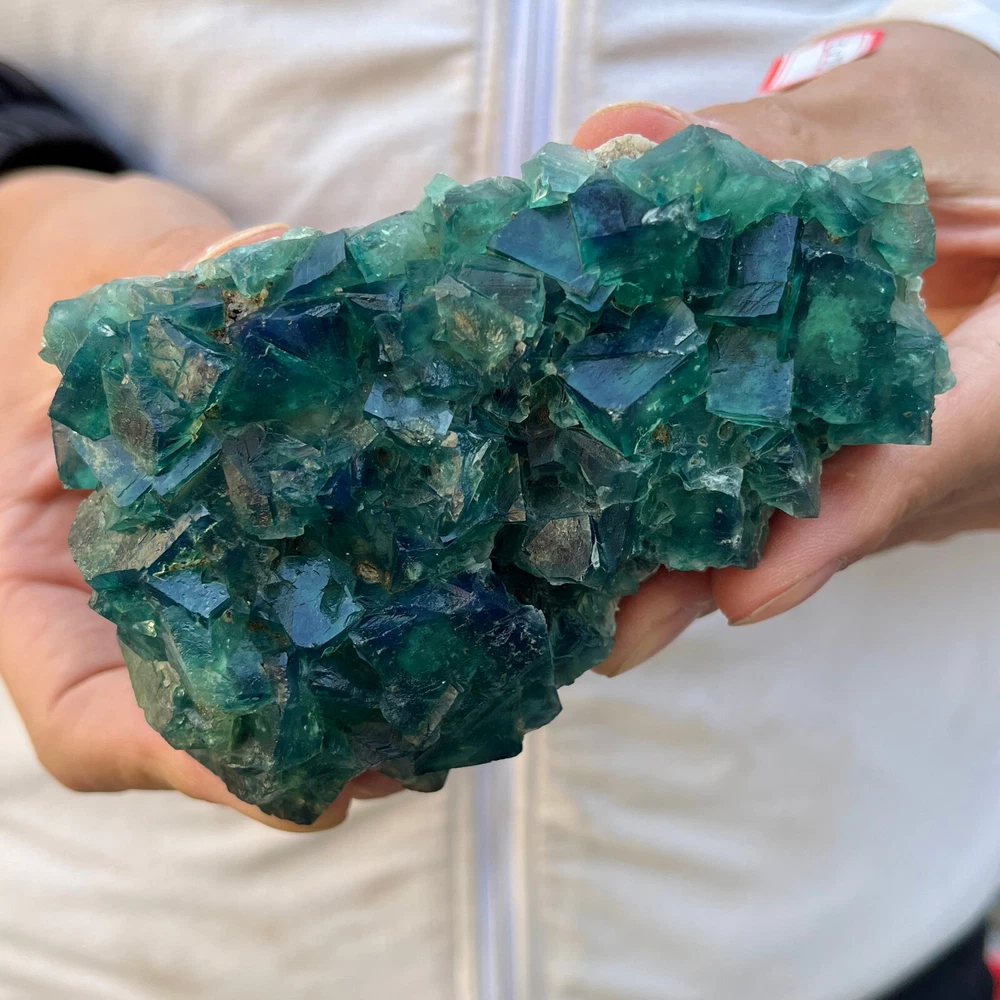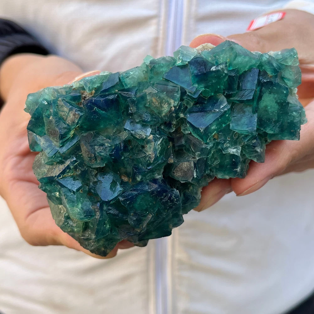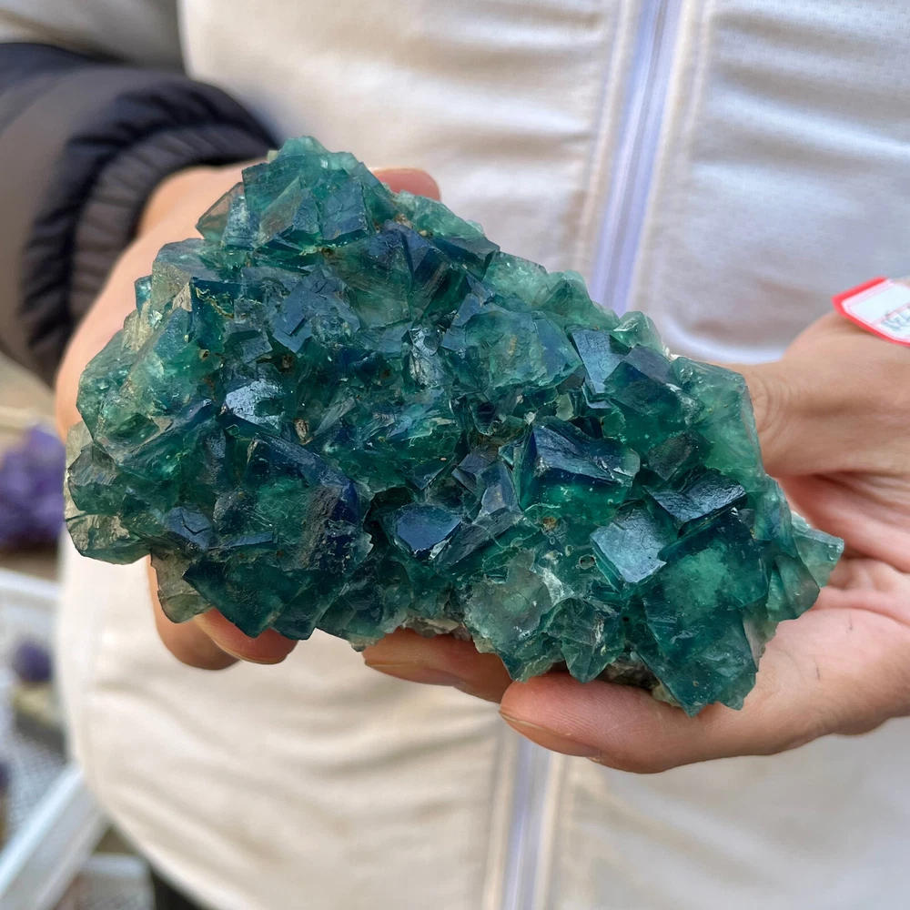 1.3LB Natural Green Fluorite Cube Quartz Crystal Cluster Mineral Specimen