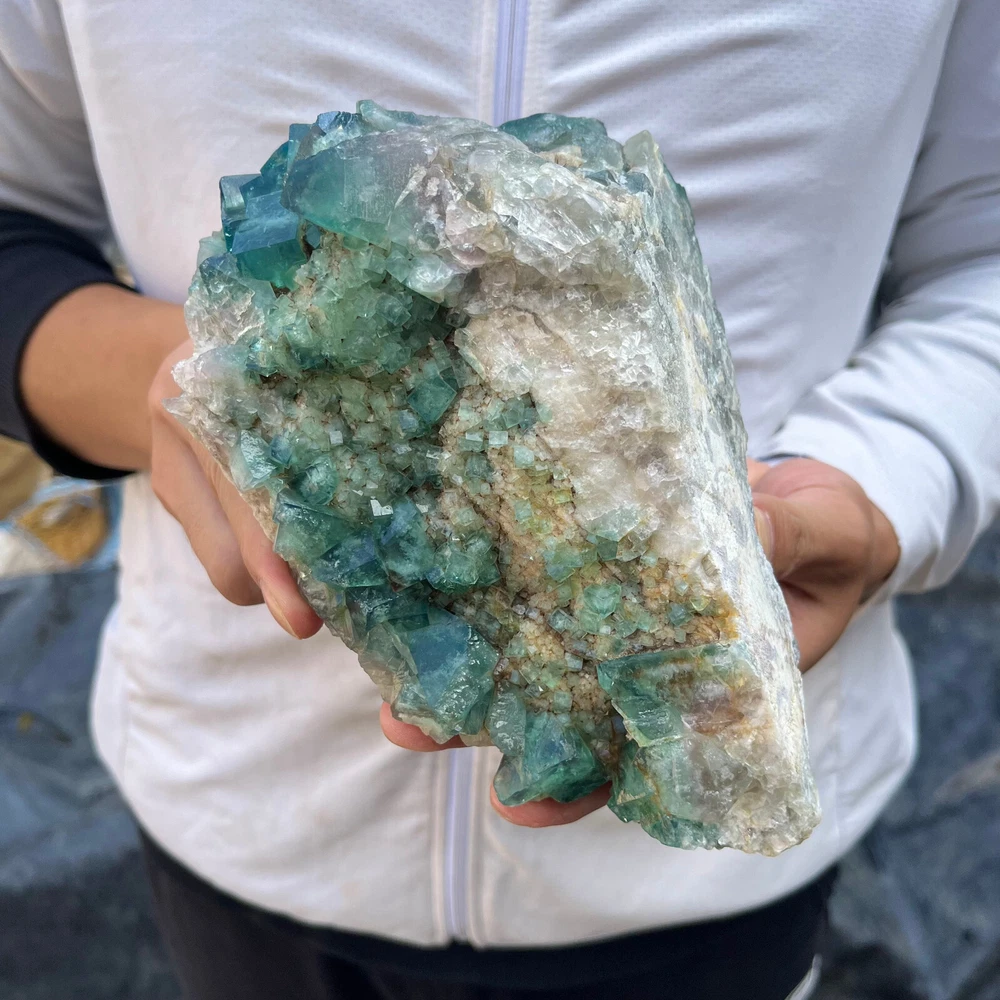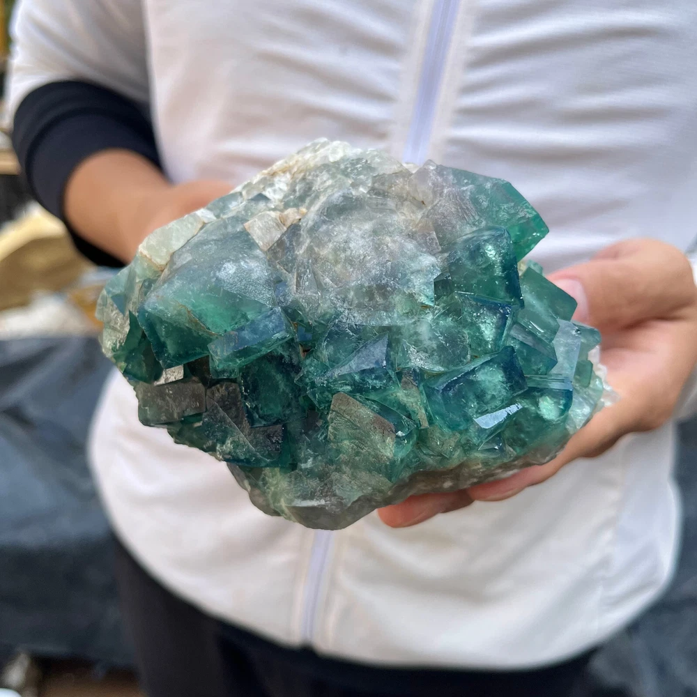 $ 52.85LB Natural Green Fluorite Cube Quartz Crystal Cluster Mineral Specimen