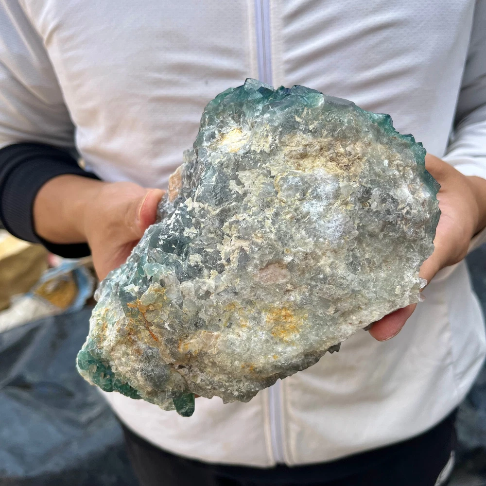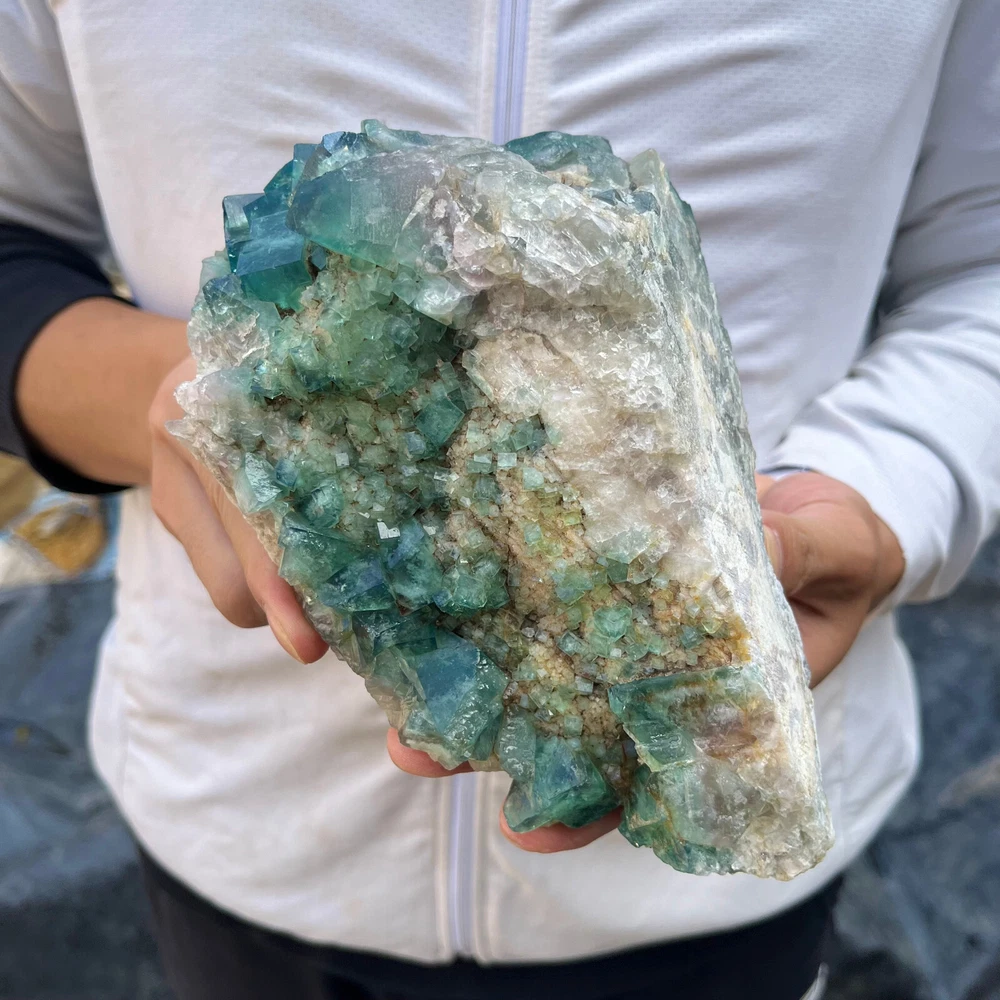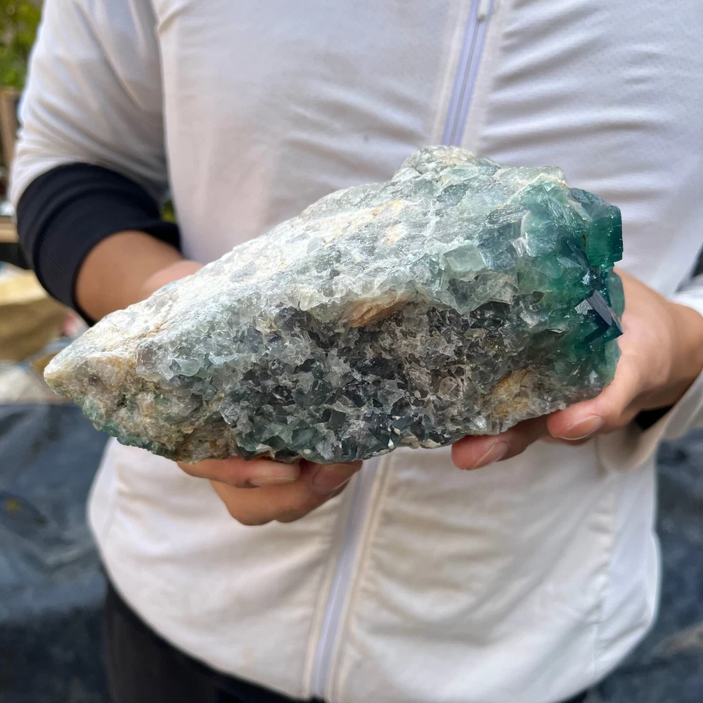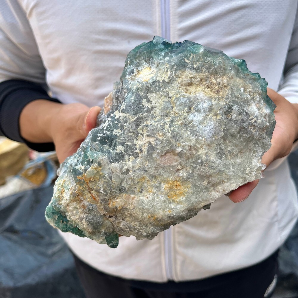 Amazing blue green hues in the fluorite. Item got here super quickly and it was wrapped completely in bubble wrap and tape. It looks exactly like the picture. It’s a solid chonk of a rock with interesting white flecks of crystal on the bottom. A+ transaction!!!