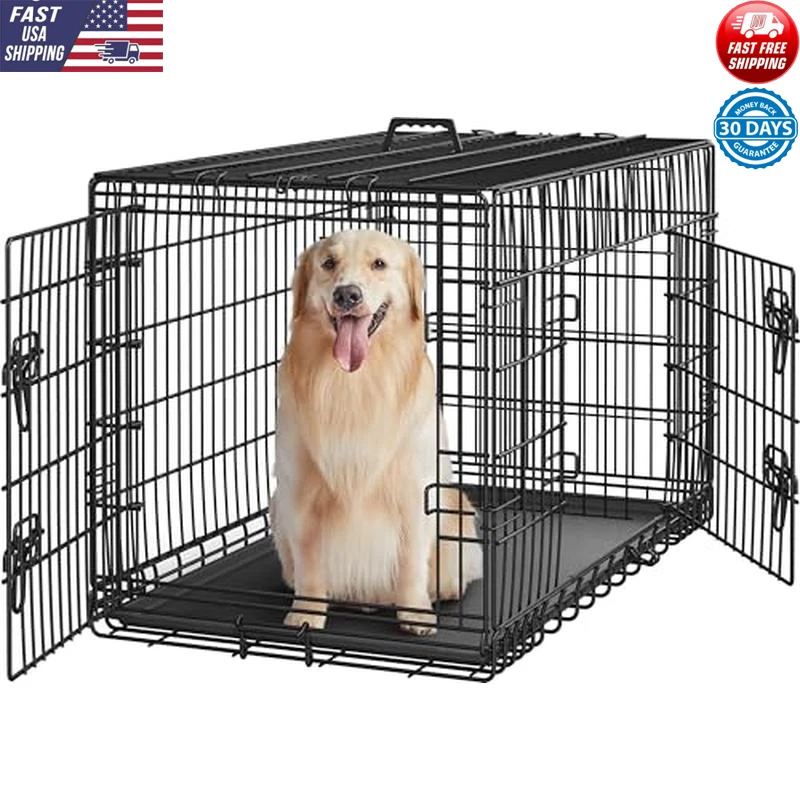 You may also like Medium Dog Crate Folding Metal Divider Secure Pet Home Portable Leak-proof Tray 55.85 USD 58.79 USD Free shipping 5% off About this item Versatile Dog Crate for All Stages: From playful puppies to adult dogs, this dog crate with divider adapts to every stage. Whether teaching your puppy good potty habits or helping them create a cozy, designated sleeping area, this adjustable divider helps tailor the space to ensure comfort and convenience Portable & Collapsible Dog Crate: With its convenient buckle setup and a detachable handle, this 42″ dog travel crate can be easily folded down to a compact size of 43″ L × 24″ W × 4″ H. This dog cage is perfect for easy carrying during trips or camping and can be conveniently stored under your bed, sofa, or in tight spaces when not in use Perfect Fit for Medium-Sized to Large Dogs: Measuring 42″ L × 29″ W × 31. 5″ H, this indoor dog crate is designed just right for medium-sized to large dogs weighing between 70 and 90 lbs. Ideal for breeds like Labradors, Golden Retrievers, and Border Collies, our dog kennel provides a cozy and secure space for your little companion Robust & Secure: Made from powder-coated metal wires with rounded edges, this black dog crate ensures durability and safety. Its waterproof, pull-out tray simplifies maintenance, and the double-lock design of this double door dog crate furniture keeps your clever escape artist safely inside Optimal Bar Spacing and Easy Maintenance: This metal wire dog crate boasts an ideal bar spacing of 1. 3″, ensuring both security and visibility to the external environment. It helps reduce separation anxiety by maintaining a connection to their surroundings. In addition, it features a pull-out leak-proof tray with locking buckles, making maintenance a breeze Brand:Yaheetech Target Species:Dog Product Dimensions:42"L x 24"W x 26"H Gap Size:1. 3 Inches Material:Plastic, Metal You may also like Ice Crushed Blender W/ Glass Jar 14 Functions Smoothies Shakes Easy Clean New 45.59 USD 47.99 USD Free shipping 5% off 1080p Indoor Outdoor PTZ Smart Security Camera 2-Way Audio Color Night Vision US 68.33 USD 71.93 USD Free shipping 5% off Multi Cooker Rice Maker 9 Programs Fuzzy Logic Steam Soup Easy Clean 8 Cups New 56.99 USD 59.99 USD Free shipping 5% off Extra-wide Metal Vanity Bench Padded Seat Durable Bathroom Stool 250lbs Limit US 86.53 USD 91.08 USD Free shipping 5% off 4PCS Leather Travel Duffel Bag W/ Shoe Compartment Gym Overnight Carry On New 71.99 USD Free shipping 7.5ft Patio Umbrella Outdoor Market Umbrella Crank Tilt UV Water Resistant New 41.87 USD 44.07 USD Free shipping 5% off Digital Slow Cooker 4 Quart Ceramic Crock 3 Heat Settings Dishwasher Safe New 54.03 USD 56.87 USD Free shipping 5% off Electric Spin Scrubber Waterproof Cleaning Brush Long Handle Dual Speed Heads US 44.16 USD 46.48 USD Free shipping 5% off Under Bed Storage Bins W/ Wheels 2Pack Rolling Organizers Durable 300D Fabric US 51.59 USD Free shipping 6 Qt Plastic Storage Bins W/ Lids Stackable Organizers Durable Secure Buckle New 41.05 USD 43.21 USD Free shipping 5% off Emergency Kit 4 Person 72 Hour Survival Backpack First Aid Food Water Supplies 75.76 USD 79.75 USD Free shipping 5% off 20in Lightweight Hardside Spinner Luggage 4-Wheel Travel Carry On Organizer New 91.77 USD 96.6 USD Free shipping 5% off