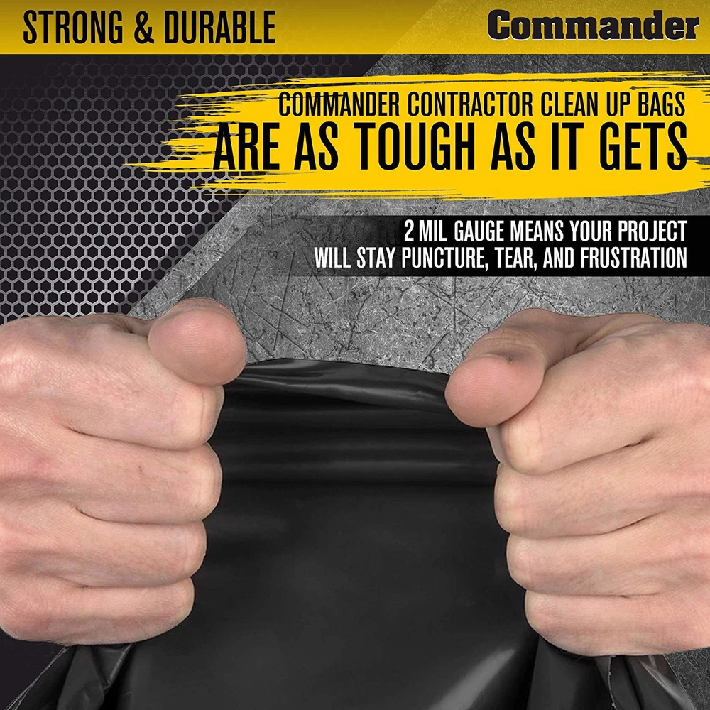 42 Gallon 2 MIL Black Heavy Duty Trash Bags - 34" x 38" - Pack of 28 - For Home, Kitchen, Lawn, Outdoor, Construction, & Contractor. Frustration Free - 42 Gallon contractor trash bags are as tough as it gets. 2 Mil thick gauge means your project will stay puncture, tear, leak and frustration free.