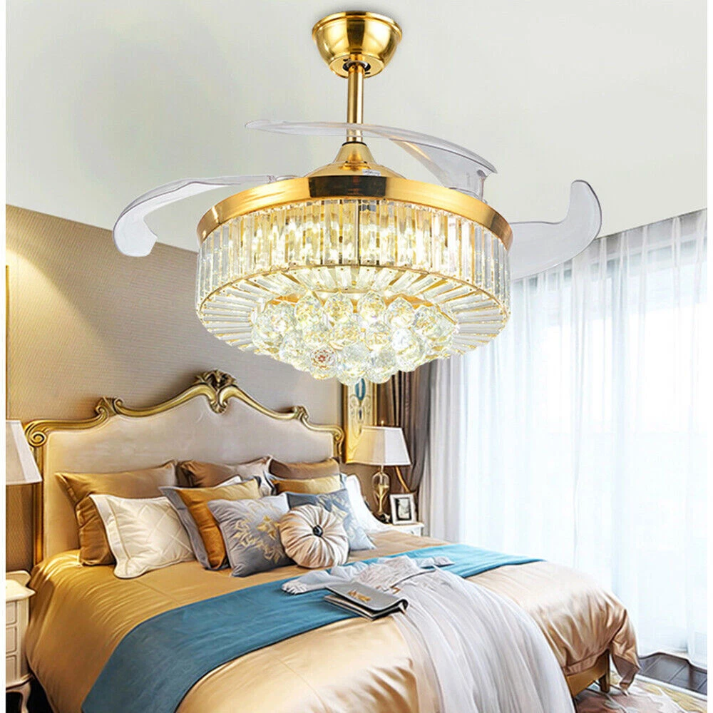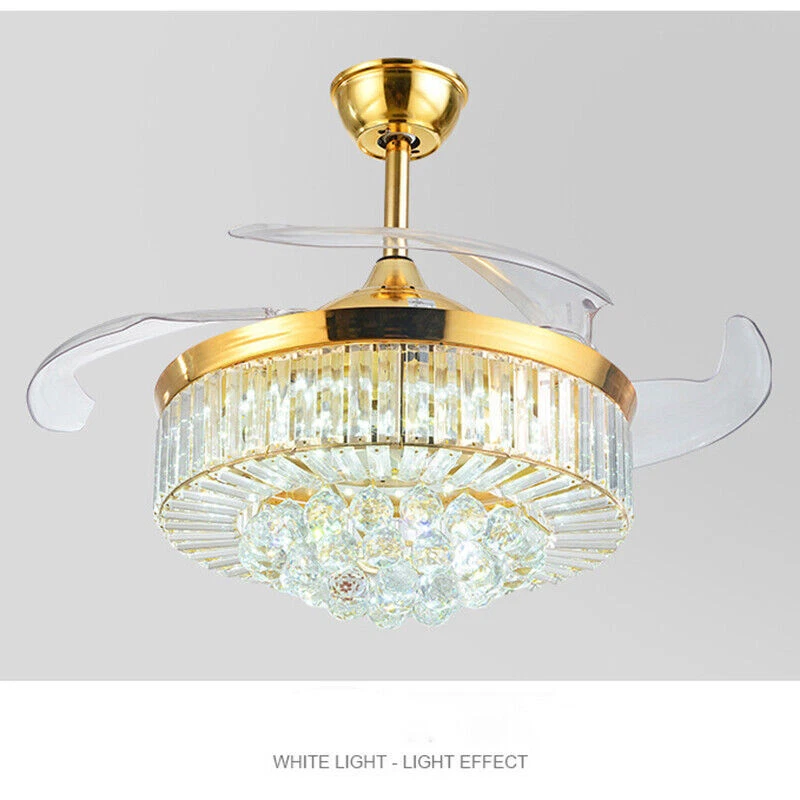 42" Invisible LED Ceiling Fan Light Crystal Retractable Chandelier Lamp W/Remote 42" Invisible LED Ceiling Fan Light Crystal Retractable Chandelier Lamp W/Remote Color:Rose Gold This modern ceiling fan with lights is a combination of ceiling fan and crystal chandelier: ★As for a ceiling fan, it has 4 retractable blades that can stretch out and put inside automatically when turned on and off. ★That means, when turned off, the blades will put inside and become 'invisible', totally a chandelier with crystal; ★When turned on, the blades will stretch out, and transfer to a traditional ceiling fan with lights. ★This chandelier fan is controlled by remote control, ceiling fan speed and LED light can be controlled separately by a single remote control. Fan Chandelier Features: ♥Pendant Lights Type: Crystal Pendant Lights ♥Material: Stainless Steel+k9 crystal+ABS fan ♥Size: 42 inches ♥Color: Gold/Rose Gold ♥Style: modern ♥Number of Blades: 4 ♥Lighting Features: dimmable, fan light ♥Application Type: Indoor ♥Light Bulb Type: LED ♥Number of lamps: 10 ♥Power: 41W (inclusive) -50W (including) ♥Applicable Places: living room/bedroom/kitchen/office and restaurant ♥Voltage: 110V Please Note: ▲The actual color of the chandelier may be deviated due to the color of the display and the angle of the picture. ▲Please receive the actual color of the goods as standard, thank you for your understanding and support. Payment Delivery details Terms of sales About us Contact us Payment We accept ebay payment 。 Fees such as import duties, taxes are not included in the item price or shipping costs. These charges are the buyer's responsibility. Delivery details Shipping: 2-9 working days to: USA Terms of sales We maintain high standards of excellence and strive for hundred percent customer satisfaction. Feedback is very important to us. We hope that you contact us immediately before you give neutral or negative feedback, so that we can address your concerns. It is impossible to address issues if we do not know about them! About us Your satis faction is our ultimate goal. We work hard to earn your trust and future business. Our certified technicians have tested each item before shipping. The unit comes with 1 year limited warranty on all manufacturing defects. a) If you receive a defective item, you may return it or ask for a discount. Please contact us within 14 days after you receive the package. b) What you returned must be intact and in its original packaging as re? u. Customer is responsible for shipping costs of the returned item. c) We will cover the cost of shipping back t with the shipping rate indicated in the registration page. We will send you a new unit or refund the full payment you paid. Thank you. Contact us Business Hour Business Hour: Monday To Friday: 8:30 AM to 5:00 PM (Beijing China time) Due to time zones, our reply to your questions may not be immediately. But within above working time, we will reply your email within 24 hours. If it's non-workdays, please kindly be patient and wait till Monday. Please contact us with ebay message. Please feel free to contact us if you have any questions. Monday To Friday: 8:30 AM to 5:00 PM (Beijing China time) Due to time zones, our reply to your questions may not be immediately. But within above working time, we will reply your email within 24 hours. If it's non-workdays, please kindly be patient and wait till Monday. Please contact us with ebay message. Please feel free to contact us if you have any questions. On Feb 10, 2025 at 23:24:11 PST, seller added the following information: