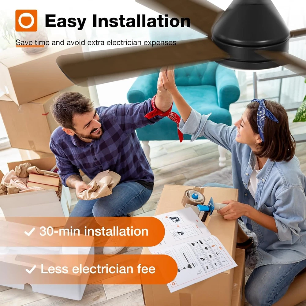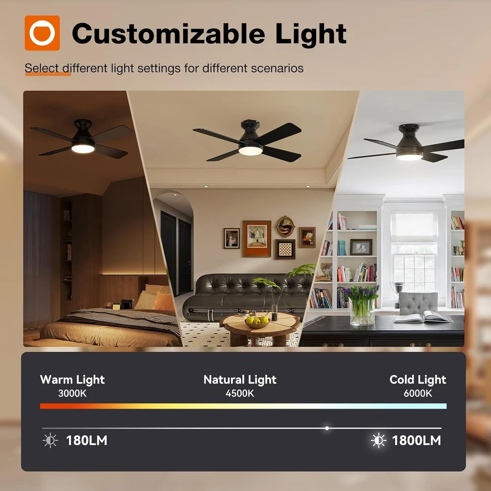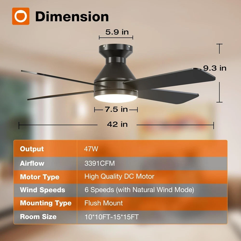 Store New Arrivals Add to Favorite View Feedback Contact Ceiling Fans with Lights, 42 Inch Low Profile Ceiling Fan with Light and Remote Control, Flush Mount, Reversible, 3CCT Dimmable 4 Blades Black Small Ceiling Fan for Bedroom Indoor/Outdoor Use Description Item model number KFM42ABS4B01R1 Mounting Type Flush Mount Controller Type Remote Control Style Modern Power Source ac Material Engineered Wood, Metal Number of Speeds 6 Control Method Remote Theme Modern Room Type Kids Room, Kitchen, Bedroom, Living Room, Dining Room Number of Power Levels 6 Switch Type remote Product Dimensions 42"D x 42"W x 9.3"H Efficiency High Model Name KFM42ABS4B01R1 Collection Name Ceiling Fans Number of Blades 4 Indoor/Outdoor Usage Outdoor, Indoor Light Type LED Country of Origin China Item Weight 10.25 pounds Special Feature Remote Controlled, Reversible, 6 Speeds, Timer, Customizable Light Included Components Ceiling Fan, Mounting Hardware, Remote, Replacable LED Light Kit Color Black Wattage 45 watts Is Cordless? No Voltage 120 Volts Recommended Uses For Product Cooling, Air Circulation Blade Material Engineered Wood Electric fan design Ceiling Fan Size 42 inch Ceiling Fan with Light: Bring more than just wind and light, but comfort! addlon modern ceiling fan, with double-sided fan blade design, it can be the perfect decoration in your home while delivering enough airflow and light. Our 42 inch small ceiling fan with light remote control has A energy efficiency rating, which can avoid 80% of electricity loss compared with traditional fans. Ceiling Fan with Remote Control: Through the remote control, you can turn the fan on/off, adjust wind speeds, as well as realize the function of 1/2/4 hours timer off, at the same time, you can also realize the forward and reverse rotation control directly on the remote control. In addition, our fan has a memory function, if you turn off the fan through the wall switch, the next time you turn it on, the fan will still maintain the state before the last time it was turned off. Flush Mount Ceiling Fan: Try install it youself! We provide very detailed instructions and installation videos to help you complete the installation. Suitable for farmhouse, living room, bedroom, office, study, kitchen or other small indoor spaces. Besides, this is also a outdoor ceiling fan for patio, breezeways, gazebos, pergolas and other outdoor spaces. (Not to be exposed directly to rain) Super Quiet Experience: Enjoy the wind, but keep the noise out! This ceiling fan is designed for light sleepers, brings you comfortable sleeping with a quiet living environment. The volume is low to 35dB when the fan is running, like the sound of falling leaves, or like a butterfly flaps its wings(30dB). It is more suitable for families with babies or elders. Reversible DC Motor: The high-quality & high-speed motor brings a perfect wind experience. The wind speed can be adjusted in 6 gears, you can choose between comfortable wind, natural wind and strong wind. Reversible dual-direction fan improves air circulation to keep you warm in winter and cool in summer. Our fan blades are double sided in different colors, one side is black and the other side is dark wood grain. Choose the fan blade color that best fits your home decor! Customizable Light: Depending on your need for the space, the light output you need can vary. If you’re having a cozy night in, you may need less light, while activities like family game night or homework time may need more. Our smart ceiling fans with lights are dimmable (10%-100%) for allowing you to find the ideal light for every occasion. At the same time, you can also select from 3 color temperature: 3000K-warm white, 4000K-nature white, 6000K- cold white. 100% Satisfaction: We offer up to 120 months warranty on the motor and 2 years on the rest of the fan. We offer 24 hour customer support, please feel free to with any questions you may have during installation or use and we will be happy to assist you. Product Description 1 6 Speeds Adjustable 2 Reversible 3 Super Quiet 4 Timer Setting 1 Installation 2 Customizable Light 3 Dimensions 1 DC Motor 2 Blades 3 Replaceable LED Light Can the fan and the light be controlled separately with individual wall switches? We made of DC motor and is powered by a controller for both the fan and the light. And it is not possible to independently control the light/fan through wall switches. (NOTE that you can't connect the dimmer switch or the fan's gear switch) Can I operate 2 or more fans with 1 remote control? Yes! One remote control can be easily paired with multiple devices by following the steps in the user manual. ABOUT US We offer the best prices around on high quality products. Our E-store includes media such as books, movies, music and games while offering electronics, toys, sporting apparel, clothing, tools, general home, garden items and more. SHIPPING We are always working hard to ensure your package arrives as soon as possible. Please understand that some factors like weather, high postal traffic, and the performance of shipping companies are outside of our control. We offer free shipping to the lower 48 states and ship within 2 business days of payment, usually sooner. We do not accept P.O. Boxes. Please provide a physical address. For shipping outside of the continental USA, we only use eBay's Global Shipping Program.The item is shipped to KY and then sent to the rest of the world. International customers are responsible for all duties and taxes. Continue to check out in order to calculate costs for shipping the item to your country. Messages regarding eBay's Global Shipping Program MUST be directed at eBay EXCLUSIVELY. RETURNS We offer a 30-Day Return Policy on items which you are not completely satisfied with. You have the option for a full-refund or an exchange of the item. No returns are available on items shipped outside of the USA. PAYMENT We accept PayPal. CONTACT US This page content is yet to come Please ad us to your f