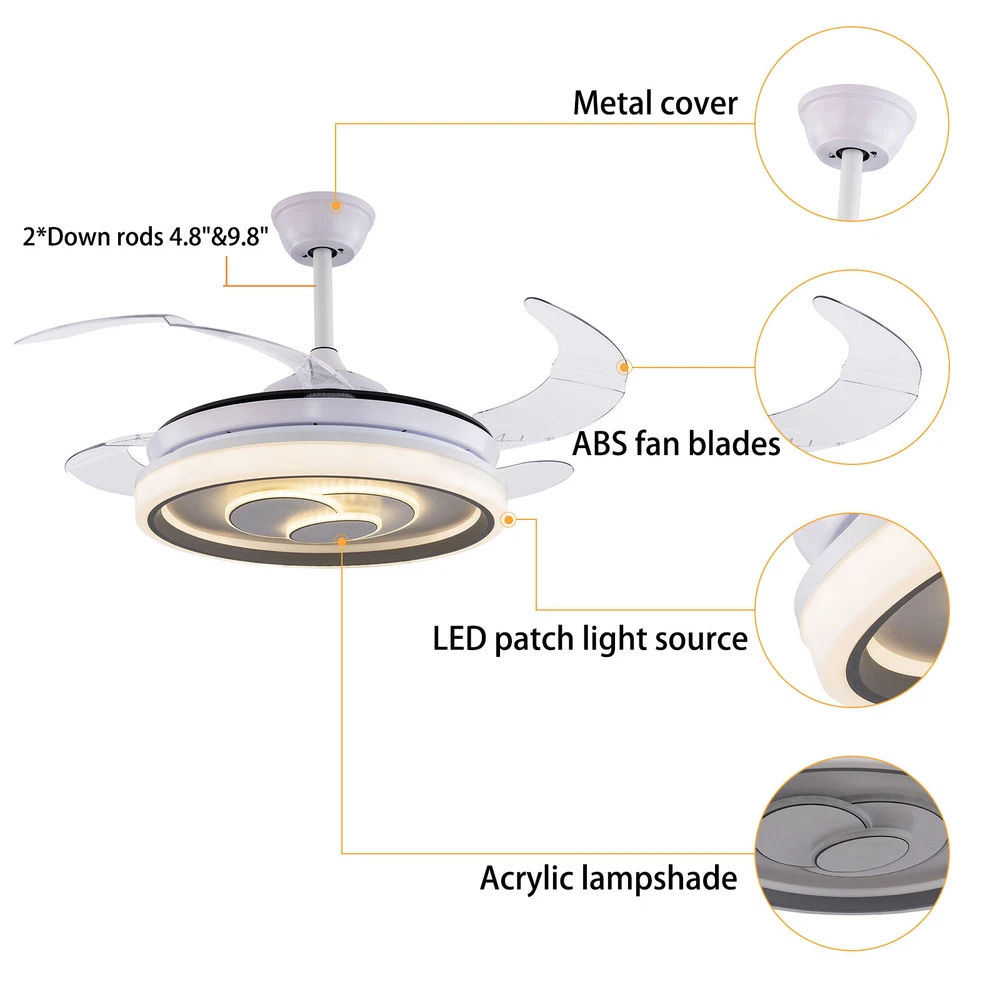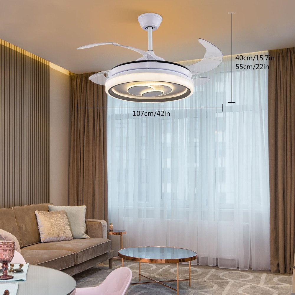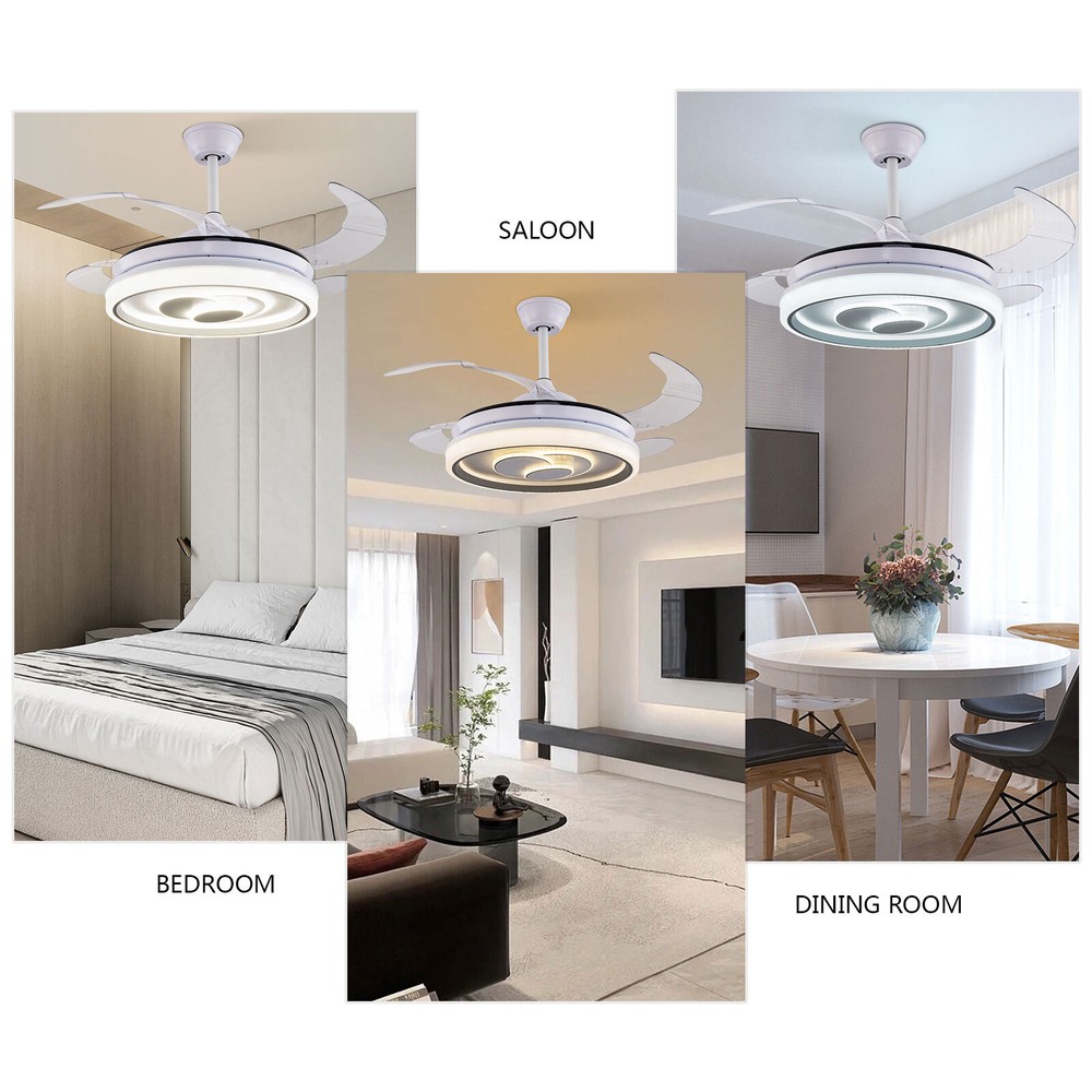 This ceiling fan light is a game-changer! The retractable design and three color options create the perfect ambiance for any mood. It’s super quiet even on the highest speed and the dimmable lights add a cozy touch. Installation was a breeze, and the remote makes adjusting settings effortless. The finish is sleek and modern, blending beautifully with any decor. Love how durable and high-quality it feels—totally worth it for both style and function!