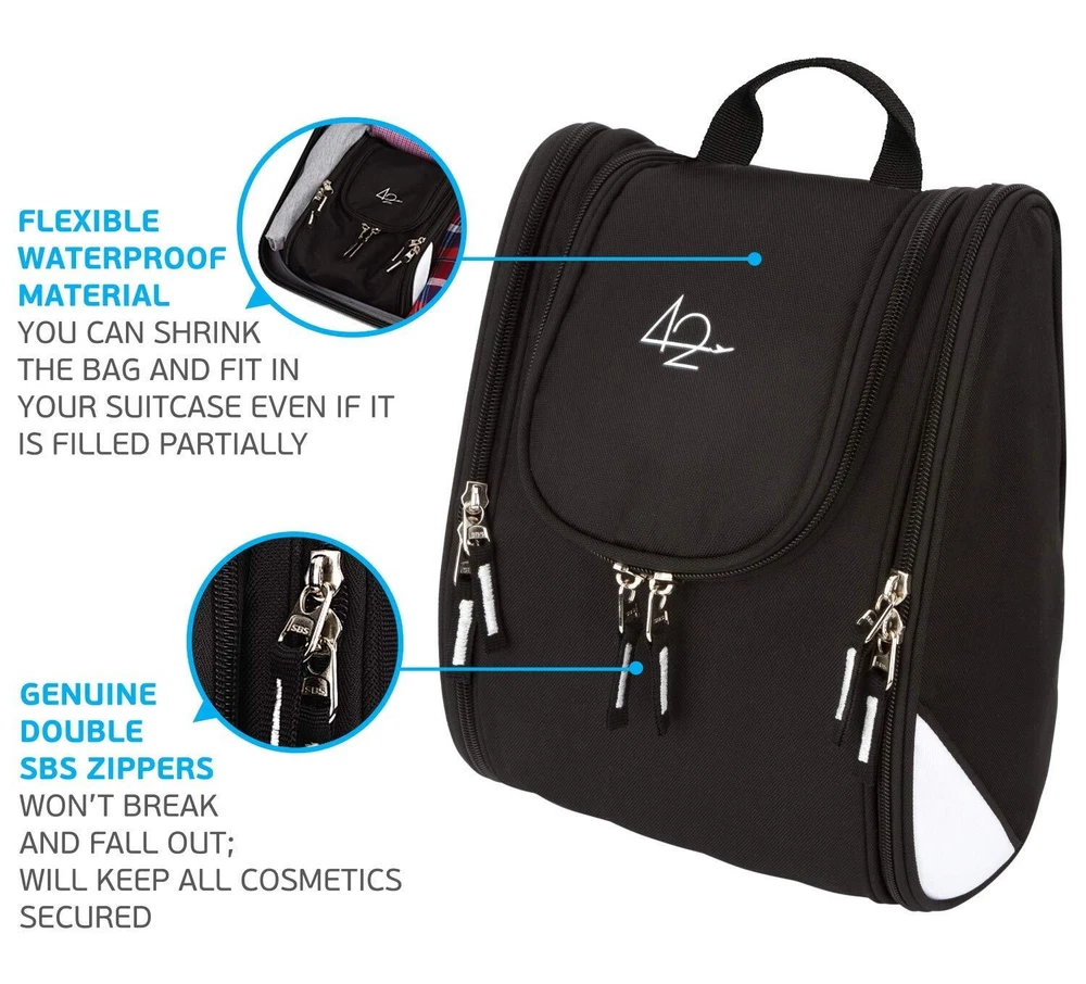 42 Travel Hanging Toiletry Bag – Large Kit Organizer for Men & Women – Spacious & Compact, 17 Compartments for all you need - Strong Zippers, Sturdy Hook, Water Resistant useful dividers and elastic loops in each pocket DISCLAIMER. TOILETRY BAG COMES EMPTY, without anything included. Accessories are shown to demonstrate the capacity. SHIPPING Domestic Buyers - We have confidence in our products, but if you are not fully satisfied please contact us within 30 days of purchase and you will get full refund. - We ship within 3 business days of payment, usually sooner - We offer FREE shipping on all orders! - We only ship to the lower 48 states, no APO/FPO addresses or PO Boxes allowed International buyers – please note: Import duties, taxes, and charges aren't included in the item price or postage cost. These charges are the buyer's responsibility. - Please check with your country's customs office to determine what these additional costs will be prior to bidding or buying. * Order Cancellation Policy ** You can return a product for up to 30 days from the date you purchased it. 1. The seller reserves the right to cancel the special case only due to eBay cancellation fee. 2. The decision of seller is the final. 3. The seller will respond to the cancellation request within 2 business days. Please wait for the result of cancellation. 4. In case the cancellation is not completed by some reasons, the buyer can follow the options below to get the refund. 4.1 The buyer can reject the item when it arrives. 4.2 The buyer can send the item back to the seller within 30 days If the buyer receives item (USA Shipment ONLY). The seller will provide the FREE return label to the buyer when the buyer opens " Return Item" case on eBay by using the reason as "Change my mind" ONLY. 5. When buyer has placed the order. The order will be processed and completed by automatic warehouse system within 5 minutes. In case that buyer sends the cancellation request after 5 minutes of placing the order, the request will be rejected. **Sending direct message to cancel the order is not allowed for every case.* Return Policy For the return case - If buyer would like to return the items for refund or replacement, please CONTACT SELLER to receive the free return label from seller. The refund or replacement will be processed with the tracking number of return label which is provided by seller only. The other ways of return which are not approved by seller will not be processed for the refund or replacement.