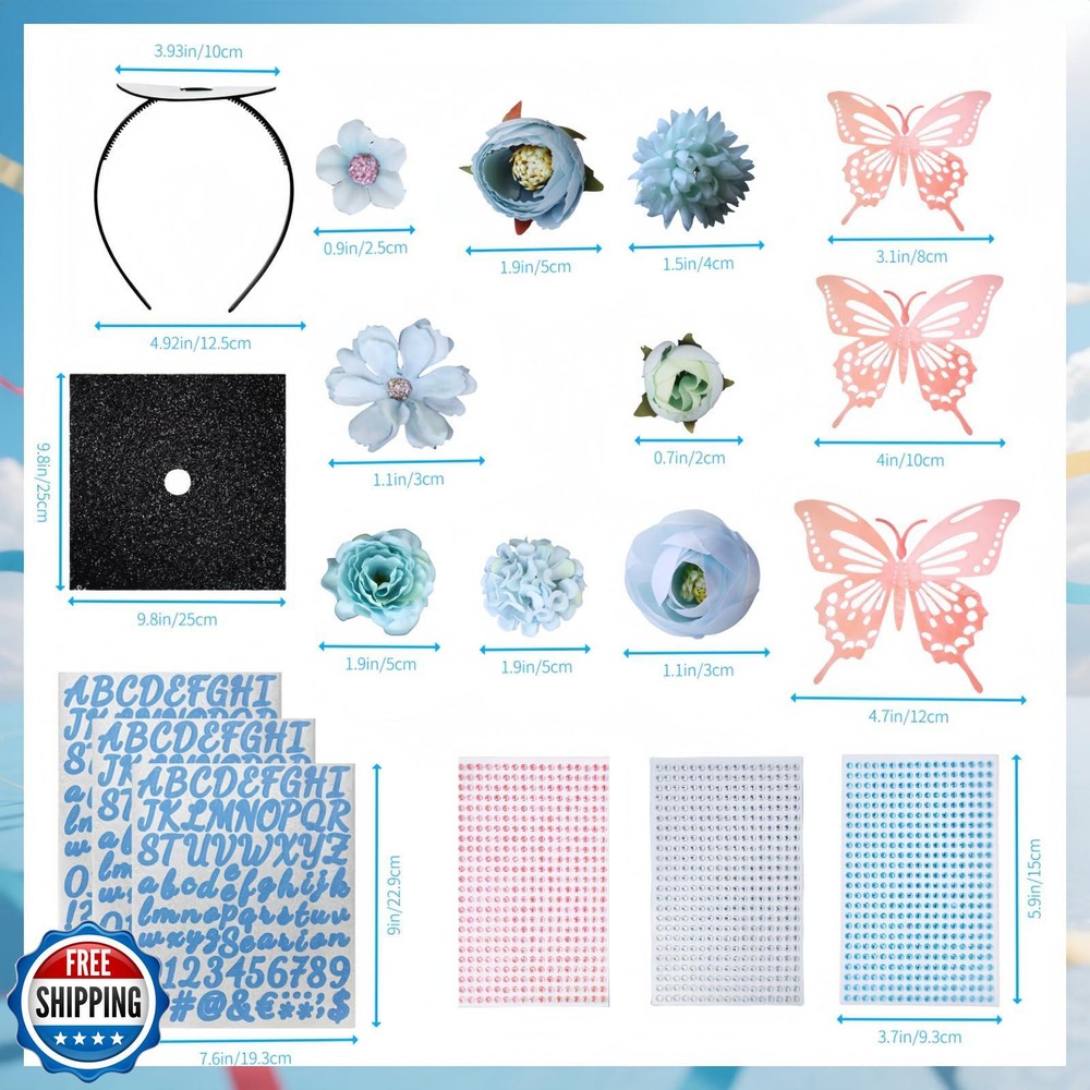 42 Pcs Graduation Cap Decorations Kit, Grad Cap Decorations Included Graduation Cap Headband Faux Flowers 3D Butterfly Adhesive Rhinestones Alphabet Letter Stickers for Grad Party Decor (Blue) Features đăGrad Cap Topper KităThe graduation cap decorations kit has everything you need: 21 lifelike faux flower toppers, a trendy grad cap headband, and 12 floating 3D butterflies. Youâll also get 3 mix-and-match letter/number stickers, three sparkling rhinestone stickers (pink, blue, and clear), plus a premium glitter cardstock sheet to make your design pop! (Note: Hot glue not included in the set) đăKeeps Hairstyle IntactăWith our sturdy graduation cap headband, say goodbye to messed up hairstyles on your graduation day. Maintain your perfect look throughout your memorable day with our firm and secure graduation cap. đăSimple and ConvenientăYou can use letter stickers and rhinestone stickers to spell out names or blessings on the graduation cap, and then use hot glue ( not included) to attach the flowers and butterflies, and you will finally get a unique and exclusive graduation cap. đăQuality MaterialăThe artificial flowers and 3D butterflies in the graduation cap decorations kit are made of reliable and durable materials, while the rhinestone stickers are crafted from plastic. They can be stably fixed on the graduation cap to keep it beautiful on your graduation day and after. đăWide ApplicationsăGraduation cap decorations can not only decorate graduation caps at graduation ceremonies, but also be applied to decorate gift boxes, walls, photo frames and other crafts. Shipping Free & Fast Shipping: We offer free shipping to most of the USA with a normal delivery time of 3-7 days. However, due to the current situation, additional delivery time (up to 3 weeks) may be required for some items. Alternative Carriers: We may use alternative carriers (e.g., USPS, FedEx, UPS) to ensure your package arrives safely and on time. Due to the use of multiple carriers, we are unable to provide a tracking number automatically. Handling Time: Orders are processed and shipped within 1-2 business days of receiving cleared payment. Shipping Restrictions: Shipping to Alaska, Hawaii, Puerto Rico, Guam, and other US territories may incur shipping charges or delivery restrictions. Please contact us before ordering, or your order can be refunded/cancelled. State Restrictions: Certain items may not be shipped to California due to state regulations. Contact for Tracking Updates: If you require tracking updates or have any concerns about the delivery of your order, please feel free to contact us, and we will be happy to assist you. Return Policy 30-Day Hassle-Free Returns: If you are not completely satisfied with your purchase, you can return the item for free within 30 days of receiving it for a full refund or exchange. Easy Return Process: Contact us, and we will provide you with a prepaid return shipping label and detailed instructions. No Restocking Fee: There are no restocking fees for returns. However, the buyer is responsible for return shipping costs if the return is not due to a seller"s error. Refund Processing: Refunds will be processed within 1 business day of receiving the returned item in its original condition. Feedback Your feedback is extremely important to us. We strive to provide the best products and customer service possible. If you are satisfied with your purchase, please take a moment to leave us a positive review. If you have any concerns or issues with your order, please contact us before leaving negative feedback. We are committed to resolving any problems and ensuring your satisfaction. Contact Us If you have any questions or concerns, please feel free to reach out to our customer support team. You can contact us through the eBay messaging system. We are available Monday to Friday, 9:00 am to 5:00 pm EST, and we will do our best to respond to your inquiry within 24 hours. Thank you for supporting our small family business!
