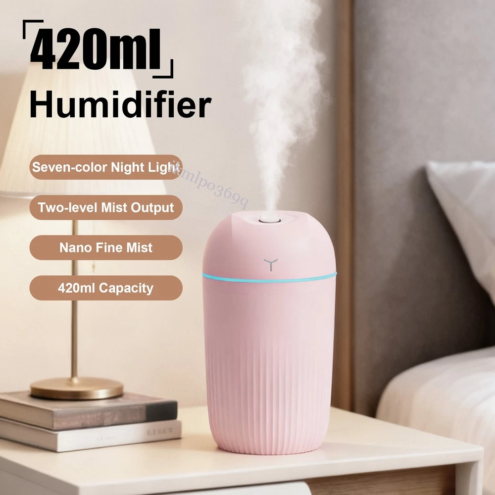 USB Cool Mist Humidifier 420ml Portable Aroma Oil Diffuser Led For Car Home