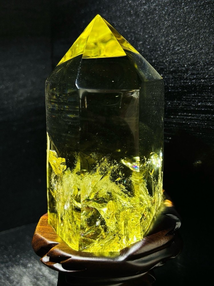 4.29LB Natural Citrine Quartz Obelisk Wand with Stand for Reiki Healing