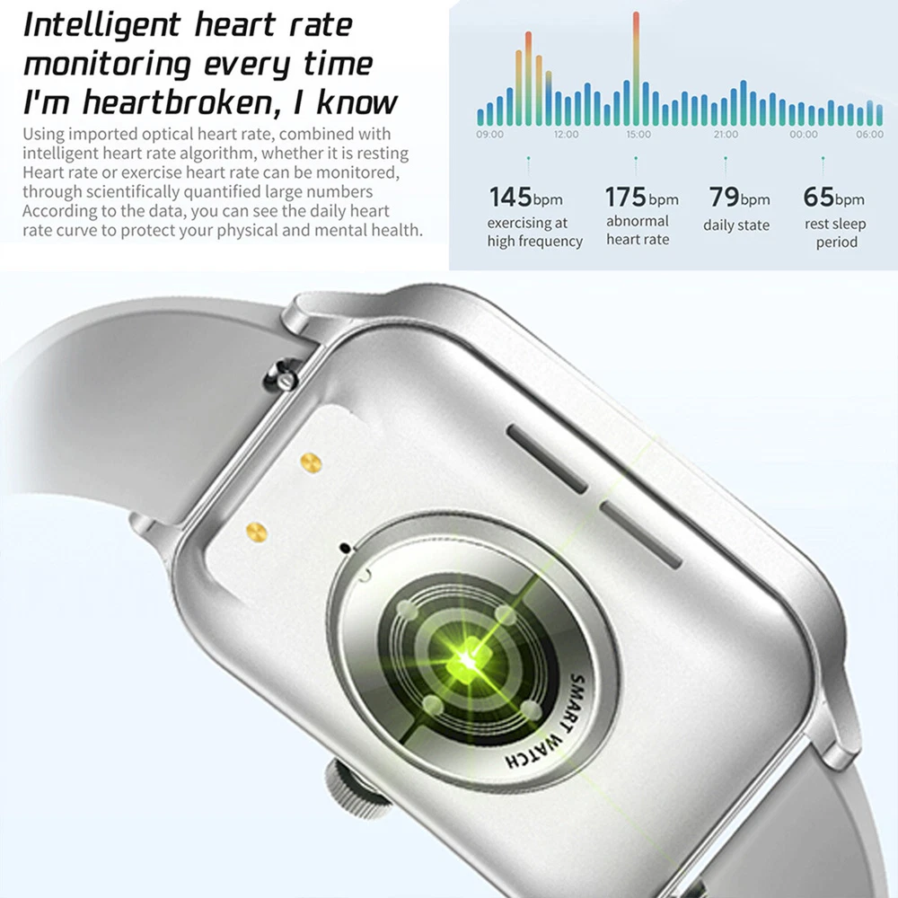 All-day Health Monitoring Fitness Tracker: Our smart watch is equipped with BIO3.0 PPG high precision optical sensor and powerful sensor engine, providing 24 hours heart rate monitoring, SpO2 measurement, blood pressure measurement and sleep quality detection (deep sleep, light sleep , rapid eye movement time), all-round presentation of your body's health indicators in the form of data. IP67 waterproof protects the watch from damage caused by water and sweat during your daily use and workouts. Long Battery Life: The fitness watch can last up to 7 days after charging for 2 hours.