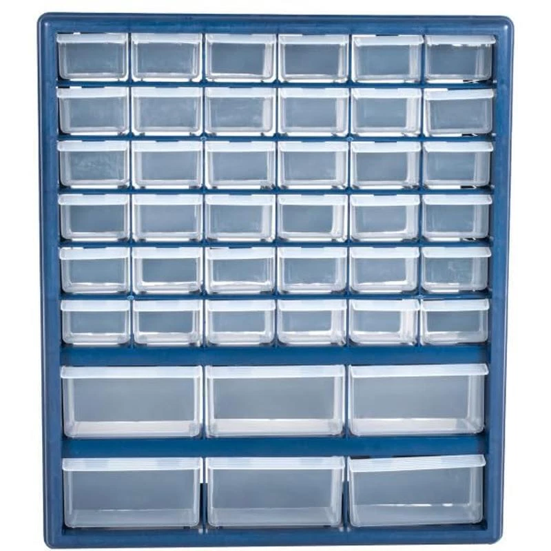 You may also like 28 Qt Clear Stackable Storage Box Under Bed Household Organization 8.71 USD 9.17 USD Free shipping 5% off 2 Pack Portable Plastic File Box Set of 4 Organized Storage File Bin Stackable 89.59 USD 94.3 USD Free shipping 5% off Solid Wood Rolling Cart W/ 6 Drawers Crafting Sewing Home Office Storage Durable 77.32 USD 81.39 USD Free shipping 5% off Durable Plastic Storage Cabinet W/ Adjustable Shelves Double Doors BPA Free New 228.94 USD 240.99 USD Free shipping 5% off 22 Gallon Rolling Storage Bin Organizer Stackable Locking Lid Durable Wheels New 44.71 USD Free shipping Durable Plastic Utility Storage Tote Stacking Bins Garage Organization 6 Pack US 71.98 USD Free shipping New Wall Mount Storage Organizer Bins 30 Compartment Tools Crafts Accessories 30.07 USD Free shipping 3 Drawer Desktop Organizer Set of 2 Stackable Storage Solution Home Office New 18.4 USD 19.37 USD Free shipping 5% off 30 Gallon Rolling Storage Bin Organizer W/ Snap Lid & Wheels Home Garage Durable 49.15 USD Free shipping About this item IMPACT RESISTANT MATERIAL – Constructed from durable polypropylene, these storage drawers are made to last, and difficult to damage or break. The strong, see-through clear plastic drawers feature finger grip drawer pulls for easy opening. DESKTOP OR WALL MOUNTABLE – The storage organizer is portable and can be placed on any desk, table, or work surface. The sturdy plastic frame features keyholes on the back for convenient wall mounting in a closet, in a classroom, workshop, or shed. MULTI-PURPOSE – With 42 bins (6 large, 36 small), this cabinet is ideal for storing and organizing everything from fishing tackle, small business supplies, hardware like nuts, screws, and bolts, to crafting materials, beads, makeup, or jewelry. VERSATILE – These organizers are perfect for any area of the house! Get one for your garage, office, kitchen, bathroom, or bedroom. It’s the perfect organizational solution to keep accessories, pieces, or parts neatly stored and tidy. PRODUCT DETAILS – Material: Polypropylene. Overall Dimensions: (H)17” x (W) 14. 5” x (D) 5. 25”; Large Drawer Dimensions: (D)5. 25” x (W)4. 25” x (H) 2. 25”; Small Drawer Dimensions: (D)5. 25” x (W)2. 25” x (H)2. 25”. › product details Color:Blue Material:Polypropylene Frame Material:Plastic Brand:Stalwart Product Dimensions:6. 3"D x 15. 8"W x 18"H You may also like 28 Qt Clear Stackable Storage Box Under Bed Household Organization 8.71 USD 9.17 USD Free shipping 5% off Galvanized Steel Mailbox Post Kit In Ground Rust Resistant Durable Storage New 46.4 USD 48.84 USD Free shipping 5% off Tiny Tots Brisling Sardines Extra Virgin Olive Oil 6 Pack Seafood Snack New 29.34 USD 30.88 USD Free shipping 5% off Sturdy Brown Resin Planter W/ Drainage Holes Indoor Outdoor Use Plant Care New 28.38 USD Free shipping Irregular Mirror 32"x19.6" Heterotypic Bathroom Mirror Frosted Frameless Black 86.35 USD 90.89 USD Free shipping 5% off 10" Steel Wheel 1/2" Hub 80 lb Load Rating Tiller Ribbed Tread Narrow Hub Wheel 30.41 USD Free shipping Rocking Horse Kids Pony Ride-On Toy Toddler Boys Gift Play Game Sound Home New 49.36 USD Free shipping 32" Bluetooth Soundbar Roku TV Compatible 160W Peak Output Remote Included New 47.19 USD Free shipping 50W RGB Wall Washer Lights 2 Pack Smart Control Stage Lighting Garden Decor New 55.47 USD 58.39 USD Free shipping 5% off Football Snapper Stick Training Tool Offensive Line Response Time Reaction Drill 58.27 USD 61.34 USD Free shipping 5% off Non Slip Chair Cushions Set of 4 Comfort Seat Pads Indoor Use 15"x16" Durable 44.31 USD Free shipping Quick Meal Beef Stroganoff Freeze-Dried Food 2 Servings Camping Backpacking New 16.02 USD 16.86 USD Free shipping 5% off