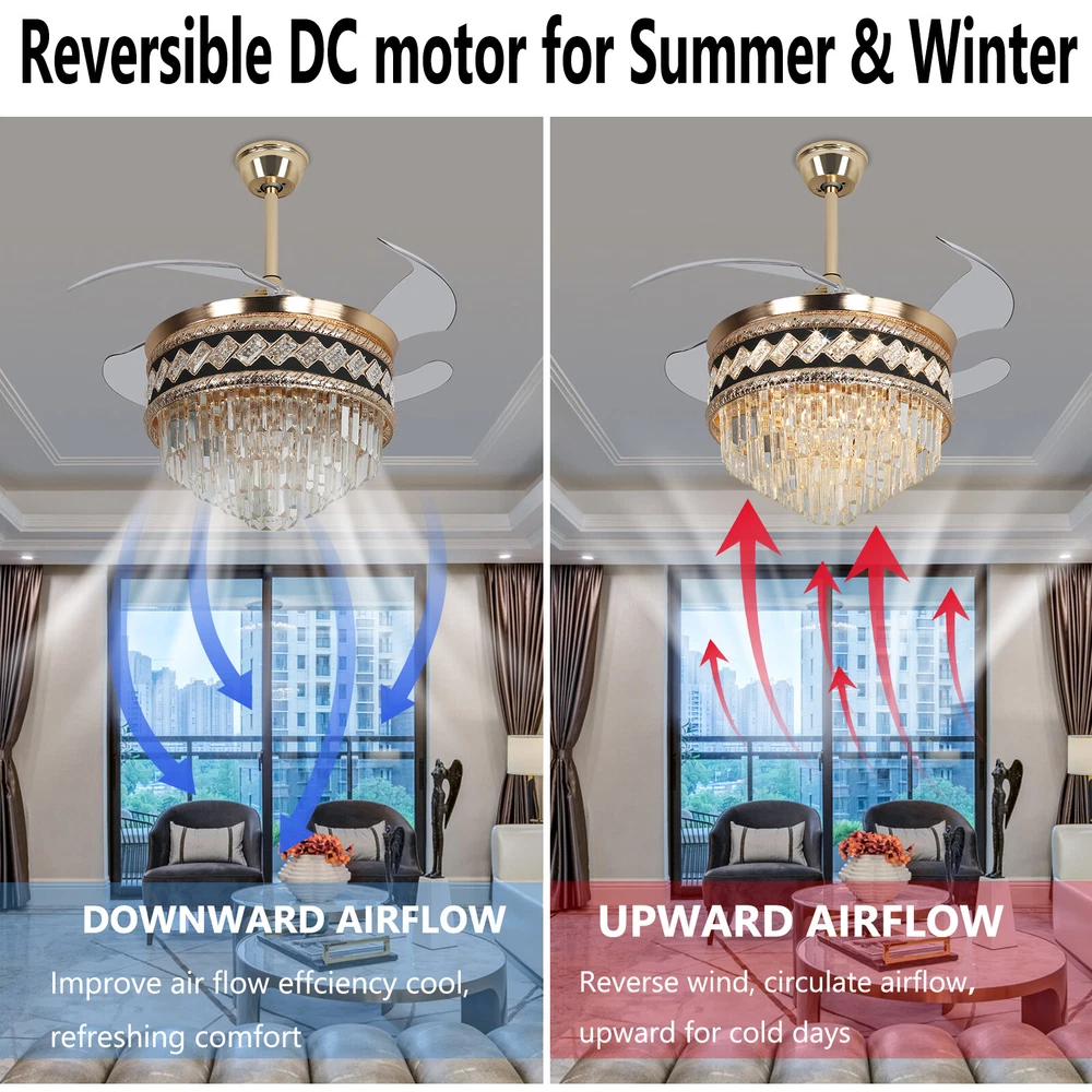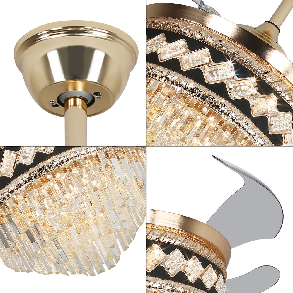 $ 72.99Modern Dimmable LED Ceiling Fan Light with Remote Crystal Chandelier