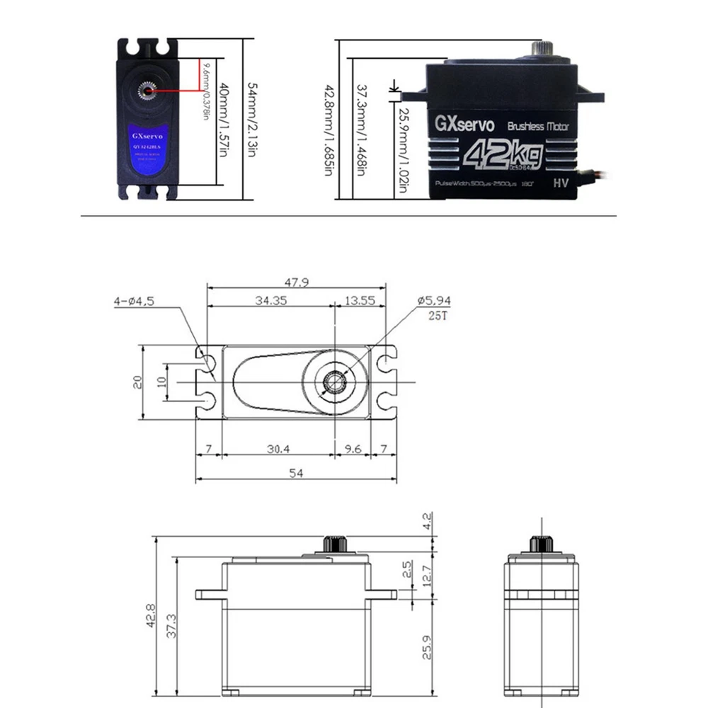 Product Description 42kg Brushless Servo With JR300mm Wire Replacement Parts For RC Car Trucks Features: Equipped with a high-accuracy potentiometer and a high-resolution digital chip, ensuring stability, strong anti-interference, and rapid response for precise and smooth control. Achieve up to 42kg/cm maximum torque, ensuring powerful and reliable performance. With an IP65 waterproof rating, this servo can handle various environments. Its controllable angle range from 0 to 180 degrees guarantees excellent linearity and precise control. Compatible with 1/8, 1/10 trucks, RC cars, robots, boats, and other remote control models, making it perfect for various applications. This digital servo comes with a comprehensive package, including the digital servo, steering gear accessories, and a 25T metal steering gear arm for added convenience and flexibility. Specifications: Operating Voltage: 5-8.4V Temperature: -20C°~+60C° PMW Volts: 3.3-5Vadvised Puise Width Angle: 500-2500us, 180° Dead band: 2usec Signal: Digital Ball Bearing: 2BB Wire length: JR300mm Stall Torque(6V): 30kg.cm Stall Torque(7.4V): 38kg.cm Stall Torque(8.4V): 42kg.cm Operating Speed(6V): 0.118/sec60° Operating Speed(7.4V): 0.092/sec60° Operating Speed(8.4V): 0.085/sec60° Package Includes: 1 x 42kg Brushless Servo 1 x 25T Servo Arm 1 x set of Accessories Shipping Returns Contact Us Payment 1. Items sent from US warehouse. 2.Receiving time = Processing time + Shipping time 3. Processing Time: Around 1-2 business Days 4. Shipping Time: 3-5 business day it may have a little delay during some holiday (such as Christmas),any problem ,please feel free to contact 1. 30 days warranty from the purchased date. Please contact us via email before returning the defective item. 2.Our warranty does not extended to any product that are physically damaged or that are not under normal operating conditions as result of misuse or improper installation on the buyer/user's part. 3.Return items should include the original packaging and all accessories. buyers MUST contact us for the returning address. 4.In all cases, buyers pay shipping fees at their own cost to return products for exchange or refund. We will be responsible for the postage of replacements. Refund will be made upon receipt of the returned item. Pls contact us if you have any problems,we will try our best to solve for you We accept all verified payment from eBay. Shipping 1. Items sent from US warehouse. 2.Receiving time = Processing time + Shipping time 3. Processing Time: Around 1-2 business Days 4. Shipping Time: 3-5 business day it may have a little delay during some holiday (such as Christmas),any problem ,please feel free to contact Returns 1. 30 days warranty from the purchased date. Please contact us via email before returning the defective item. 2.Our warranty does not extended to any product that are physically damaged or that are not under normal operating conditions as result of misuse or improper installation on the buyer/user's part. 3.Return items should include the original packaging and all accessories. buyers MUST contact us for the returning address. 4.In all cases, buyers pay shipping fees at their own cost to return products for exchange or refund. We will be responsible for the postage of replacements. Refund will be made upon receipt of the returned item. Contact Us Pls contact us if you have any problems,we will try our best to solve for you Payment We accept all verified payment from eBay. You may also like Watch Crystal Glass Sapphire Bubble Magnifier Calendar Lens Small Date Window 10.66 USD Quick Genuine Leather Band Strap For Garmin Fenix 7 7X 6 6X 7S 6S Pro 5 5X Plus 14.29 USD 3.49 USD 2 Pac Watch Hand Remover Presto Tool Repair Plunger Type Hairspring Collect 13.08 USD Storage Case Travel Carrying Bag For Bose SoundLink 3 SoundLink III Speaker 20.0 USD N9 MINI GSM AUDIO LISTENING BUG 2x SENSITIVE MICROPHONE Two-Way Ear Bug Device 14.29 USD 3.49 USD Green Low-Noise Quick-Release Propellers 8331F For DJI Mavic PRO Platinum Drone 14.95 USD powered by