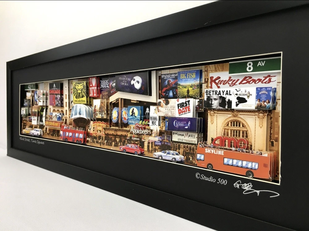 This one-of-a-kind 3D paper cut artwork depicts the iconic 42nd Street in New York City, featuring LED lights that bring the scene to life. Measuring 24 inches in width, 10 inches in height, and 1 inch in depth, this piece is framed and ready to hang. The artwork is handmade and signed by artist Ge Wang, who created a detailed 3D representation of the street, complete with copyrights and a certificate of authenticity. This piece is perfect for any art enthusiast or lover of New York City, and would make a great addition to any collection.