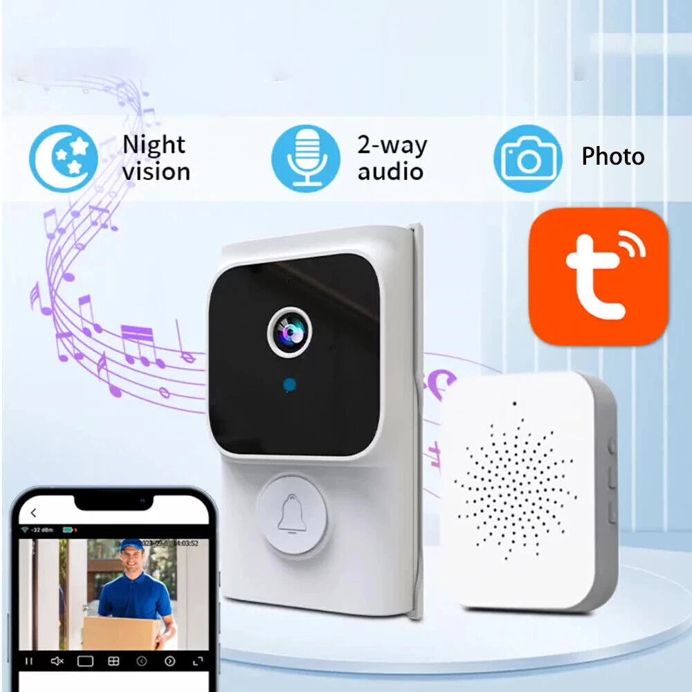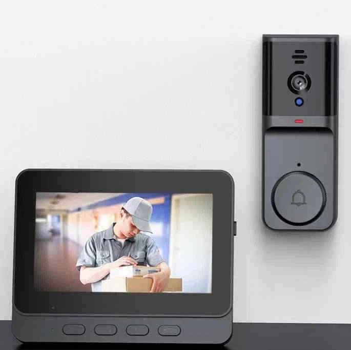Enhanced Security: With our WiFi-free visual doorbell, you can rest assured that your information is secure. By eliminating the need for WiFi connectivity, this doorbell offers enhanced privacy, protecting you from potential hacking or unauthorized access to your network. Effortless Setup: Enjoy a stress-free setup with our wireless video doorbell. Its simple one-click pairing with the indoor receiver means you won't have to wrestle with complex installation procedures, offering a seamless and time-saving approach. 4.3-inch IPS Display: Enjoy a vivid and detailed view of your doorstep with the 4.3-inch IPS display. This high-quality screen provides a full viewing angle, ensuring that you can see every detail clearly, even from the sides. Superior Long-Range Connection: Our video doorbell boasts a potent 2.4GHz private protocol, delivering a broad transmission span to maintain a strong and steady connection. This advanced technology allows for distant monitoring of your entryway, giving you peace of mind with minimal signal degradation. Advanced Features: Our doorbell camera can engage in seamless two-way video intercom, take advantage of low power consumption for extended standby, and experience quick response times with the plug-in indoor unit. The system automatically stores photos, supports automatic recording on an inserted card, features infrared night vision, and offers a selection of six delightful melodies to choose from. Product Description B: Video Doorbell Features: 100% brand new and high-quality made. High definition video, display details at your front door, it is reliable and practical. Equipped with WiFi connection for two way intercoms between the doorbell and mobile phone. The doorbell can be controlled by APP. Equipped infrared night vision. Support voice change. 10 share members. Package Includes: 1x Doorbell 1x Indoor Ding-Dong Machine 1x User Manual Batteries Include C: Video Doorbell Features: *Visual intercom, two-way voice intercom: This waterproof visual doorbell allows for real-time video and audio communication, making it convenient for indoor monitoring and communication with visitors. *Outdoor waterproof: With its waterproof design, this doorbell is suitable for outdoor use, providing reliable performance even in rain or other harsh weather conditions. *Ultra-long battery life: The external unit is equipped with a 1000mAh battery, ensuring low power consumption and allowing for up to 100 days of battery life on a single charge. *4.3 inch clear screen: The doorbell features a 4.3 inch clear screen, providing a high-definition display for clear and detailed visuals. *2.4G connection, no need for network: This doorbell utilizes a 2.4G connection, eliminating the need for complicated network setup. It is easy to use, stable, and reliable. *Night visibility: Equipped with a 120° fisheye wide-angle lens, this doorbell ensures a wide field of view for clear visibility even in low-light conditions. It automatically switches between day and night mode. Specifications: *Product Name: Visualized Smart Doorbell *Material: ABS raw materials, PCBA, polymer batteries, speakers, cameras, hardware *Size: Doorbell unit size: 135x53.3x34 mm (including plastic base), Screen size: 120x95x17 mm *Color: Black *Battery Capacity: Doorbell 1000 mAh/Display 400 mAh *Power Input: 5V=1A *Charging Time: 1.5 hours *Use Time: More than 3 months of normal use *Standby Time: more than 1 year *Waterproof Rating: IP66 *Camera Resolution: 640x480 *Weight: Doorphone net weight: 91g, Display net weight: 134g Package Content: 1 * Doorbell machine 1 * Indoor display 1 * Charging cable 1 * Auxiliary mounting sticker 1 * Small screws 1 * Instruction manual